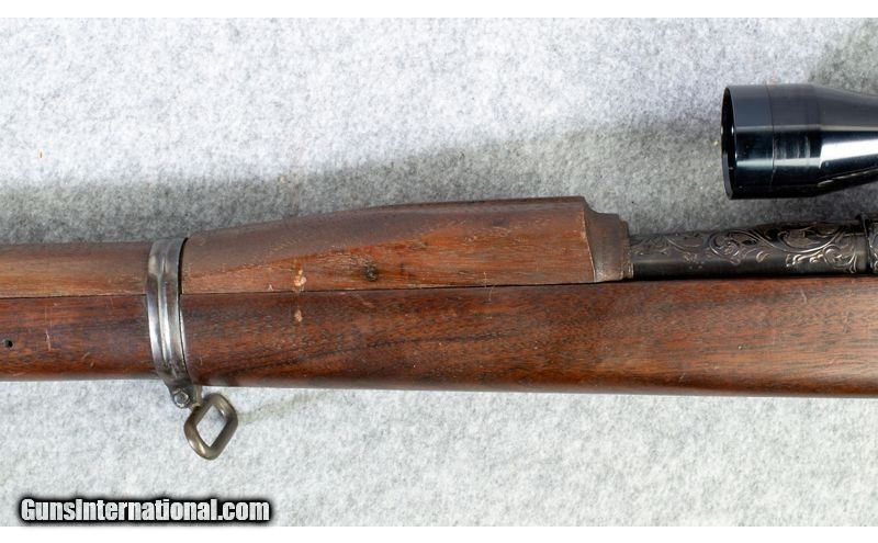 Description: Sporterized Springfield 1903 chambered in .30-06 Springfield. Started life as a 1903A1, front and rear sights removed and engraved around the receiver and rear of the barrel. Has been reblued. Optics are foggy. .30-06 Springfield SOLD Metal Condition: Very Good Wood Condition: Very Good Bore Condition: Excellent Barrels: 24" Barrel Triggers: Single Fore End: Walnut Butt Pad: Factory Steel Butt Plate with Trapdoor Sights: Tasco 4x Fixed Power Scope Item Location: short pump |