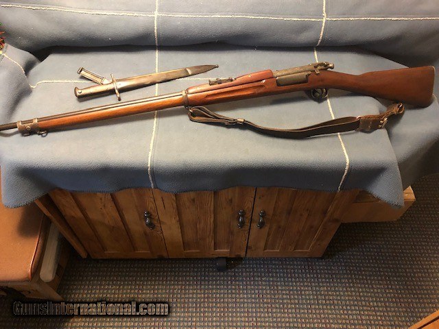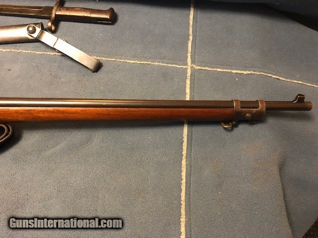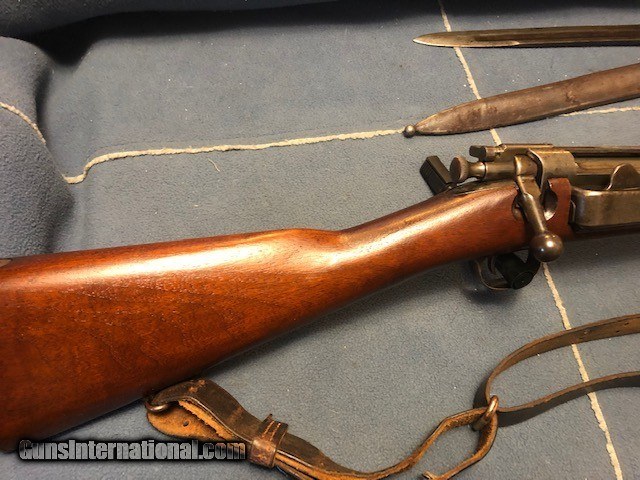 Description: This 30 30 Krag was produced in the Springfield Armory in 1894 and is in OUTSTANDING CONDITION for being over 120 years old. This was the 1st US Issue Military Rifle to use smokless powder and was with Teddy Roosevent and the Rough Riders in the charge of San Juan Hill on 1 July, 1898. This Rifle could very well have been one of them. Full Militdary Dress with what i believe to be the original issue Bayonet and Scabbard. Bayonet is marked US and 1893. Military leather sling also included The bluing, wood and bore are in very good condition and a lot of the Case coloring is still intact. Look at pictures and decided for yourself. Mechanically operates flawlessly and smooth as they were known for. The magazine cut-off works as it shoud. This allows rifle to be fired as a single shot withoudt feeding from the 5 found magazine. Receiver is marked 1894 - Springfield Armory - Serial number. This rifle has been sitting in a safe, unfired for years and will make a great addition to any collection or a good shooter if that's what you want it for. ***NO FFL REQUIRED***ANTIQUE*****Ship directly to your residence. Shipping $60, west of Miss. River add $20. . PAYMENT BY USPS MONEY ORDER, CASHIER'S CHECK, ZELLE or VENMO bank to bank. Thanks for looking. Look at my other listings for Military Firearms, I'm 79 and selling it off. SOLD Curio/Relic: Yes Antique: Yes Manufacturer: Springfield Armory Model: 30 40 Krag Condition: Good Metal Condition: Good Wood Condition: Good Bore Condition: Good |