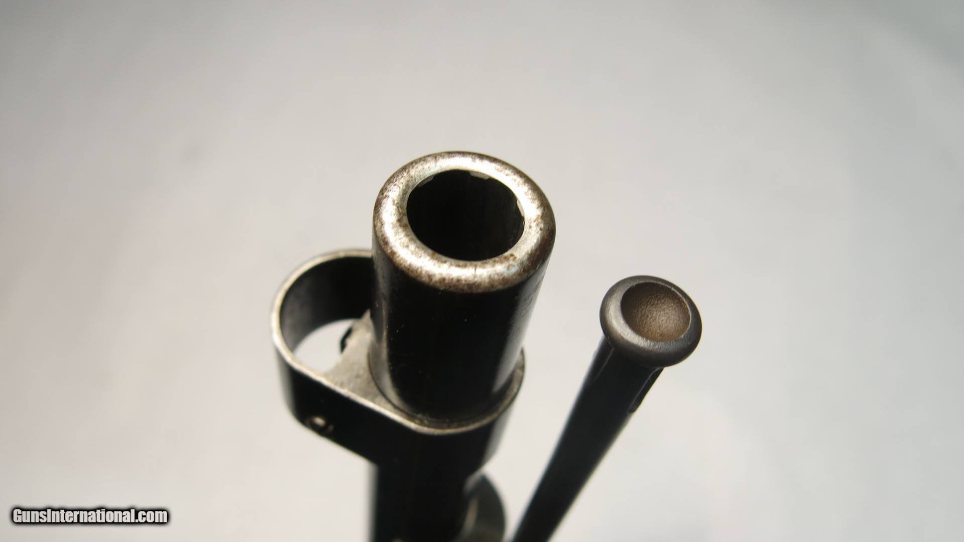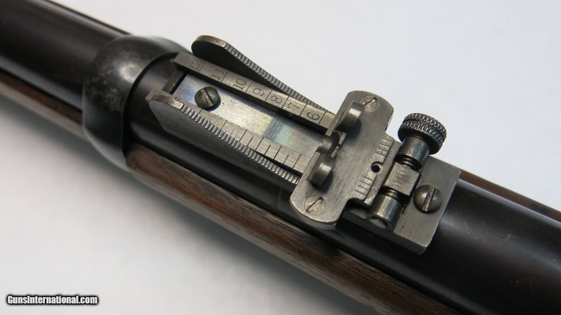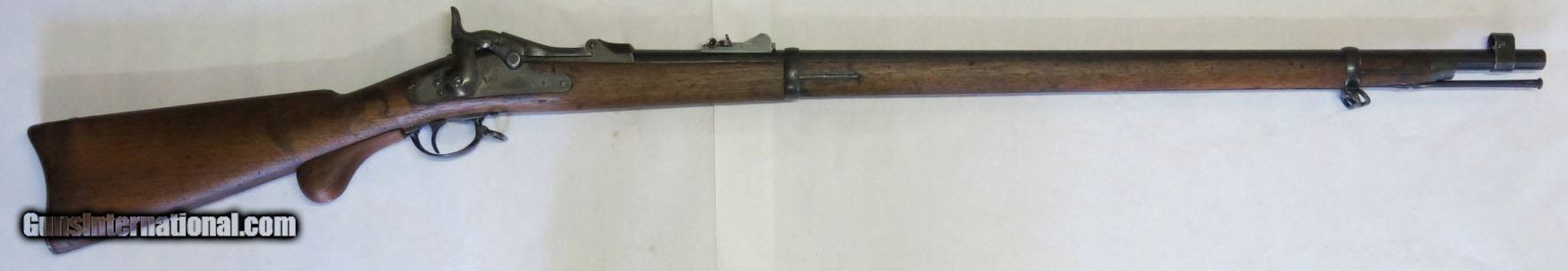 Description: Springfield Armory Long Range Experimental Rifle Serial number 161921 .45-80-500 This quote is from Al Frasca’s book “The .45-70 Springfield” on page 94. “The development of the long-range rifle is very confusing and almost impossible to follow. It appears that army marksmen were very interested in participating in national and international rifle competitions. However, the army was not willing to fund the venture or to make a special competition arm. Somewhere in the negotiations and manipulations, it was decided that a “sniper rifle,” needed to be perfected and tested by the marksmen in the army. Thus, under the pretext of producing the “sniper rifle,” the army acquired what is referred to as long range rifles. Since the arms were made at different times and for different groups, there are quite significant variations.” This quote is from Al Frasca’s Springfield Trapdoor Rifle Information Centersite. “Long range rifles were made over several years (1879-1882). They were originally made for soldiers in the marksmanship program. Therefore, trainers in charge of each team wanted their own designs incorporated into the team's rifles. Some requests were for special Bull rear sights, several varieties of pistol grips, various trigger shapes and serrations, thumb rests in the wrist of the stock and Hotchkiss rather than standard butt stocks. An article in the March, 1959 issue of “The Gun Report” by Robert M. McDonald states “Two experimental arms were made with three and six lands and grooves, and an 18-inch twist. Another experimental intermediate type had nineteen and five-eighths inch twist with six lands and grooves.” This rifle does have a 19 5/8” twist with six lands and grooves. He also states this bore configuration was tested with a round of 80 grains of Hazard Fg and a 500 grain .453 / .466 paper patched bullet of 1 to 19 tin to lead alloy. Another quote in the article under the heading Conclusions states “Although the “Sharpshooter” arms were a failure from the performance standpoint, they taught us a great deal about the infant science of ballistics, which was a rather hit-and-miss proposition at the times.” The serial numbers for these guns range from 114,000 to 163,000, with the 160,000 numbers being most common. The barrels are stamped "H/G/R" or "H/G." Very few of these rifles were produced and they are now considered very valuable. The best estimates are that there were 150 to 170 Long Range rifles made. The problem is how to distinguish some long-range rifles from experimental or trial rifles. It is believed that there are only about 50 of these rifles currently documented and known to exist. Their rarity leads to confusion when considering what features should be expected to find on any one rifle relative to its components, serial number, date of manufacture, history, etc. This rifles receiver, with serial number 161921, was made between October and December of 1881. It is the later 1.20" wide version with the longer and deeper gas ports and came into use after December 1878. There is some confusion as to what variant of breech block this rifle has and when it was made. Font is 0.070" tall. Low arch and rounded shoulders. Thick wall firing pin housing. Width is 1.20". A feature of this block is that the letter L is missing its bottom leg and looks like an I. The U and S are not followed by periods. This leads one to believe it fits the description of a block made in early 1883. An identical breech block has been seen on another long-range rifle whose receivers serial number shows it was made in 1881 and is believed to be original to the rifle. Its serial number is 162359 and sold in October of 2015 by James D. Julia. It was from the Jonathan Peck collection. This block's firing pin is a fourth type and was used roughly between June of 1878 and January of 1881. The barrels rifling has six lands and grooves with a right hand 19 5/8” twist. The bore diameter is .4522” and the groove diameter is .4655”. Groove depth is .0066”. Lands are .075” wide and the grooves are .160” wide. Chamber length is 2.420". Throat length is approximately .060”. Head space measures .079”. The chamber, bore and crown are in excellent condition. The tenon is rounded that came into use after October 1878. The reference marks on the right side of the barrel and receiver are in perfect alignment. The bottom of the barrel has a few areas that show corrosion and pitting. There is damage to the barrels exterior and is located 3 1/2” forward of the receiver, under the rear sight, and completely incircles the barrel. A possible explanation is, if the barrel was set up in a lathe and a cutter was accidently run into the turning barrel the cutter would start shallow and dig in deeper as the barrel turned, especially if the cross feed was engaged. The cut is cosmetic and does not affect function in any way. There are file marks and missing original finish where the damage was smoothed out so the rear sight can set flat on the barrel. The area has been cold blued to make the damage less visible. There are also a few vise jaw marks. The stocks cartouche is SWP (Samuel W. Porter) over 1881. There is a final firing proof (circled P) rear of the trigger plate and pistol grip. There is a stock inspectors mark but it is partially obliterated and not legible. The butt is the standard Springfield service configuration and not the Hotchkiss butt that was used on some long-range rifles. There are nicks, dents and scratches showing significant usage. There are drying cracks in the butt with the most significant one on the left side. Dark oil stains are visible around most metal to wood contact surfaces. The rear trigger plate / pistol grip screw hole was stripped out and has been repaired. The screw is a standard wood screw and is not correct. The stock has been cleaned, oiled and waxed. Some of these rifles were mounted with a Freeman Bull rear sight 
