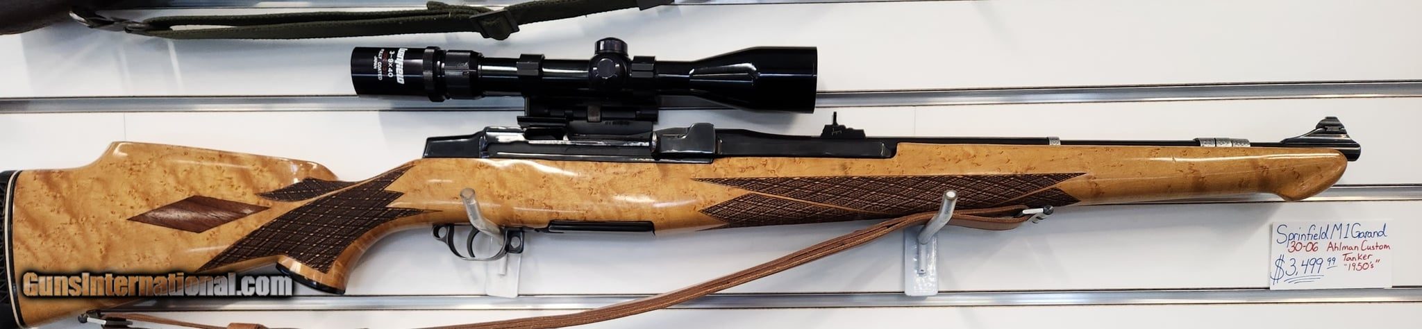 Description: Guns Listing ID: 405095 This M1 was sporterized into a Tanker length in the 1950s by Ahman‚‚s Gun Shop out of Morristown, MN. It has royal blueing set in a maple burl mannlicher stock with rosewood diamonds and hand checkering. Bolt carrier, barrel straps, and other parts hand jeweled. A call to the still in business shop authenticated the rifle and value at over 5k to have it built today SOLD Manufacturer: SPRINGFIELD ARMORY Model: M1 "TANKER Caliber Info: .30-06 SPRG Condition: Used - Non-Certified Barrels: 18.5 BARREL Action: SEMI AUTOMATIC Finish: BLUE Weight: not specified |