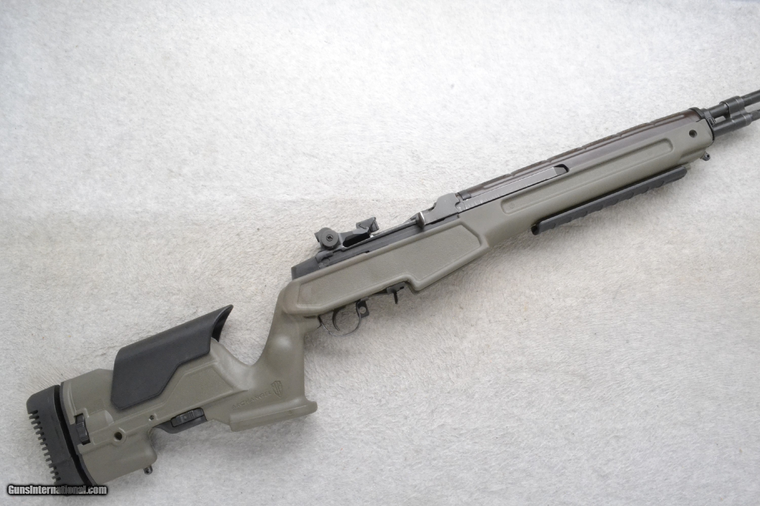 Description: This Springfield Armory Model M1A is a right-hand semi auto rifle in .308 Win Cal. It has a 22" National Match barrel with a flash hider, white painted blade front sight with side protectors and an adjustable aperture rear sight. The forearm is green polymer with finger grooves. The buttstock is a green and black polymer Archangel stock with a smooth grip pistol grip, an adjustable cheek rest and an adjustable black rubber butt pad. Includes original walnut stock. .308 Win .308 Winchester Chambers: 10 round detachable magazine Metal Condition: Very good with handling marks. Tool mark on right side of barrel Wood Condition: Good with handling marks Bore Condition: Very good Barrels: 22" National Match barrel with flash hider and brown barrel shroud Stock Dimensions: Fully adjustable green and black polymer Archangel stock Fore End: Green polymer with finger grooves and lower accessory rail Butt Pad: Adjustable black rubber butt pad Weight: 10 lbs 10 oz Sights: "White painted blade front sight with side protectors, adjustable aperture rear sight Item Location: Richfield, WI Price: $1,999.99 Contact Seller |