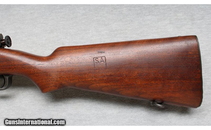 Description: Springfield Armory US Model M2 in 22 long Rifle. This rifle's metal surfaces have an excellent quality dark gray parkerizing. The Springfield Armory 24" barrel is bright with an excellent bore. The pistol grip stock is in excellent condition and has a very nice grain and strong cartouches. This rifle rates excellent overall. The Springfield Model 1922 was built as a cadet rifle, designed to mimic the M1903 Springfield rifle for training purposes. The M2 was the third variation of the M1922 though the "M1922" was not included in the M2's designation. .22 Long Rifle SOLD Metal Condition: Excellent Wood Condition: Excellent Bore Condition: Bright with good rifling Barrels: 24 Inches Triggers: Factory Stock Dimensions: LOP 13 1/8 Inches Fore End: Grooved walnut Butt Pad: Steel textured plate Sights: Lyman 48 sight is in place on the rear receiver ring Item Location: La Vista, NE |