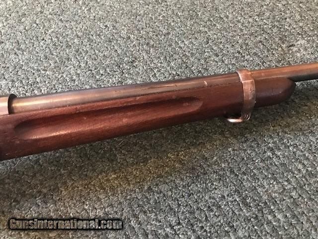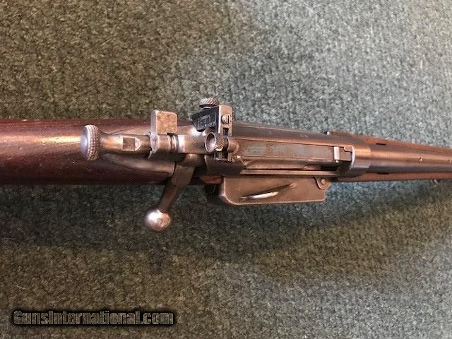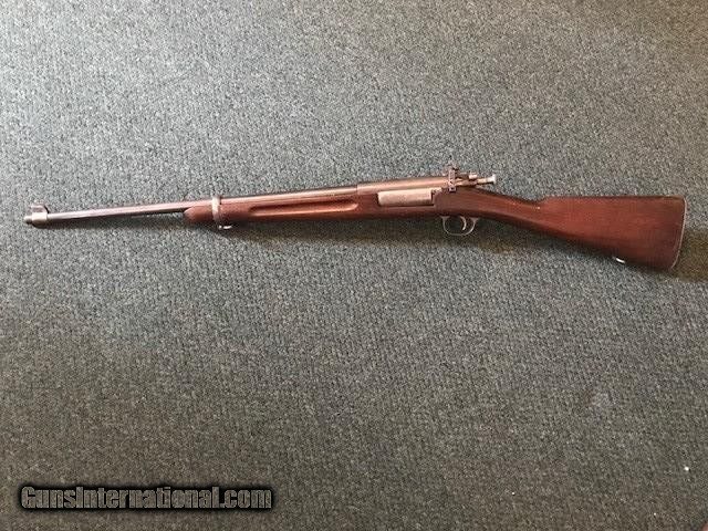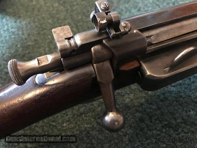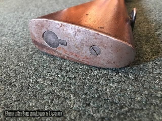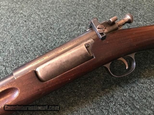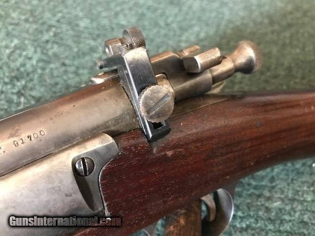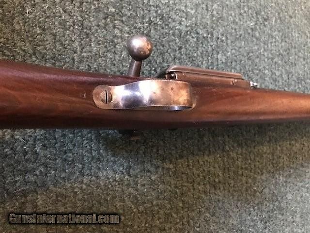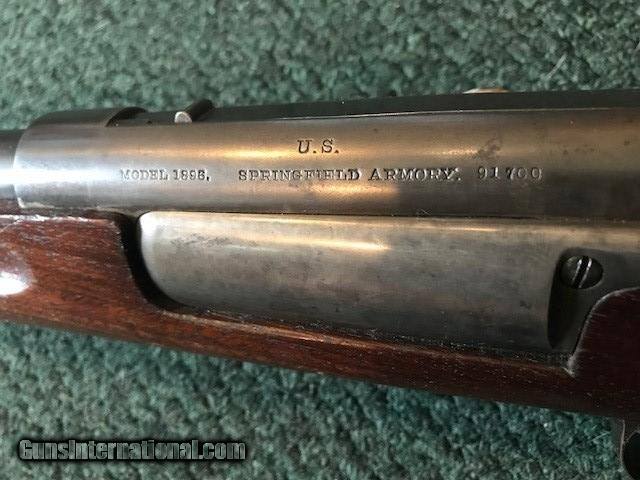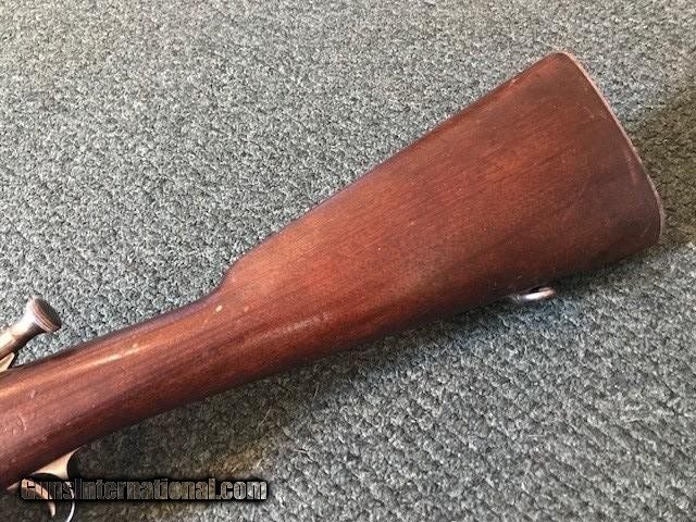 Description: Springfield Armory, mdl 1898, 30-40 Krag, some case coloring remaining on magazine box, very tight gun, butt plate, sling swivels, barrel band, trigger guard and receiver all original, 22" barrel, 13 1/2" length of pull, great shooter. Serial No. 91700. For further information call John at 941-748-7318. SOLD |