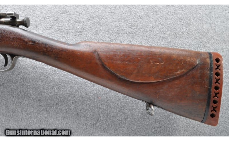 Description: This Springfield 1898 carbine was manufactured in 1899 and appears to have seen some extensive field use. It would be advisable to have a qualified Gunsmith examine this firearm before shooting. .30-40 Krag SOLD Curio/Relic: Yes Chambers: .30-40 Krag in a five round rotary magazine Metal Condition: Shows moderate finish wear and blue loss Wood Condition: The stock has been modified from military configuration with the addition of a rubber butt pad and a hand carved cheek piece with a name engraved beneath Bore Condition: "Bore is good, strong rifling with a bit of frost Barrels: 22 Stock Dimensions: 14" LOP Fore End: "Plain walnut with barrel band, grasping grooves and upper handguard Butt Pad: Western Field vented rubber (not original to this firearm) Weight: 7 Lbs. 14 Oz. Sights: "Dovetailed Barleycorn front, Adjustable leaf rear Item Location: Grand Junction, CO |