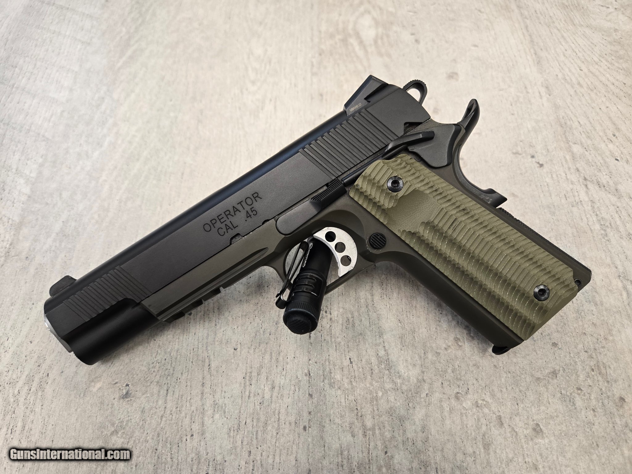 Description: Guns Listing ID: 466653 Normal wear and tear, comes with one mag, no box SOLD Manufacturer: SPRINGFIELD ARMORY Model: OPERATOR Condition: Used - Non-Certified Barrels: 5 Gauge Info: .45 ACP Finish: black & od green |