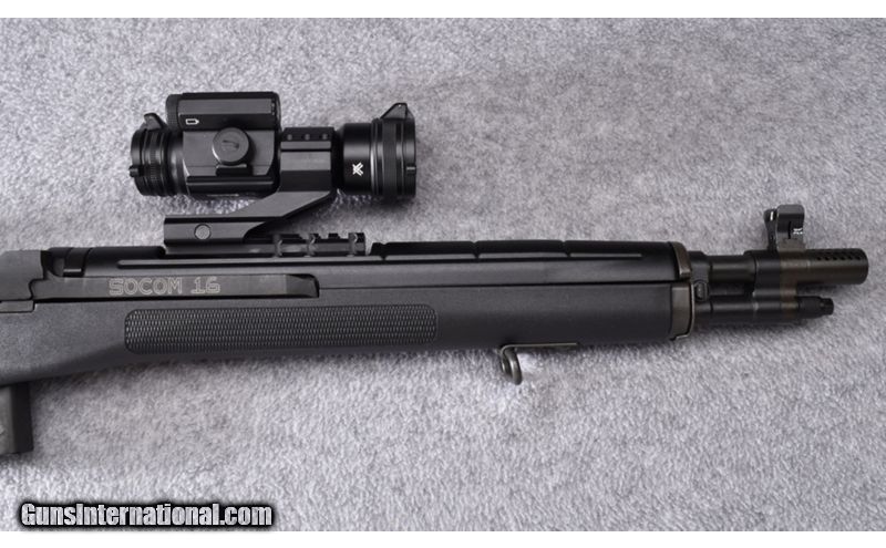 Description: This M1A Socom 16 is in very good condition showing only light use and handling marks. Comes with Vortex Strikefire Red Dot Scope in addition to the military front and rear sights. Complete with Springfield Armory black canvas case. .308 Winchester SOLD Metal Condition: Very Good Bore Condition: Very Good Barrels: 18" Ported Triggers: Factory Stock Dimensions: 13 1/4" LOP Fore End: Textured Black Synthetic Semi Pistol Grip Stock - Textured Black Synthetic Forend Butt Pad: Metal Butt Plate with Spider Hole Weight: 9.5 lbs. Sights: Military Post Front - Military Rear - Vortex Strikefire Scope Item Location: Wheeling |