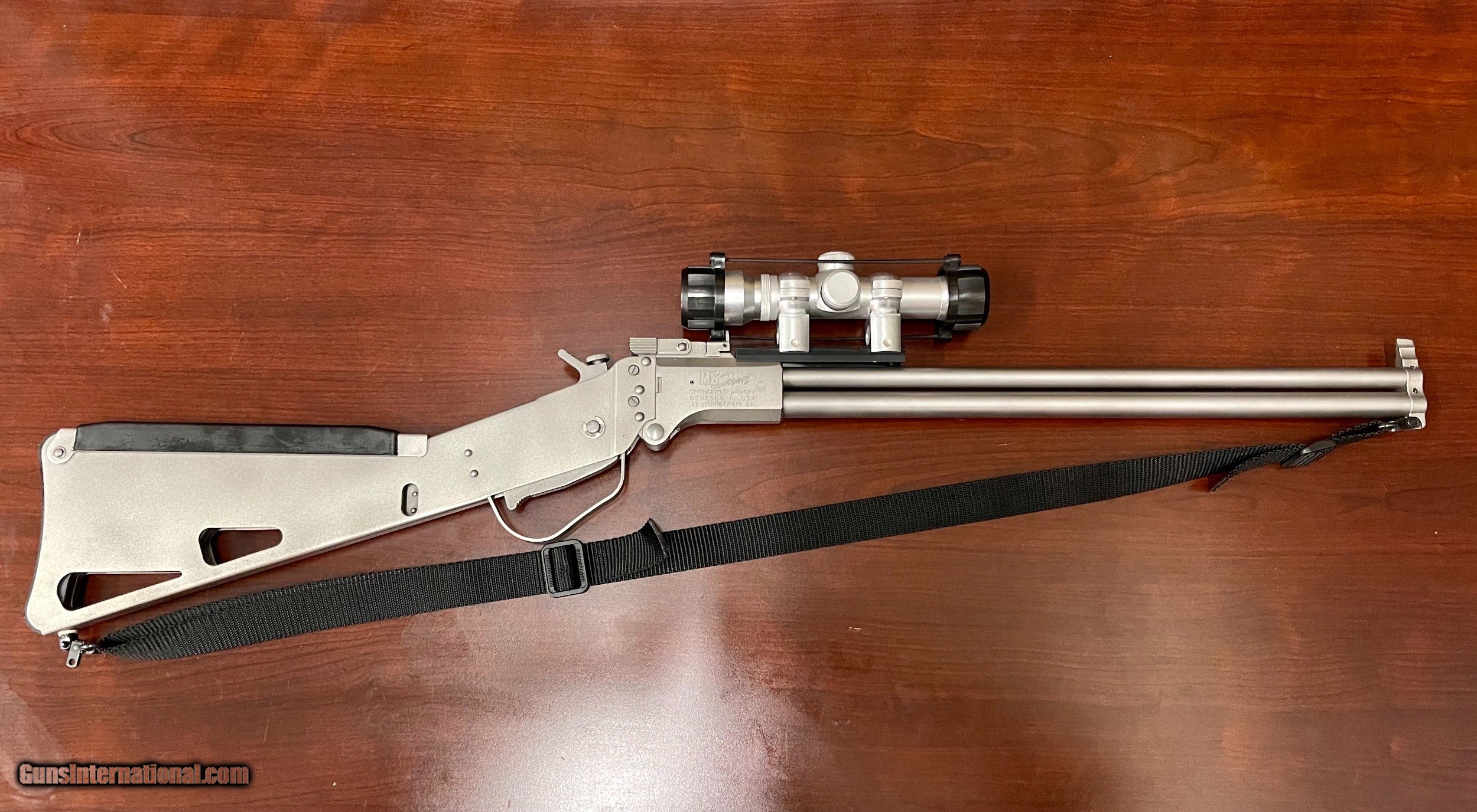 Description: Springfield M6 Scout over/under .22 Hornet/.410 Gauge Stainless Steel Springfield M6 Scout Survival Rifle in .22 Hornet/.410GA. This rifle is in excellent condition and comes with the branded soft case and sling. The Springfield Armory M6 Scout is virtually identical to the original Ithaca M6 Aircrew Survival Weapon. The Scout is also made of stamped sheet steel, with a forged steel removable barrel assembly. The barrel assembly is connected to the stock/action group by means of a removable hinge pin. Whether folded or disassembled, the overall length for storage is approximately 18.5 inches which is the length of the barrels. Unlike nearly all other firearms, there is no "furniture" on the Scout like a buttstock or a forearm. The only parts which are not steel are the rubber butt plate and cheek rest. Aircrew were instructed to wrap the barrels with parachute cord as a field expedient fore-stock. Ammo stored in the stock is not included. Sourced from the collection of a well known local historian and collector, this weapon has been well maintained and cared for. ****WE ARE ALWAYS BUYING AND ARE VERY EXPERIENCED IN ESTATE SALES TOO. LET US KNOW HOW WE CAN HELP!**** PAYMENT: -Payment must be recieved within 10 days of purchase. 3% additional charge for credit card processing. SHIPPING & HANDLING: -$30 for handguns and $45 for long guns SHIPPING FIREARMS: -Firearms shipped to FFL dealer only -We will ship upon receipt of payment and signed legible copy of dealer's FFL via Fax, Mail or E-mail. SALES TAX: -Florida residents add 7.5% sales tax. PRODUCT: -We operate a gun shop which means that every item is for sale in our store and it may have already been sold when you contact us. NEW GUNS: -On new Firearms we may use file photos instead of the actual gun. CONTACT: -Contact me with any and all questions. We want you to be happy with your purchase. PHONE #: (904) 271-5270 STORE HOURS: Mon-Fri: 11p-6pm Sat: 9a-3p BUYER: -It is Buyer's responsibility to ensure that the weapon is LEGAL to own in your city/state. SOLD Rifle Caliber: .22 Hornet Shotgun Gauge: .410 Gauge Manufacturer: Springfield |