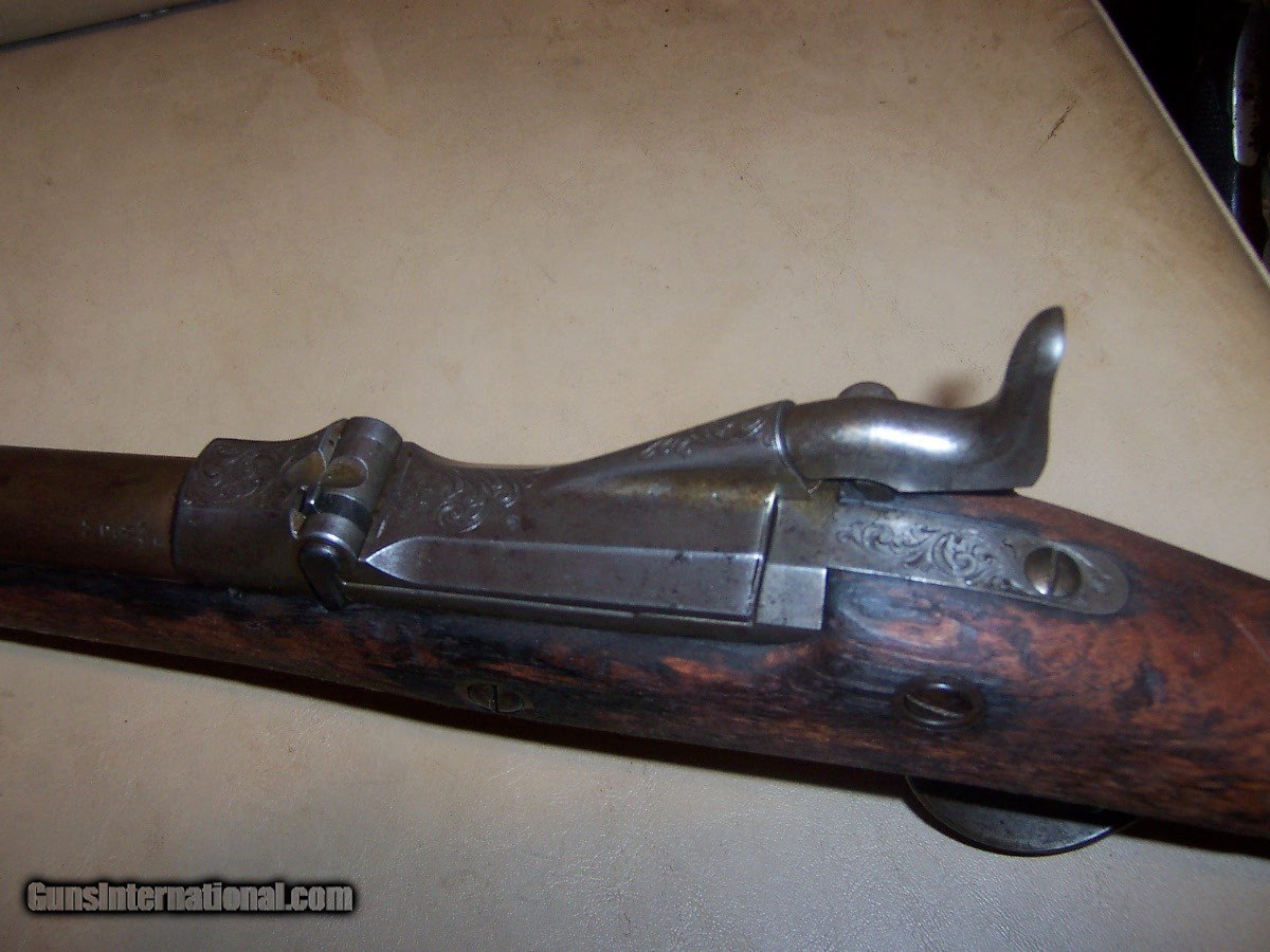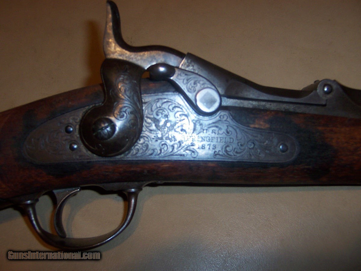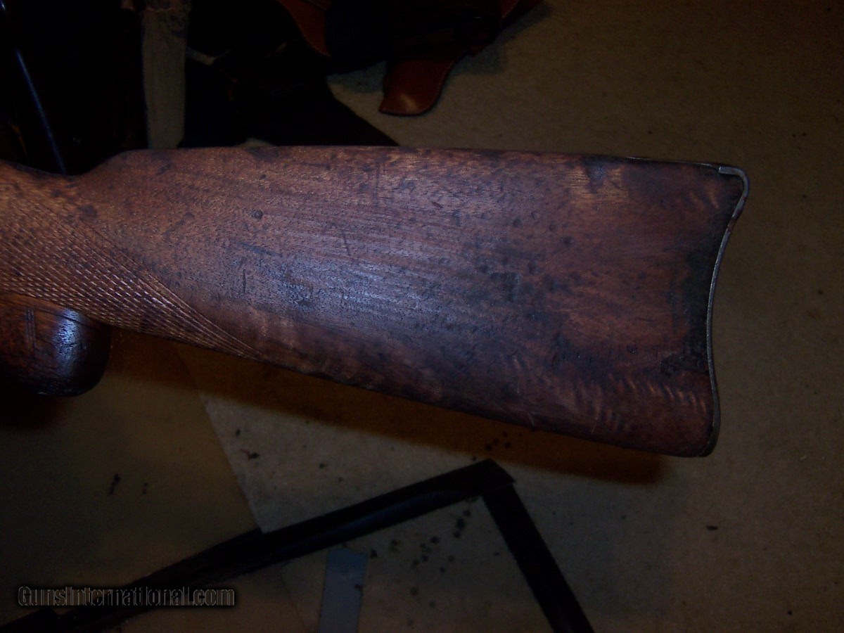 Description: good bore'' works in dry fire ;;; set trigger ;; patina finish''''' stock in good condition no cracks with wear to checkering oil stained dings and scapes but solid missing tang sight '''' see letter i got when buying gun $50sh ins ;;;;; also see other i have listed SOLD Antique: Yes Manufacturer: springfield armory Model: 1873 |