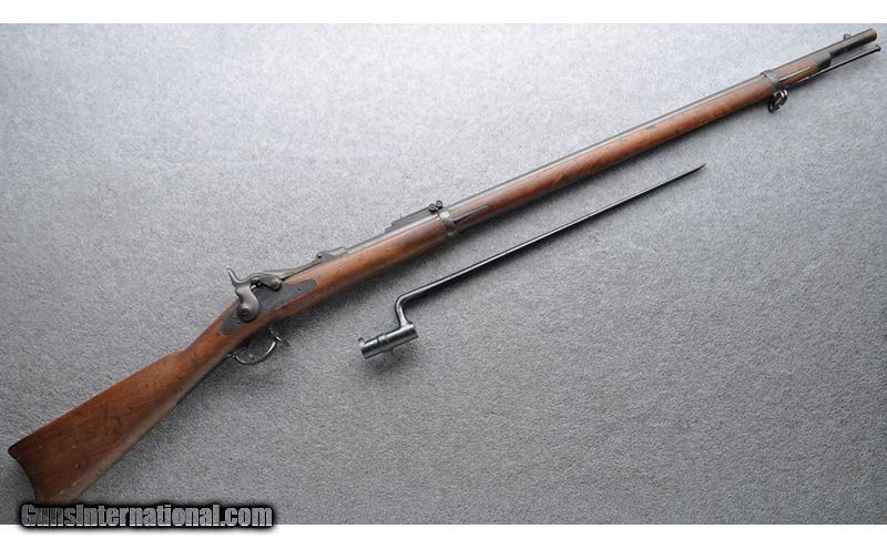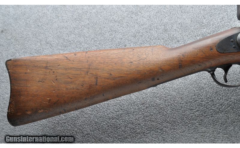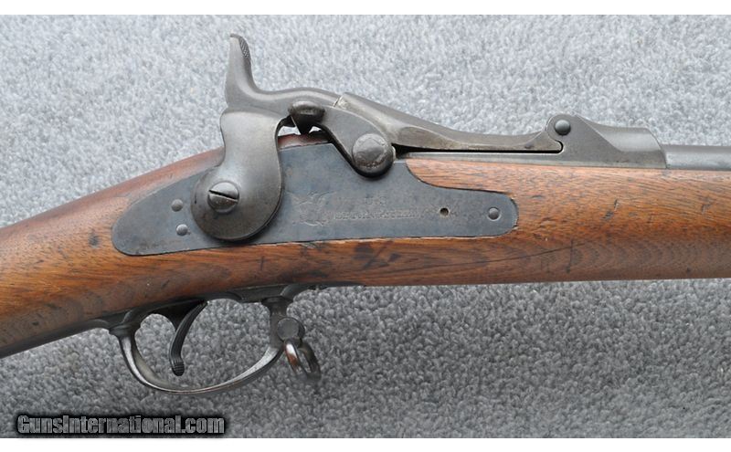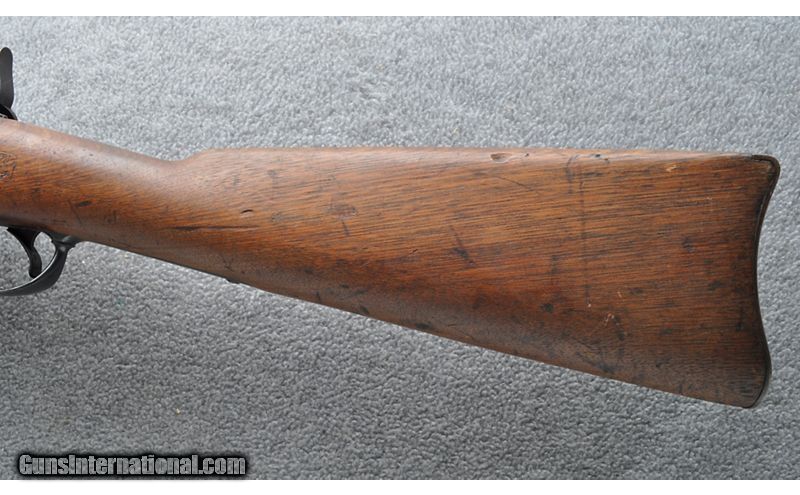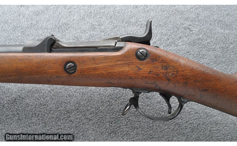Description: The Model 1884 Springfield incorporated several improvements over the !873 Model. The most significant being the Buffington sight. This was a rack and pinion windage adjustment style and raised leaf for elevation. .45-70 Government SOLD Chambers: .45-70 Government Metal Condition: Retains some original finish though fading to a plum/grey patina. A little rust pitting on the butt plate. All stampings are clearly visible. Wood Condition: "Various scratches, dings and gouges throughout however, no visible cracks. Crisp cartouche (SWP / 1888) of Springfield Master Armorer 'Samuel W. Porter' on the left side of the stock. Bore Condition: Bright with exceptionally sharp rifling Barrels: 32 1/2" Round Triggers: Serrated and checkered Stock Dimensions: 13 1/4" LOP Fore End: "Full length with metal tip, two barrel bands and incorporates sling & stacking swivels plus cleaning rod Butt Pad: Metal carbine style Weight: 9 lbs. Sights: "Pinned Barleycorn front, Buffington adjustable rear graduated from 200 to 1400 yards Item Location: Grand Junction, CO |
