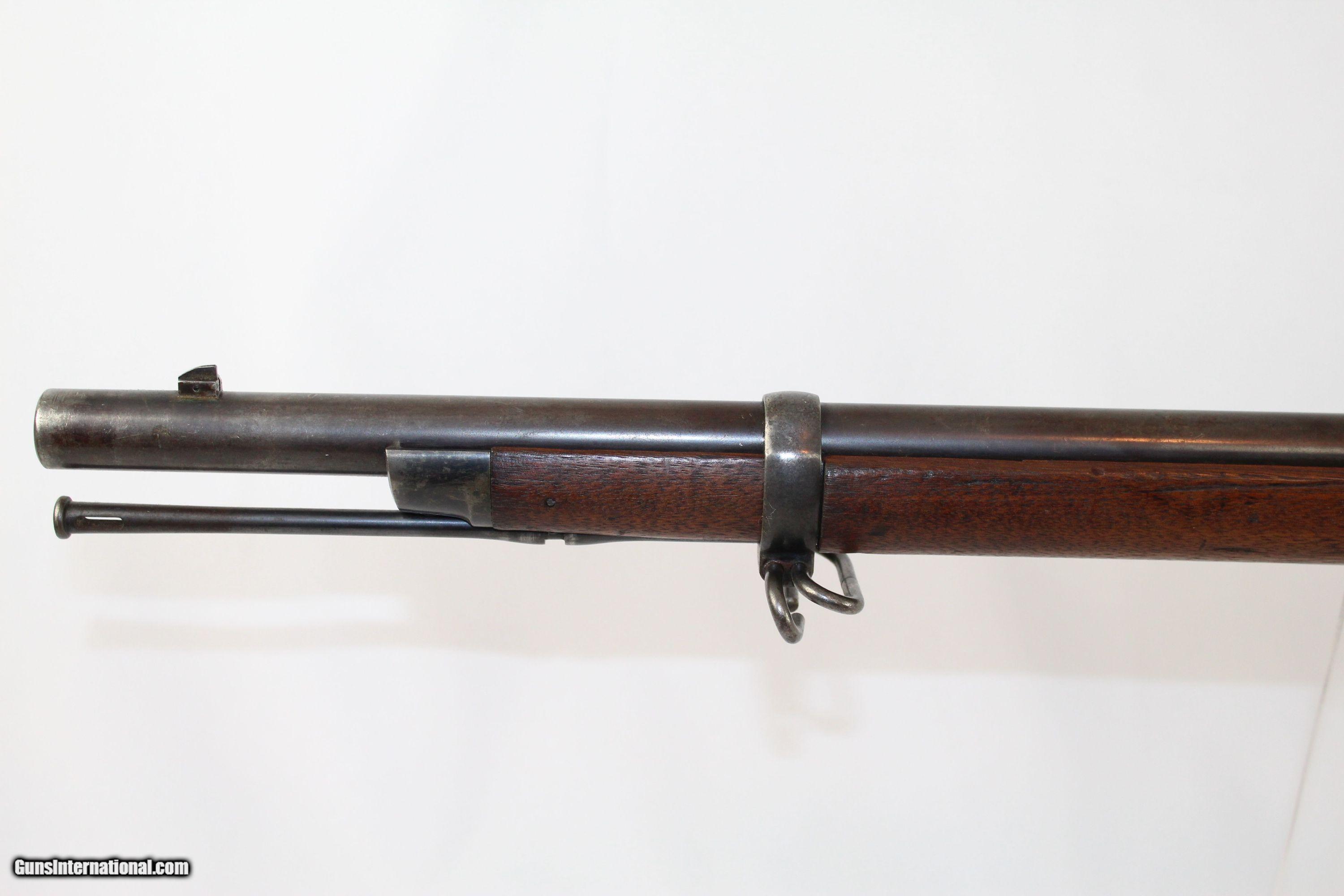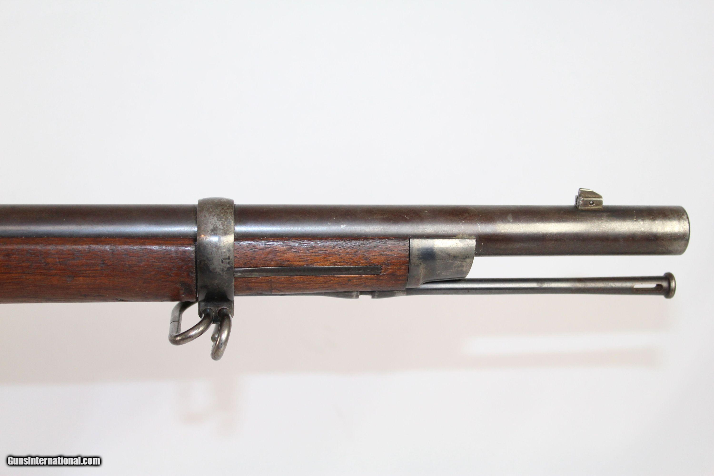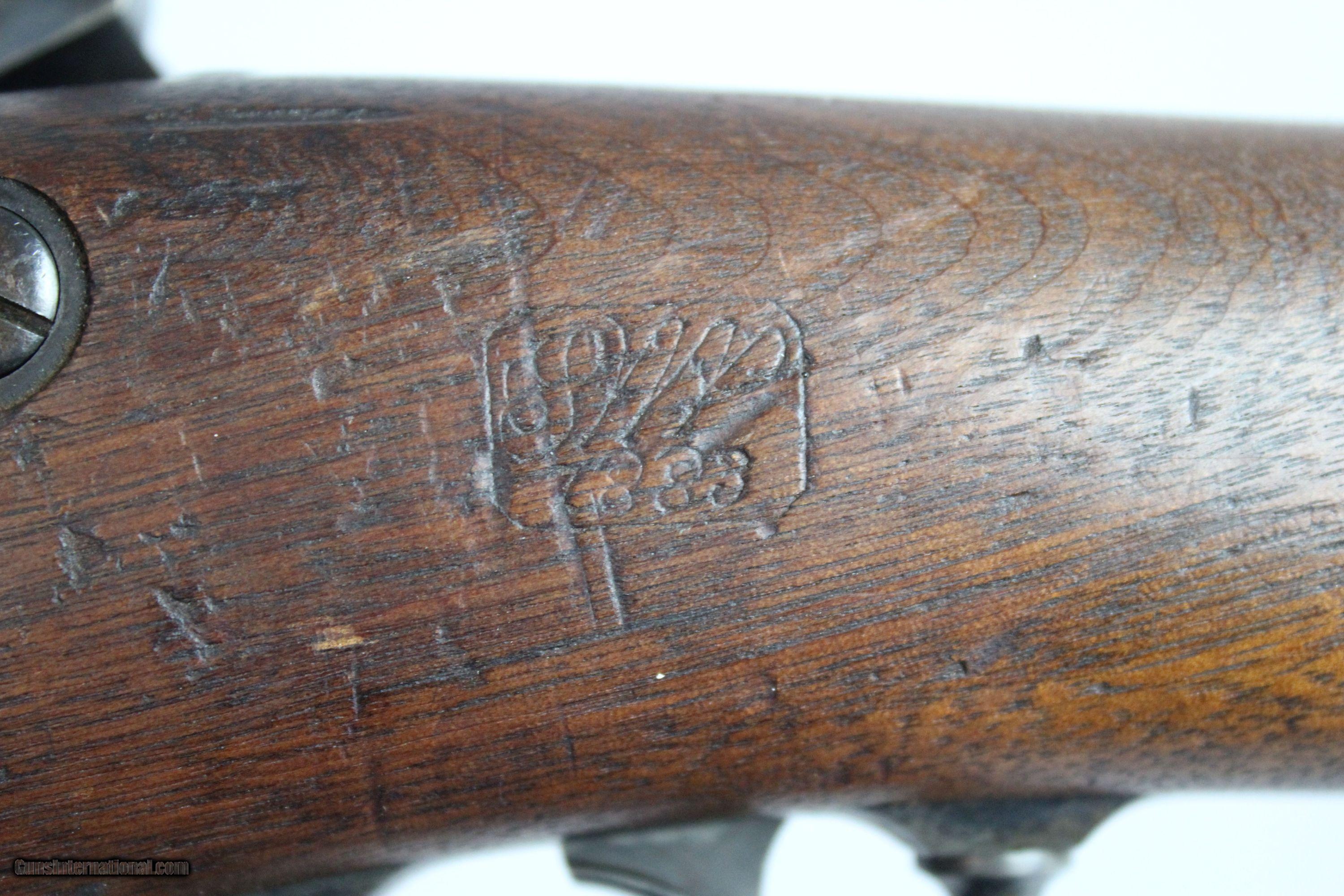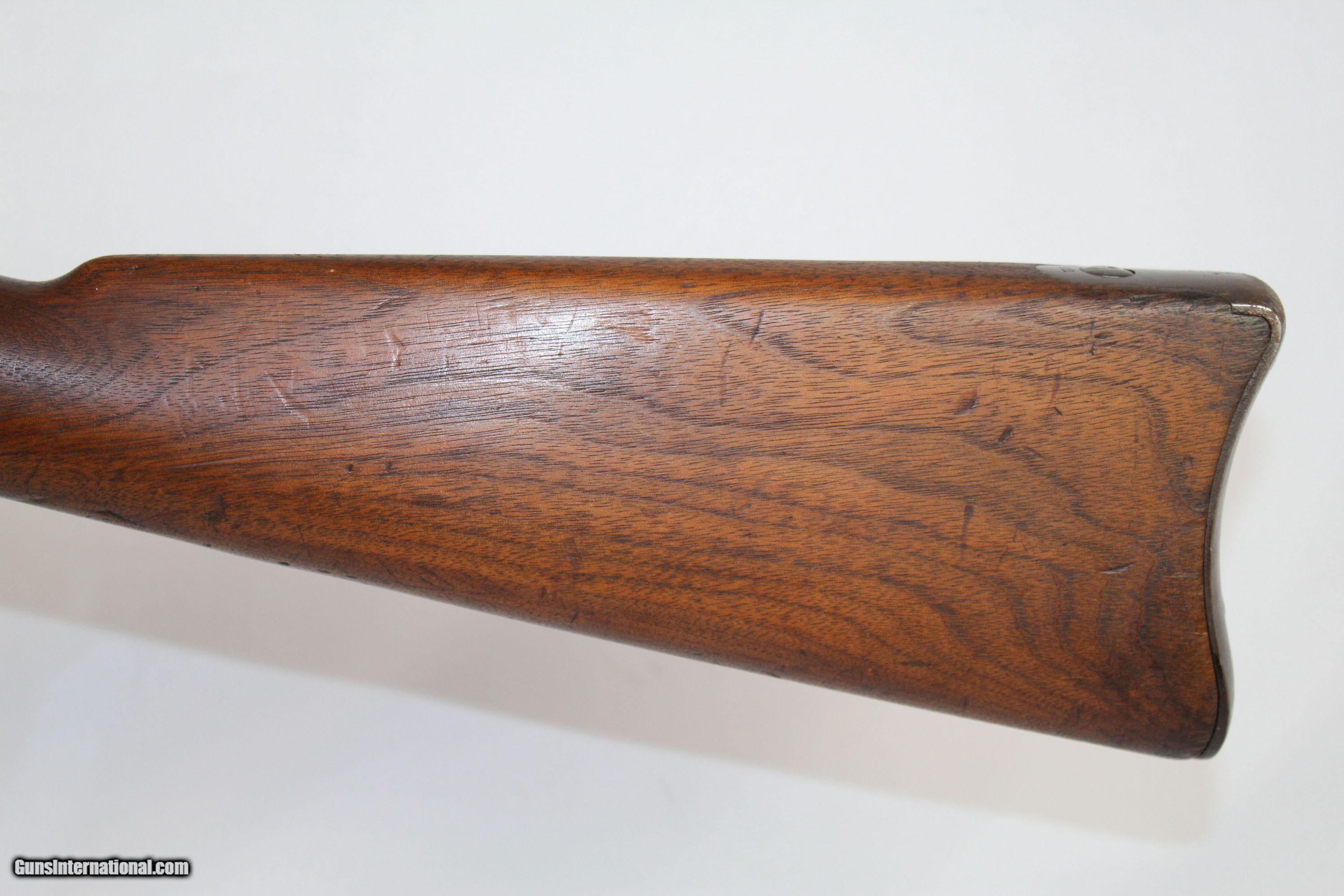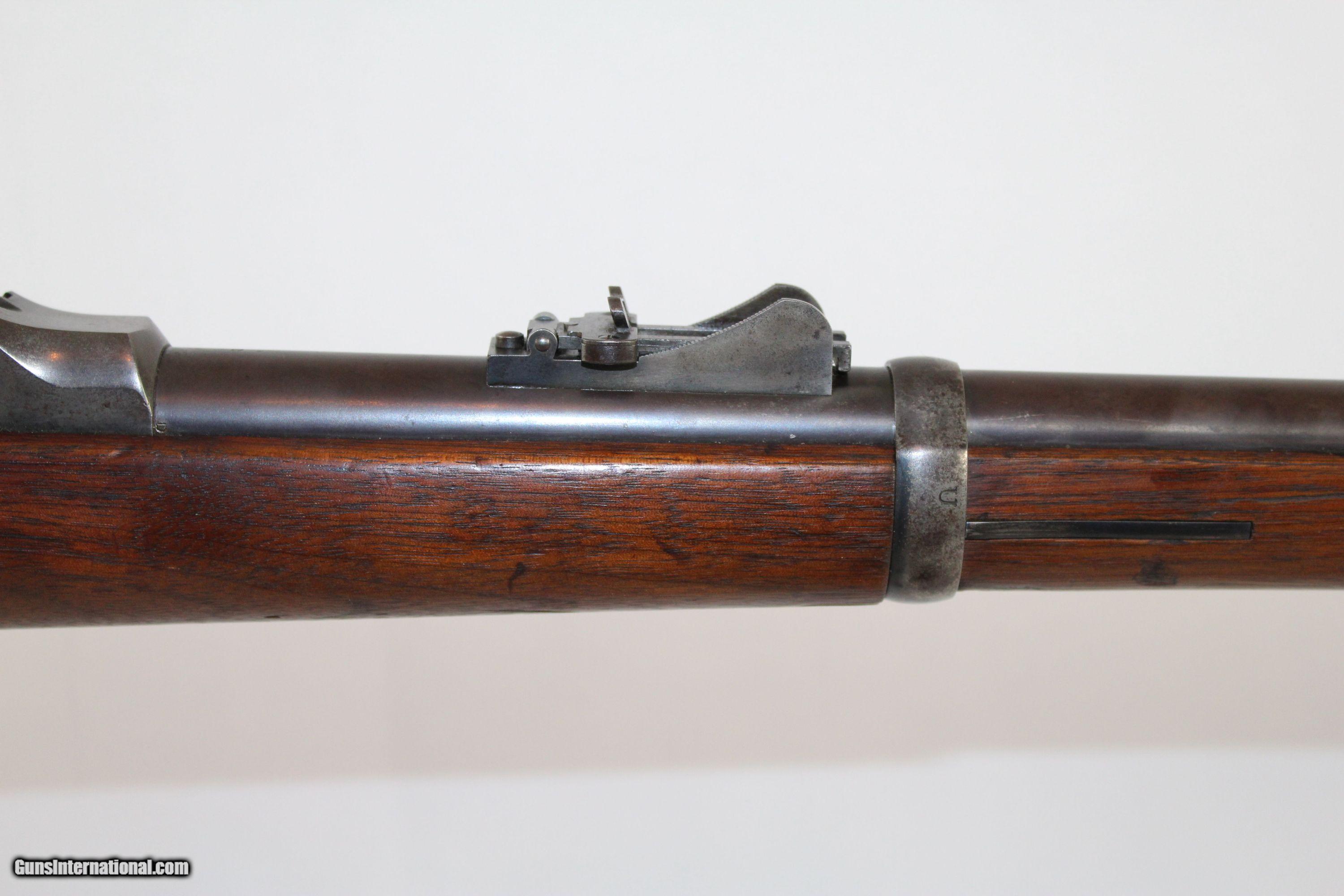 Description: VERY NICE Antique SPRINGFIELD 1879 TRAPDOOR Rifle The Original 45-70 GOVT, Dated “1883” Here we present an antique U.S. Springfield Model 1879 Trapdoor Rifle, made circa 1883 by Springfield Armory. Amazingly, despite the adoption of the ill-fated Model 1882 Chaffee-Reese Bolt Action Magazine Rifle, new models of trapdoor rifles continued to be produced and used all the way through the mid-1890s, until finally, the Krag-Jorgensen was adopted. The U.S. continued to see unrest and conflict with the displaced Native Americans during this time, including the Wounded Knee Massacre on December 29th, 1890. Trapdoors continued to see use all the way through the Spanish American War. This specimen is marked “U.S./MODEL/1873” on the breech. The lock is marked “Eagle/U.S./Springfield”. The left side of the barrel bears the “V/P/Eagle head” proof marks. The left side of the stock bears the inspector cartouche of Samuel W. Porter and the year date “1883”. Behind the trigger guard tang is the “P” marking. The overall condition is very good. The barrel bears much of the original blue finish, turning plum. The case colors are still visible on the breechblock. The markings are clear and legible. The walnut stock is in very nice shape with a few old handling marks and a very clear cartouche. The bore is sharp and shiny. The action is excellent. Here is a very nice US government issue rifle from the Indian Wars-era! Own the original! This is a legitimate antique and not a reproduction. Barrel is 32-5/8 inches. Caliber: .45-70 Government Overall condition as seen in photos. Very Fast. Very Safe. FREE SHIPPING WORLDWIDE. Delivered directly to your door by express mail! Guaranteed AUTHENTIC & Includes CERTIFICATE OF AUTHENTICITY. ancestryguns $1350 #5178 SOLD Antique: Yes |