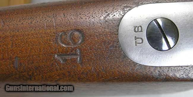 Description: These were made in 1871 and 1872 and with a 36” barrel in 50-70 centerfire caliber. These were finished white and the frames case hardened. It retains over 70% case colors with excellent bore and mechanical function. This has the safe locking action and long hammer spur. The left wrist has a nice ELA cartouche and #16 rack number on the top rear butt. I would consider trades for pre 1899 ANTIQUE PISTOLS and rifles on any of my items.. WHAT DO YOU HAVE TO TRADE? Ask about our 30-90 day lay-away program. We accept Bank Check, Money order, Personal checks or wire transfer. SOLD Antique: Yes |