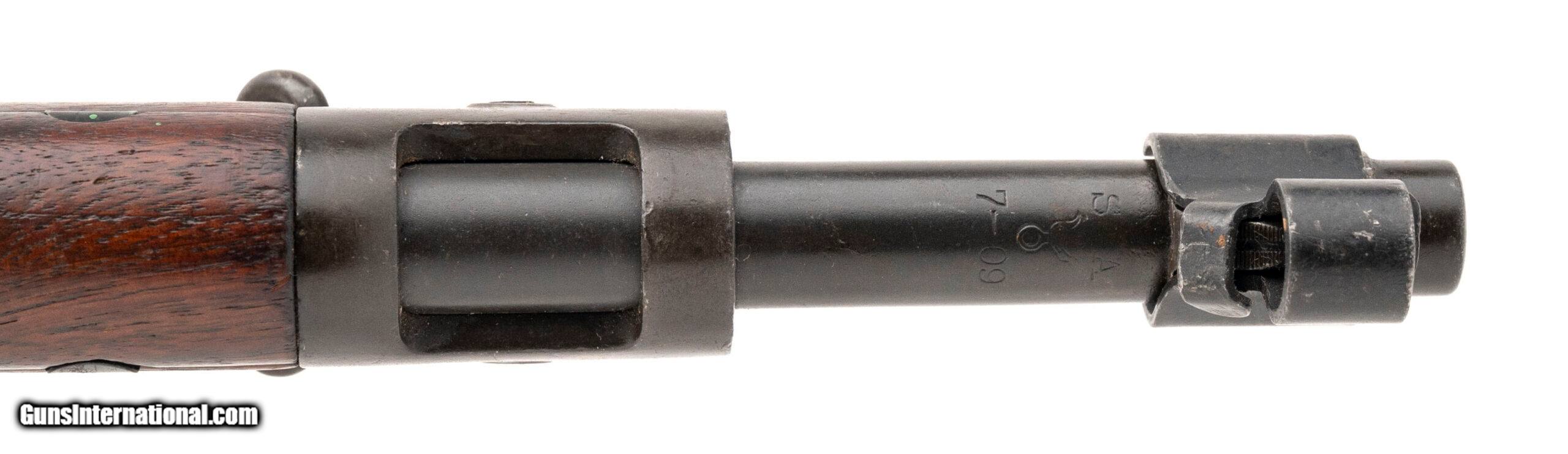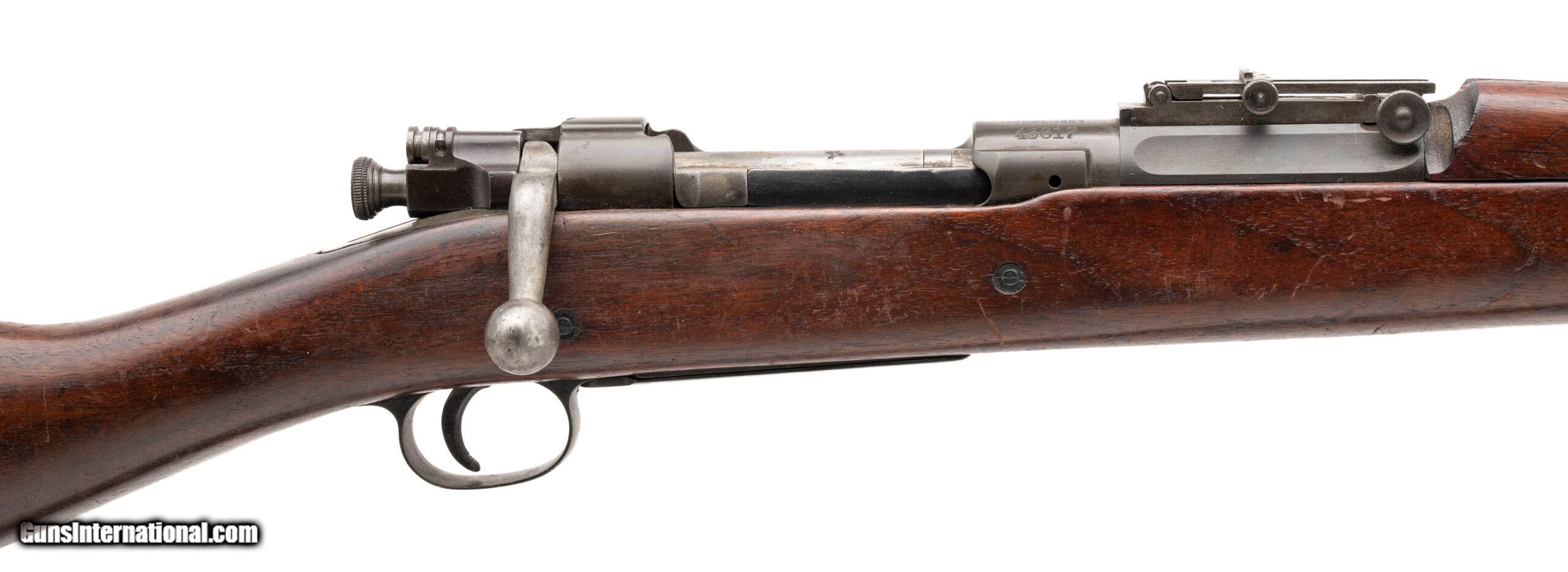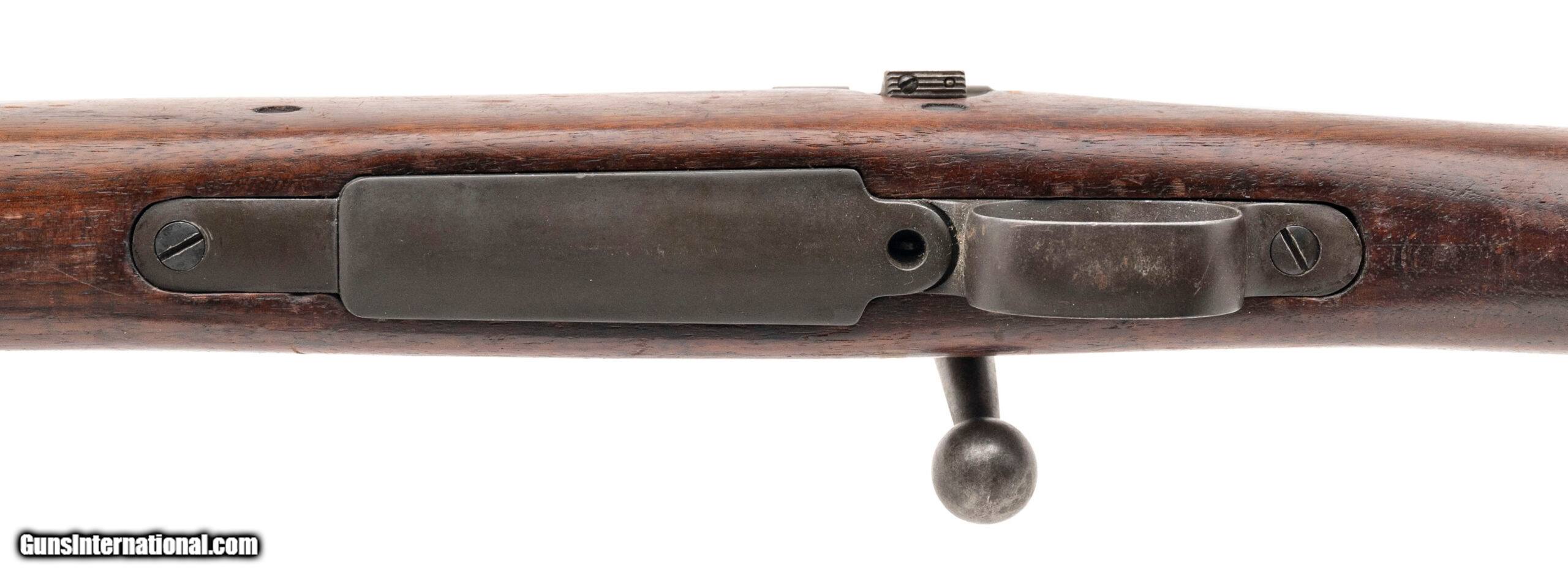 Description: "Serial No. 43617, manufactured in 1904, chambered in .30-06, featuring a 24" round barrel marked “S.A./Flaming Bomb/7-09." This early example is fitted with a scarce S-type straight stock without grasping grooves, commonly associated with early Remington 1903 rifles. Metal finish has thinned to an even brown/grey patina. Stock remains very good, showing light impression marks from service use. Action is smooth and functions correctly. Rifle comes with a period-correct brown leather sling.A fine and increasingly difficult-to-find early production 1903, showcasing transitional features just before major wartime updates were implemented. Curio/Relic: Yes Price: $1,895.00 Contact Seller |