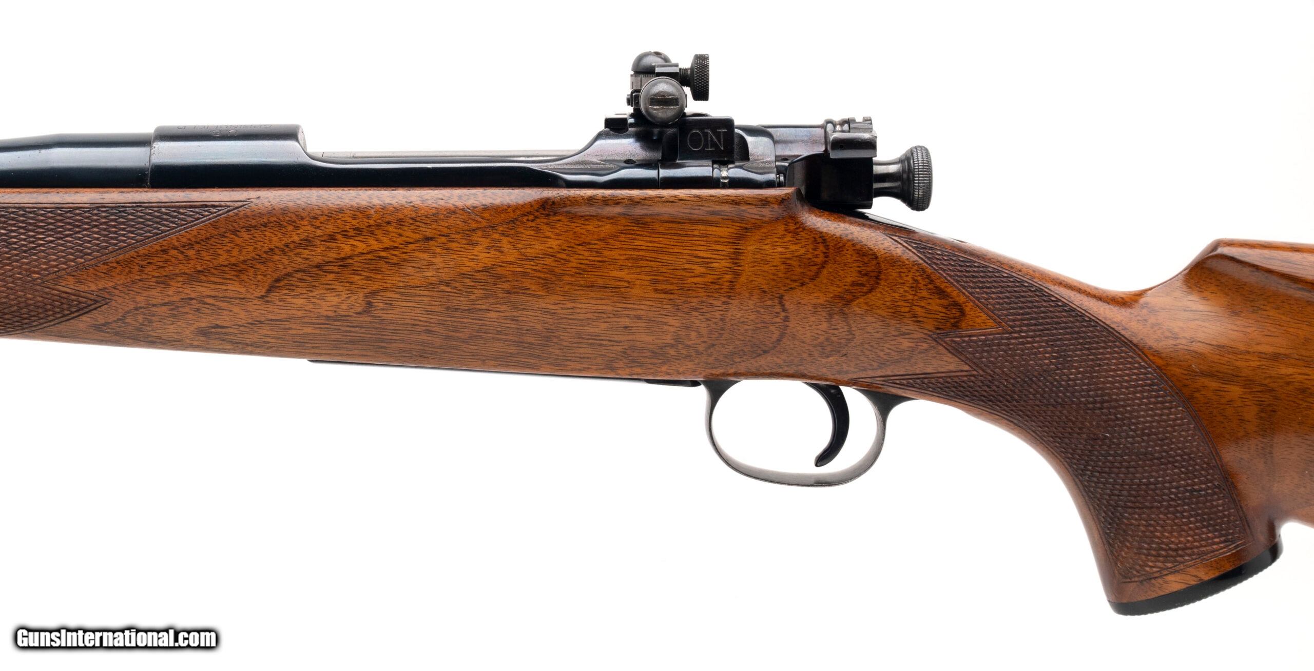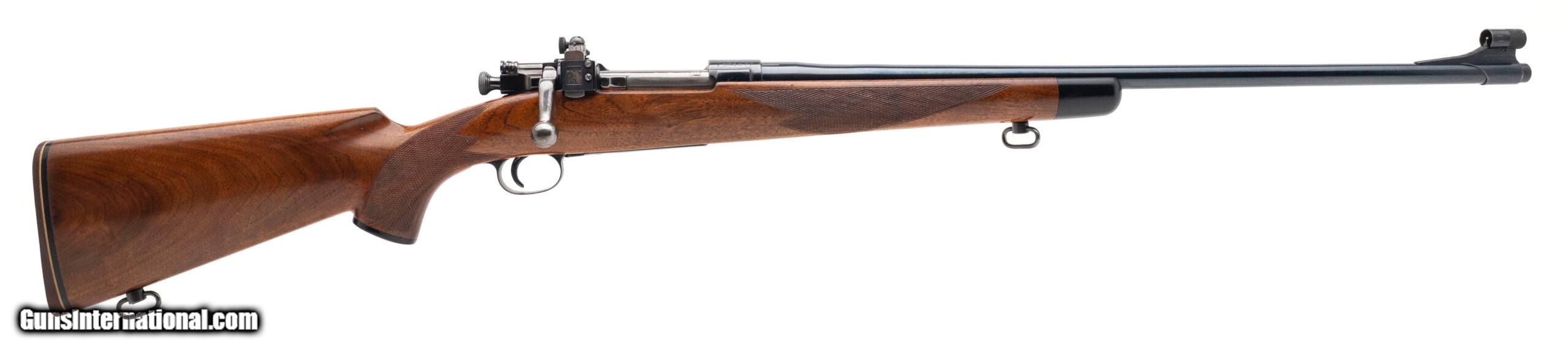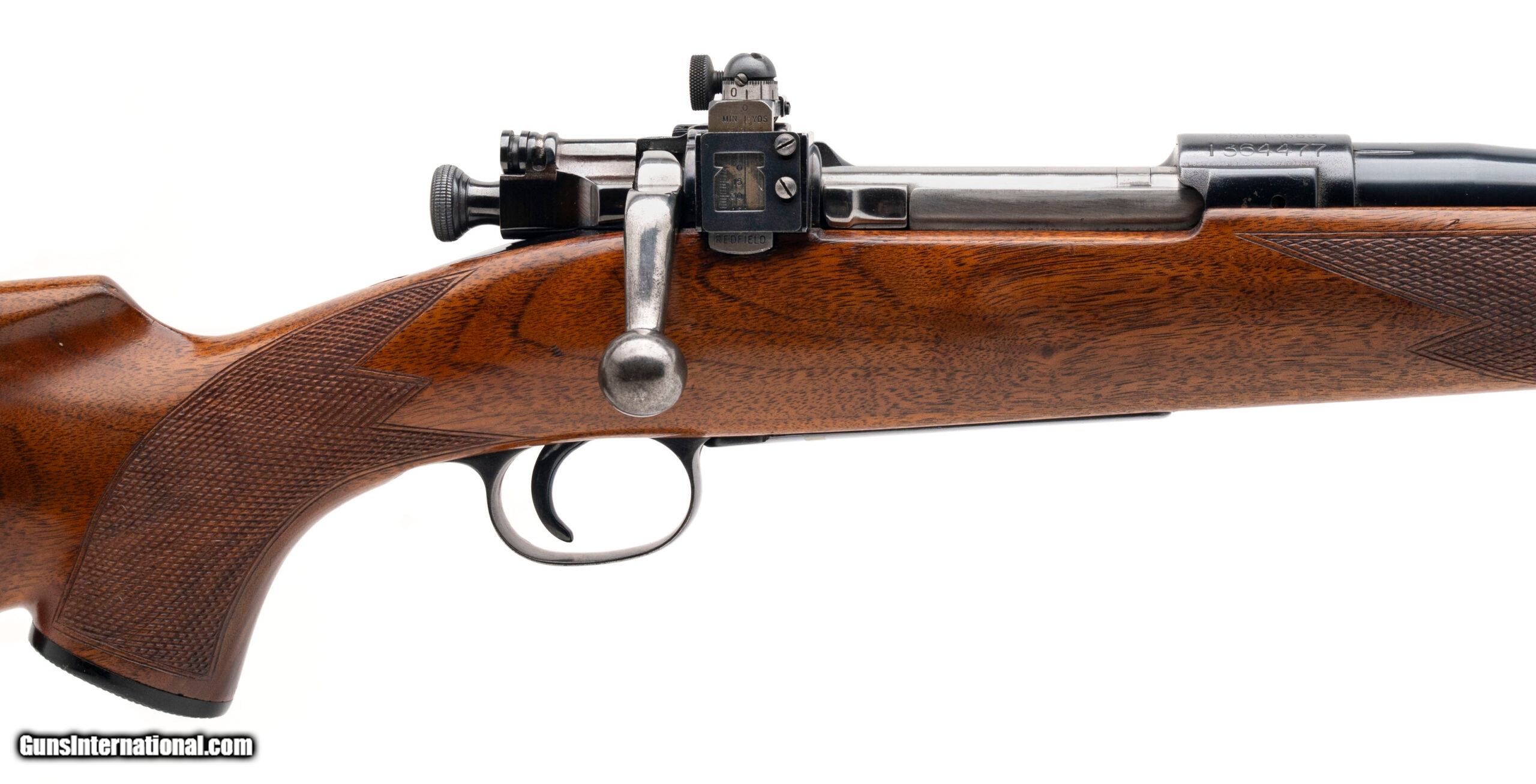 Description: "SN: 1364477, made in 1930. Custom bolt action sporting rifle built on a military barreled action chambered in 30-06 with a 24" barrel. Ramped hooded front sight and a redfield rear aperture sight with the original trigger and bottom metal. Clearly a professional job based on the very nice hand made custom checkered walnut stock with forend tip, grip cap, sling swivels and a red recoil pad marked N.F. STREBE GUN WORKS which was a gun shop in Washington D.C. in the 1950’s & 60’s. Overall condition is very good with minor wear and handling marks, bore is excellent. SOLD |