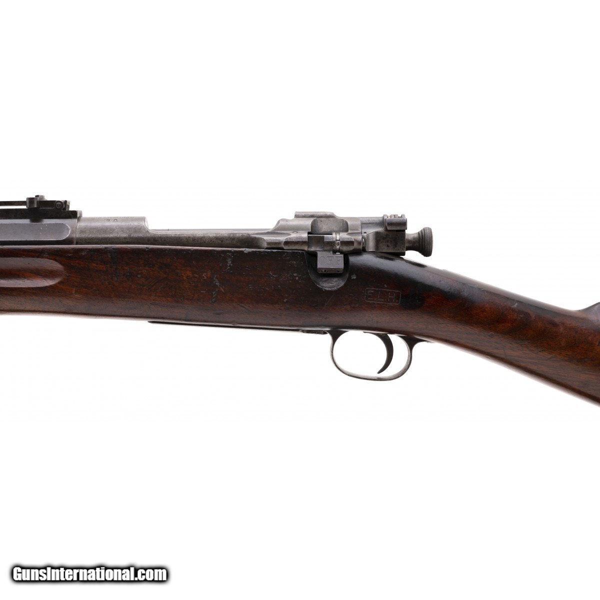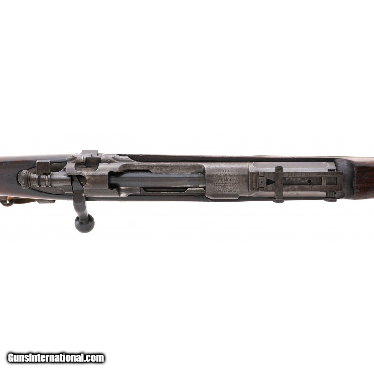 Serial No. 85293, .30-06, manufactured in 1905 with barrel dated 10-06 in overall very good plus condition. Bore is bright and shiny with strong rifling noted. Stock shows some handling and storage wear. Handsome ""E.L.H."" cartouche is visible as is ""P"" inspector mark. Early 1903 Springfield rifles are getting harder and harder to get, don't miss this one!