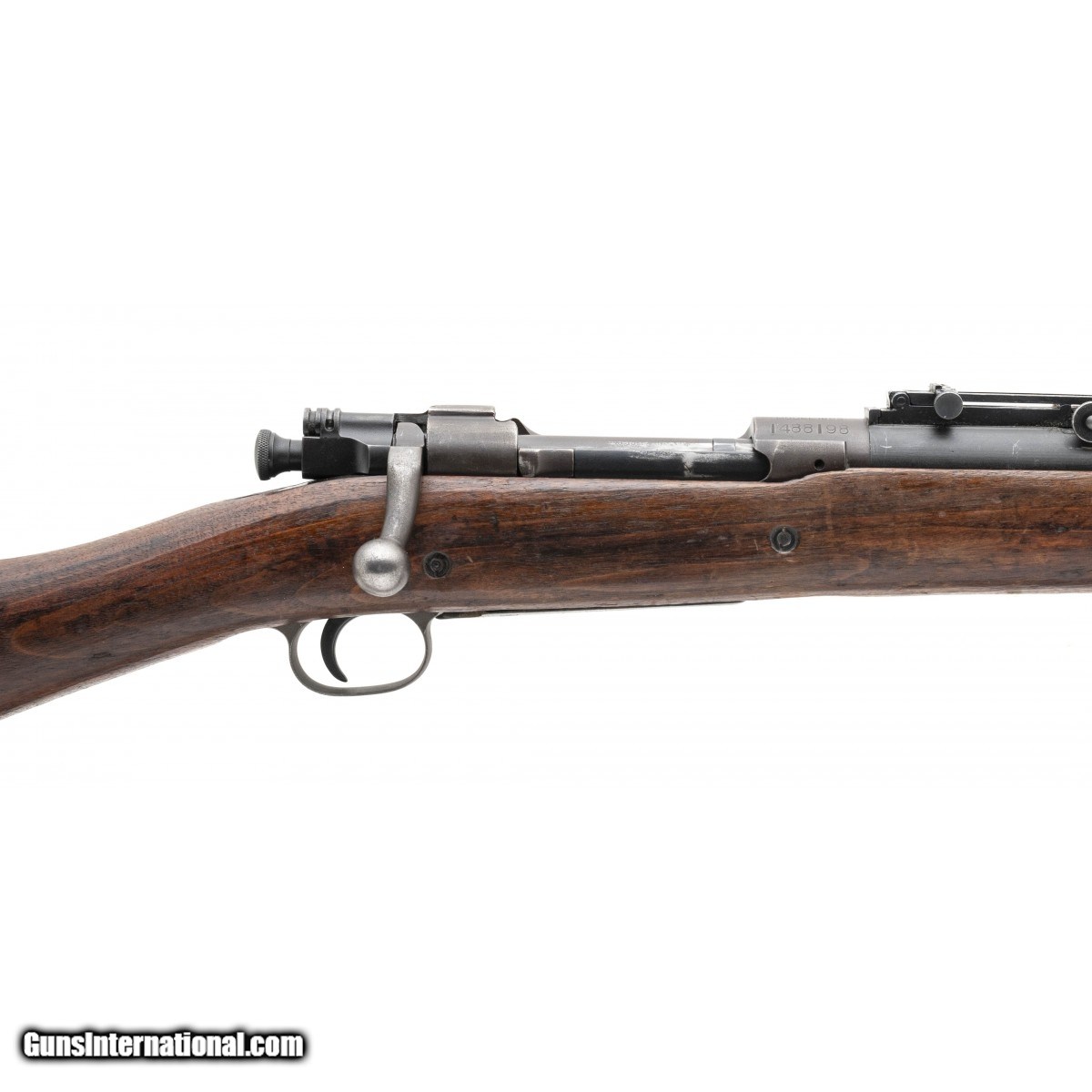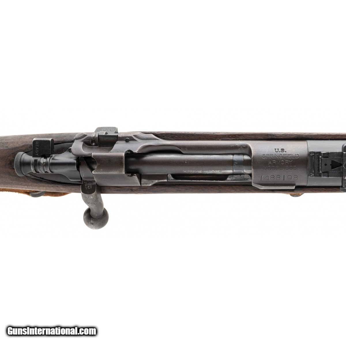 Description: " SN: 1488198. Made in 1934, .30-06, 24-inch barrel. Very good condition World War II configuration 1903 rifle with Borden hole, straight stock & a May 1944 High Standard barrel with excellent bore. Comes with leather sling. SOLD Curio/Relic: Yes |