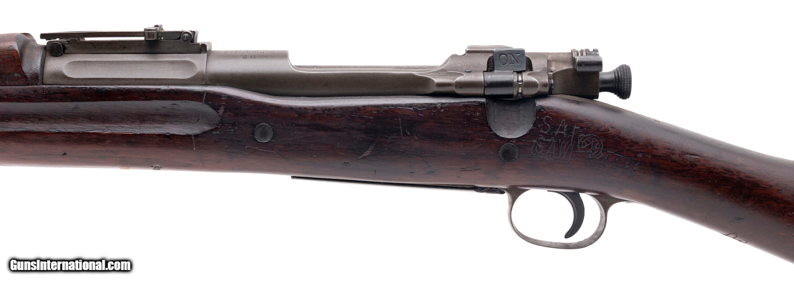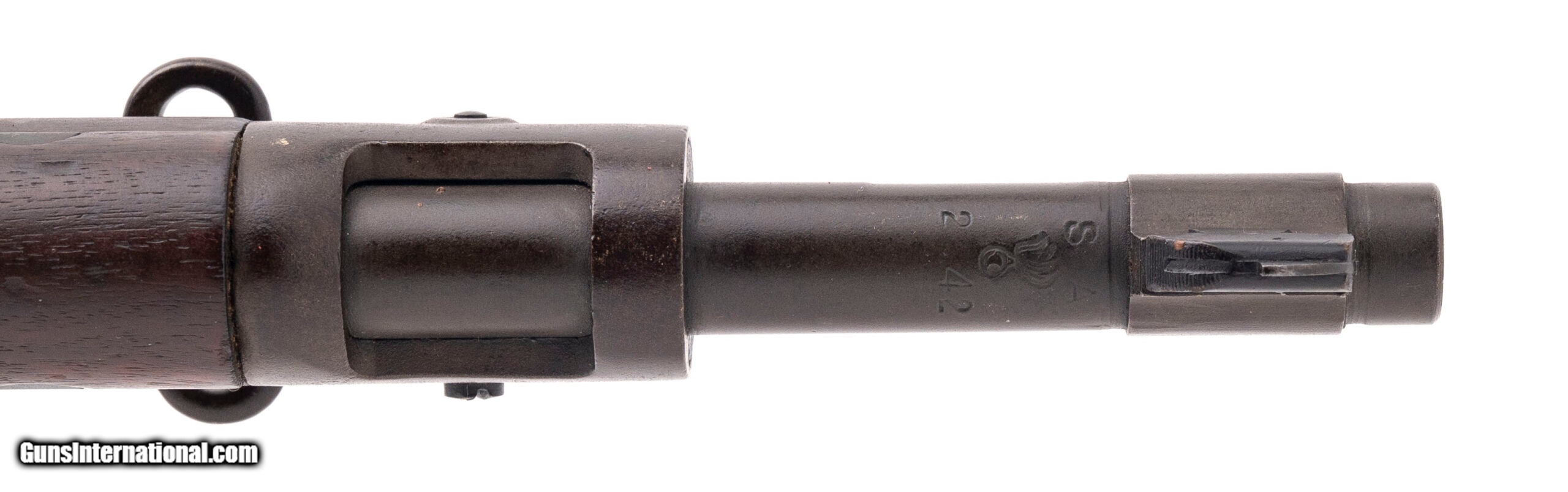 Description: "Serial No. 873723, made in 1918, .30-06, 26" round barrel marked “S.A./Flaming Bomb/2-42". Bore is bright with light frosting visible in the grooves, rifling remains strong. Rifle is in overall very good plus condition with minimal handling and storage wear noted. Left side of stock has “S.A./G.A.W.-Crossed Cannons-SAA-F" cartouche. Action is smooth and functions correctly. SOLD Curio/Relic: Yes |