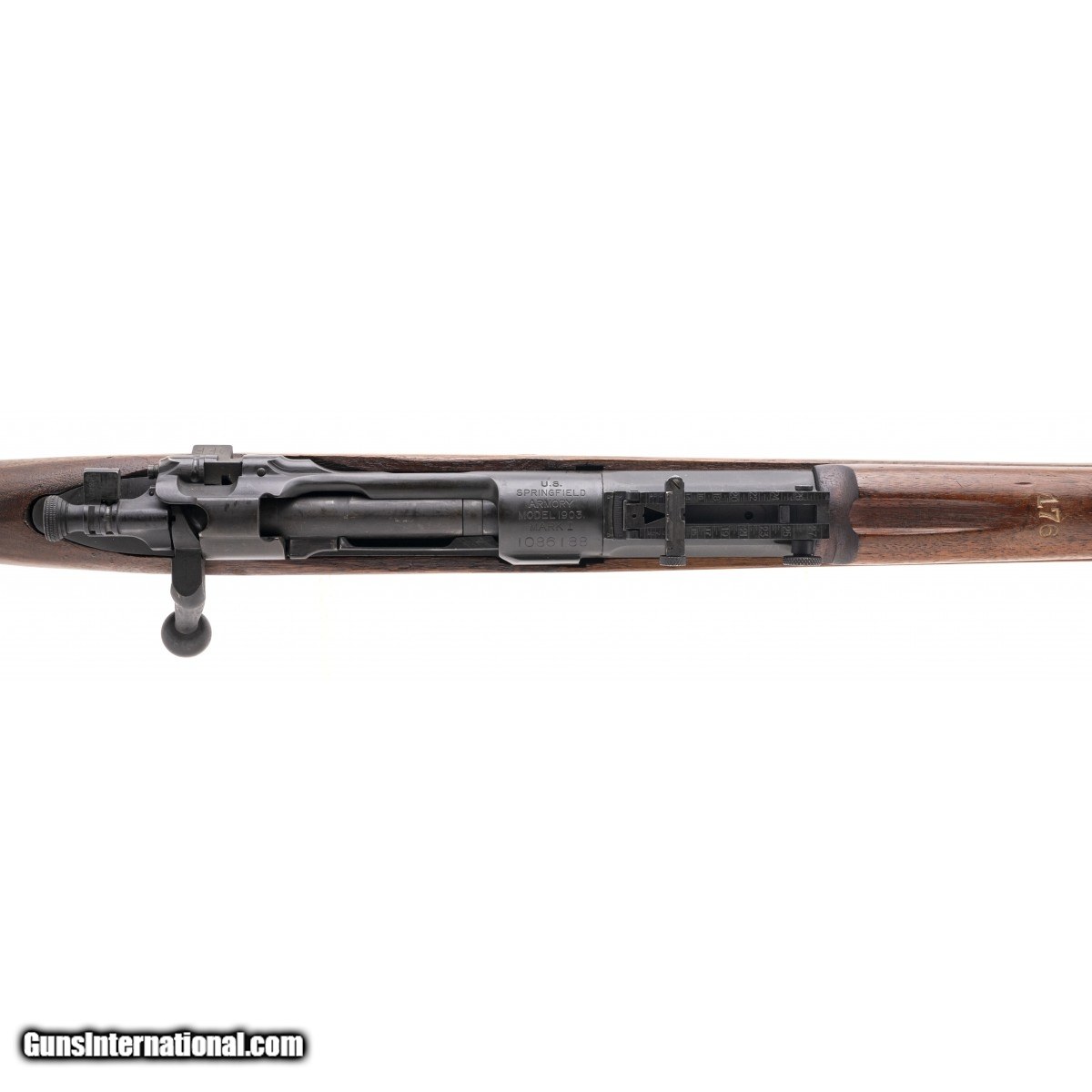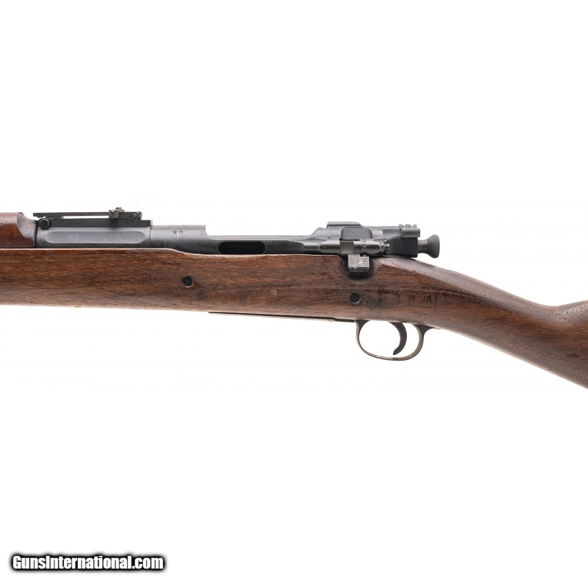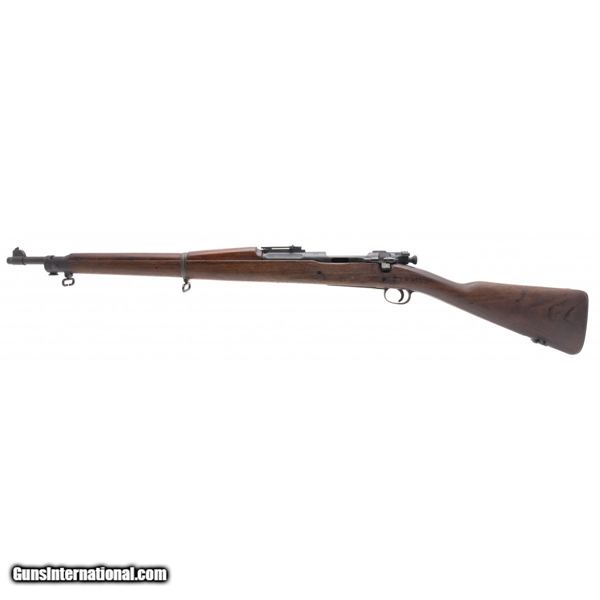 Description: " Serial No.1086188, made in 1919, .30-06, 24" round barrel marked “SA/Flaming bomb/12-18". Bore is bright and shiny with strong rifling visible. 98% rearsenal finish remains, rifle was made to accept the Pedersen device. Stock is in very good condition with “RA-Ordnance crossed cannons-FJA" cartouches visible left side. Action is smooth and functions correctly SOLD Curio/Relic: Yes |