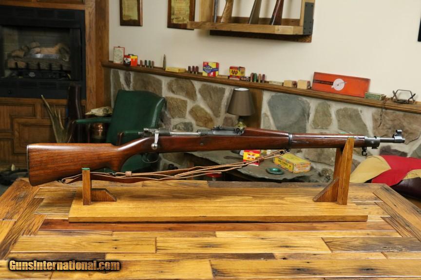 Description: Offered is a fantasic 1903 Springfield CAMP PERRY National Match rifle. Serial number is 1262511. This fine match rifle features its original STAR GAUGED barrel that is also dated 3-28. Original Headless cocking piece, matching polished and tuned factory bolt and National Match rear sight without the extra notch. Condition is superb with truly excellent fit and finish everywhere. Wood to metal fit is as good as you would see on any high grade, hand fitted firearm. Excellent original finishes of both wood and metal surfaces. Bright shiny bore that gauges under a 1 at the muzzle. This fine National Match 03 looks to have been fired little and very well cared for over the years. It is one of the Best Camp Perry National match 1903's that you are likely to find. Collector Grade. Go to ironmenarms . c o m for additional photos SOLD Curio/Relic: Yes |