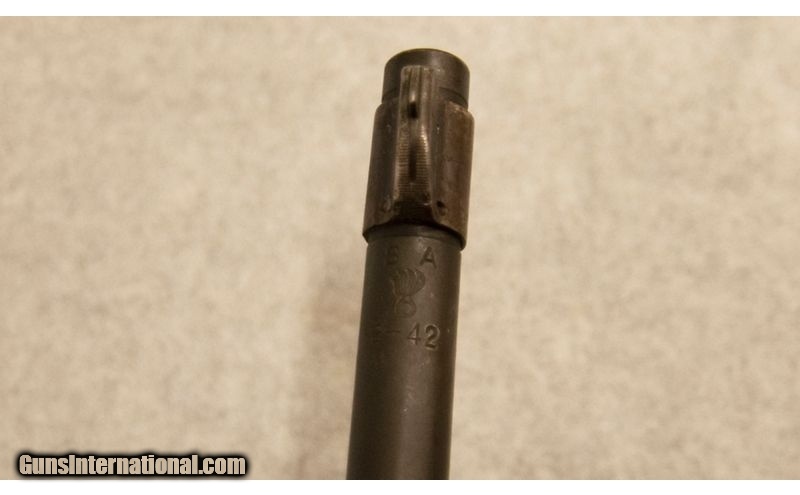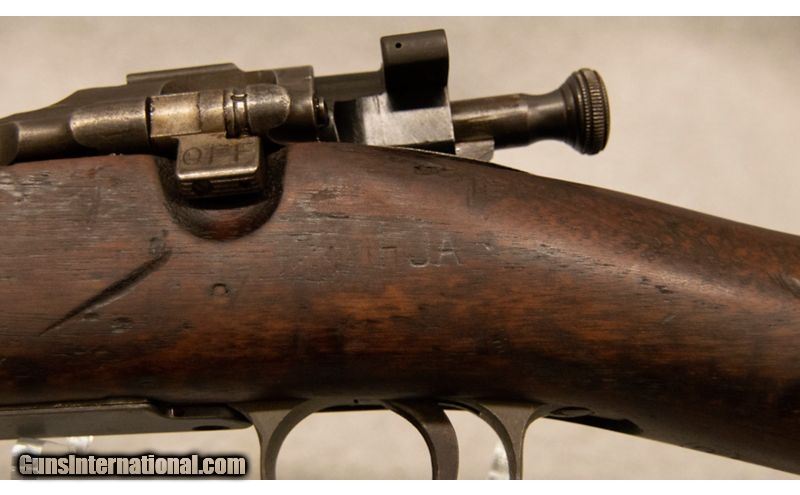 Description: Remington Model 1903, chambered in .30-06 with a 5 round magazine. The date code on the barrel end of this Remington indicates a manufacture date of February 1942. This rifle is showing its age with a fair amount of scuffs and scratches, as well as a few gouges on the underside of the stock. Metal appears to be in decent condition apart from the front sight and the upper band. Various cartouches/proof marks have been photographed including: Circle P indicating the proof testing, Crossed cannons JFA indicates the Ordnance escutcheon and an inspection done by Colonel Frank J. Atwood. .30-06 Springfield SOLD Curio/Relic: Yes Chambers: .30-06 Metal Condition: Fair Wood Condition: Fair Bore Condition: Fair Barrels: 24' Stock Dimensions: 13' Butt Pad: Metal Sights: Iron Item Location: Fort Mill, SC |