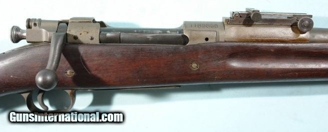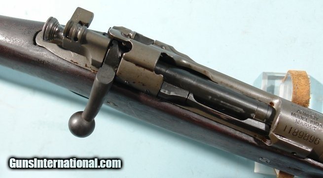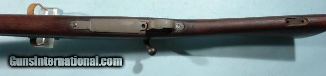 Description: SCARCE SPRINGFIELD U.S. MODEL 1903 MARK 1 .30-06 CAL. RIFLE DATED JAN. 1921. Receiver ported for use with the Pedersen Device. Original missing parts. Serial number in the correct 1,189,xxx range with matching barrel date stamping “S A/ORDNANCE BOMB/1-21”. Original front and rear sights. Matching bolt. Missing handguard, forend hardware, butt plate and rear swivel. Two tap holes added for receiver sight. Excellent with nearly all the Parkerizing. Stock with the original finish and visible encircled “P” proof behind trigger guard. Perfect working order and excellent, bright bore. SOLD Curio/Relic: Yes Rifle Caliber: .30-06 Springfield |