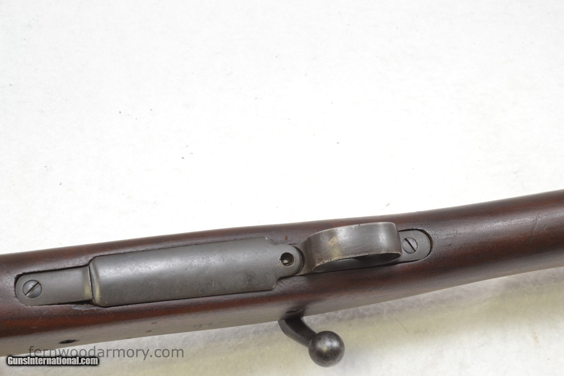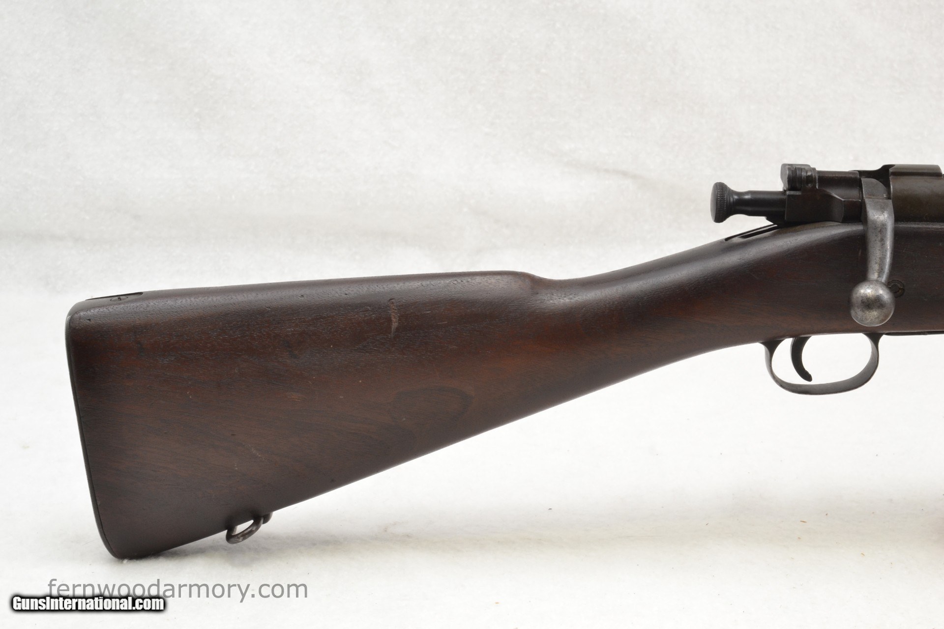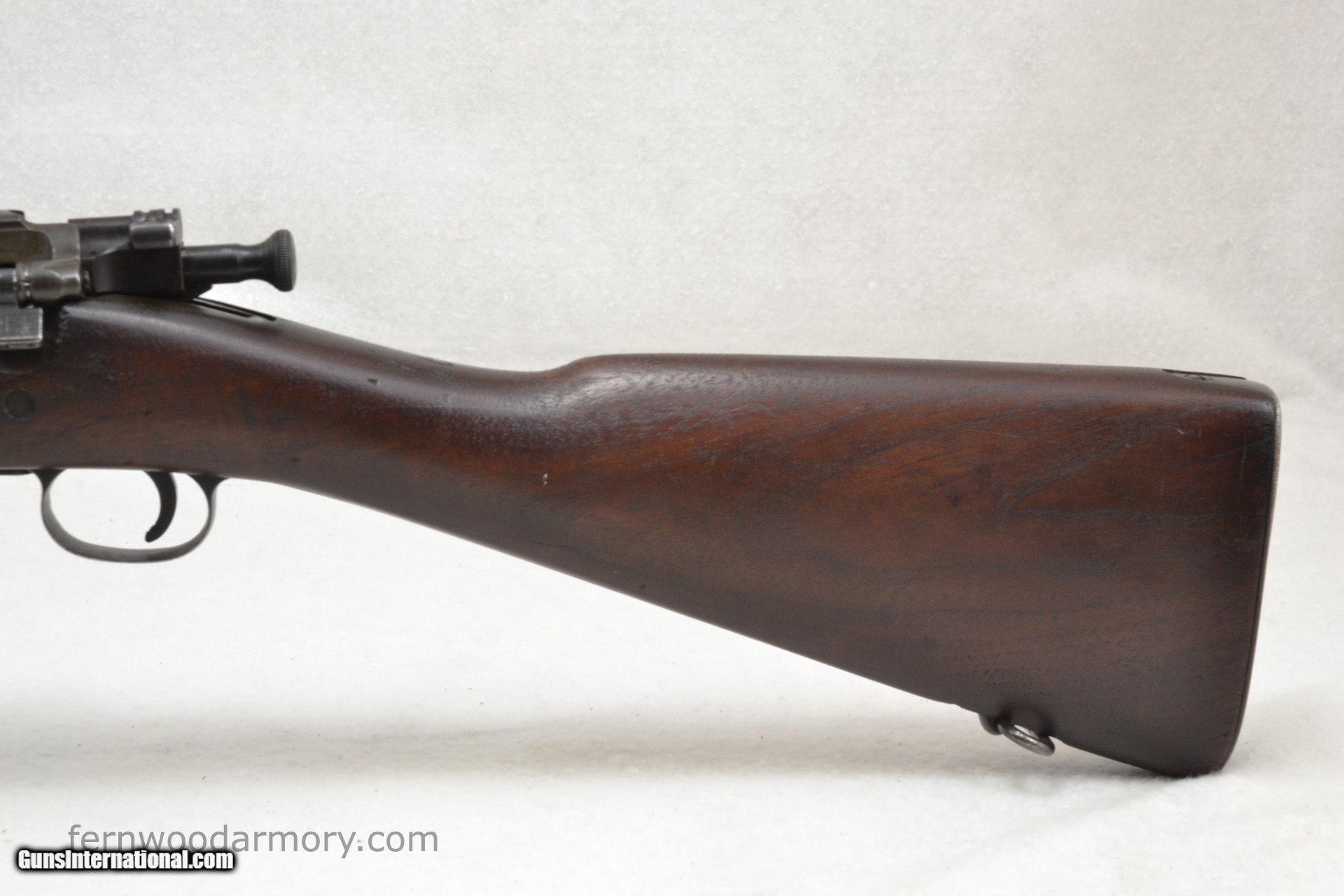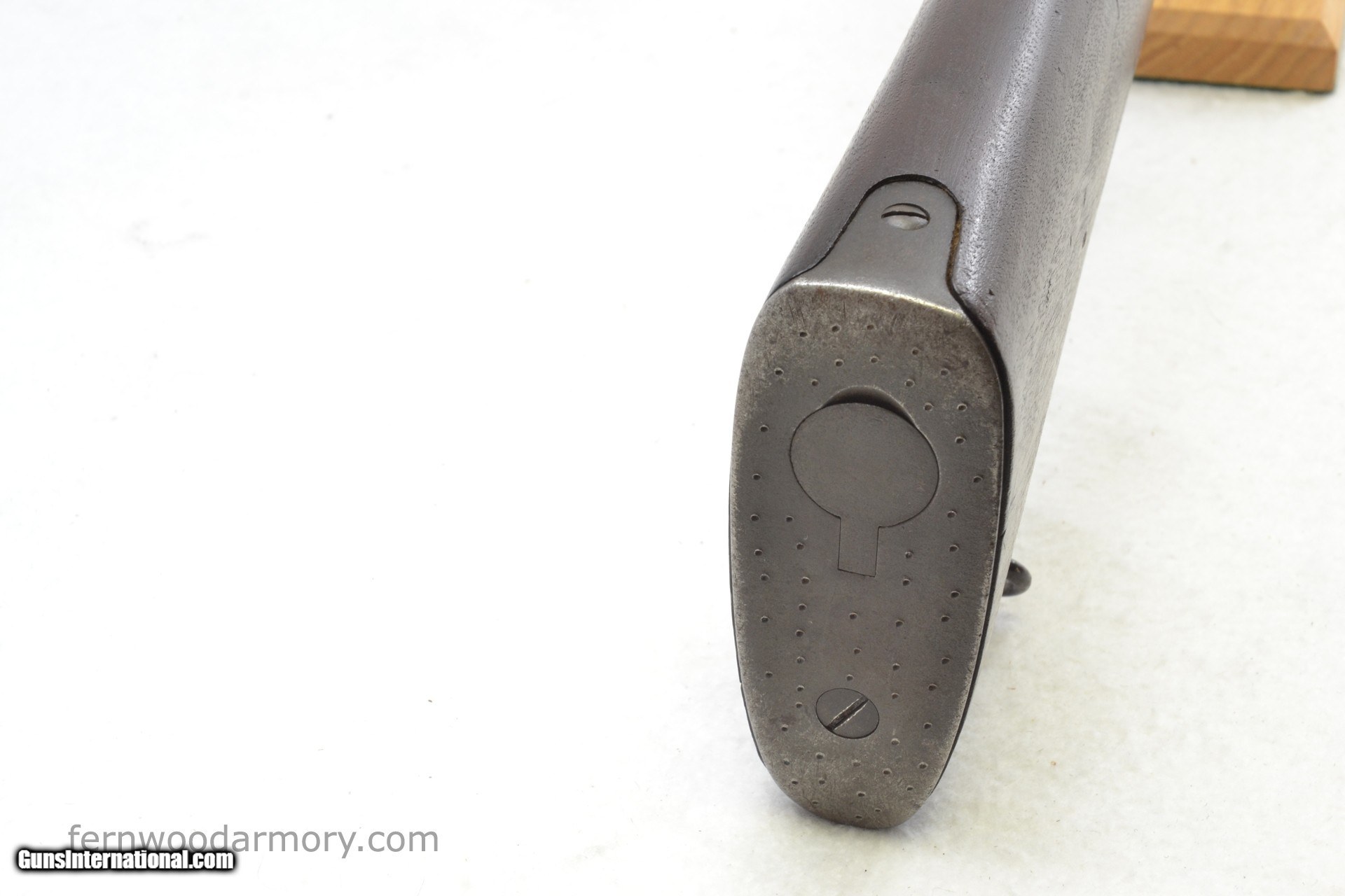 Description: Springfield Armory M1903, caliber .30-06. Serial number 987907 dates to 1918. This rifle has a WW2 issued High Standard barrel dated July 1944. This 1903 is in excellent used condition. Parkerized metal parts show no signs of pitting. The bolt finish shows wear. The serial number is etched into the bolt, though faint and difficult to see in photos. The walnut finger groove stock is excellent with just a few dings and scratches, no cracks. There are no arsenal markings or proofs on the stock, it could be a commercial replacement, we aren't sure. The forearm is a nice match to the stock. Most metal parts are unmarked with the exception of the bolt, marked "N.S." on the top of the handle. The barrel is marked "H S 7 44", with a flaming bomb proof. Bore is bright and shiny. The barrel gauge measurements are 1.5 at the muzzle and 1.5 at the throat. The gun has been test fired and functions perfectly. Free Shipping to FFL. C & R Eligible. See additional terms below. TERMS: We are an FFL dealer. Guns listed for sale on Guns International are also for sale in our online store. We may remove the listing here at any time. No Credit Card Fees Firearms ship to FFL dealers, and/or C & R license holders if applicable. Free ground shipping for lower 48 states. Contact us for quotes to Alaska and Hawaii. All firearms ship insured for full value with signature required. Return policy for used guns: 3 day inspection, starting when firearm arrives at FFL. Buyer is responsible for return shipping, insurance required. $35 restock fee. Questions: email us or call 888-319-4811 Mon-Fri 9-5 Eastern SOLD Curio/Relic: Yes Rifle Caliber: .30-06 Springfield Manufacturer: Springfield Armory Model: 1903 Serial Number: 987907 Barrel Length: 24 Inches Bore Condition: Excellent Action: Bolt Manufacture Date: 1918 |