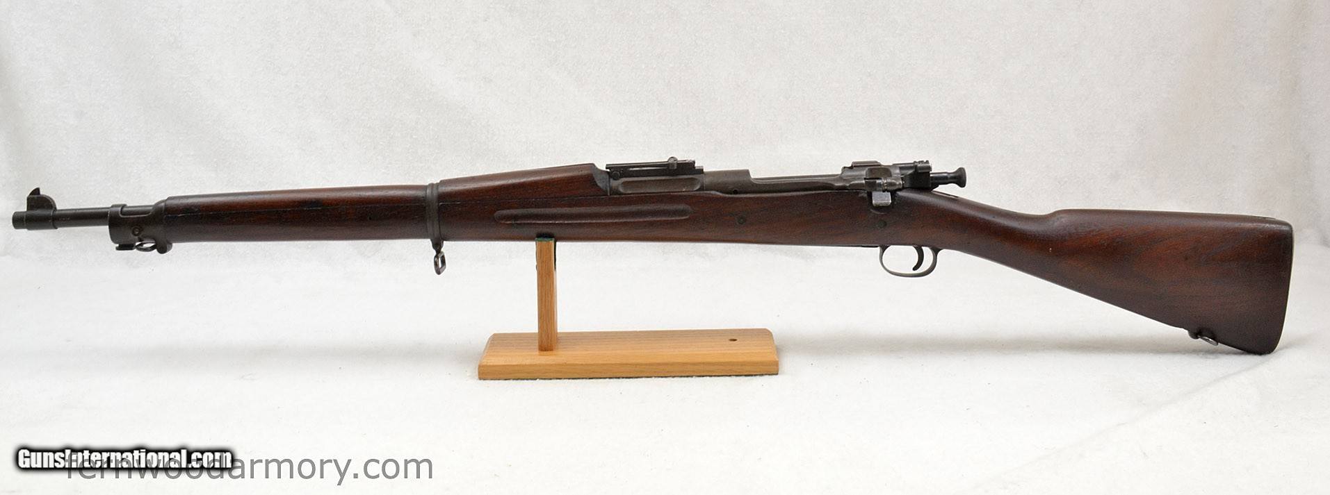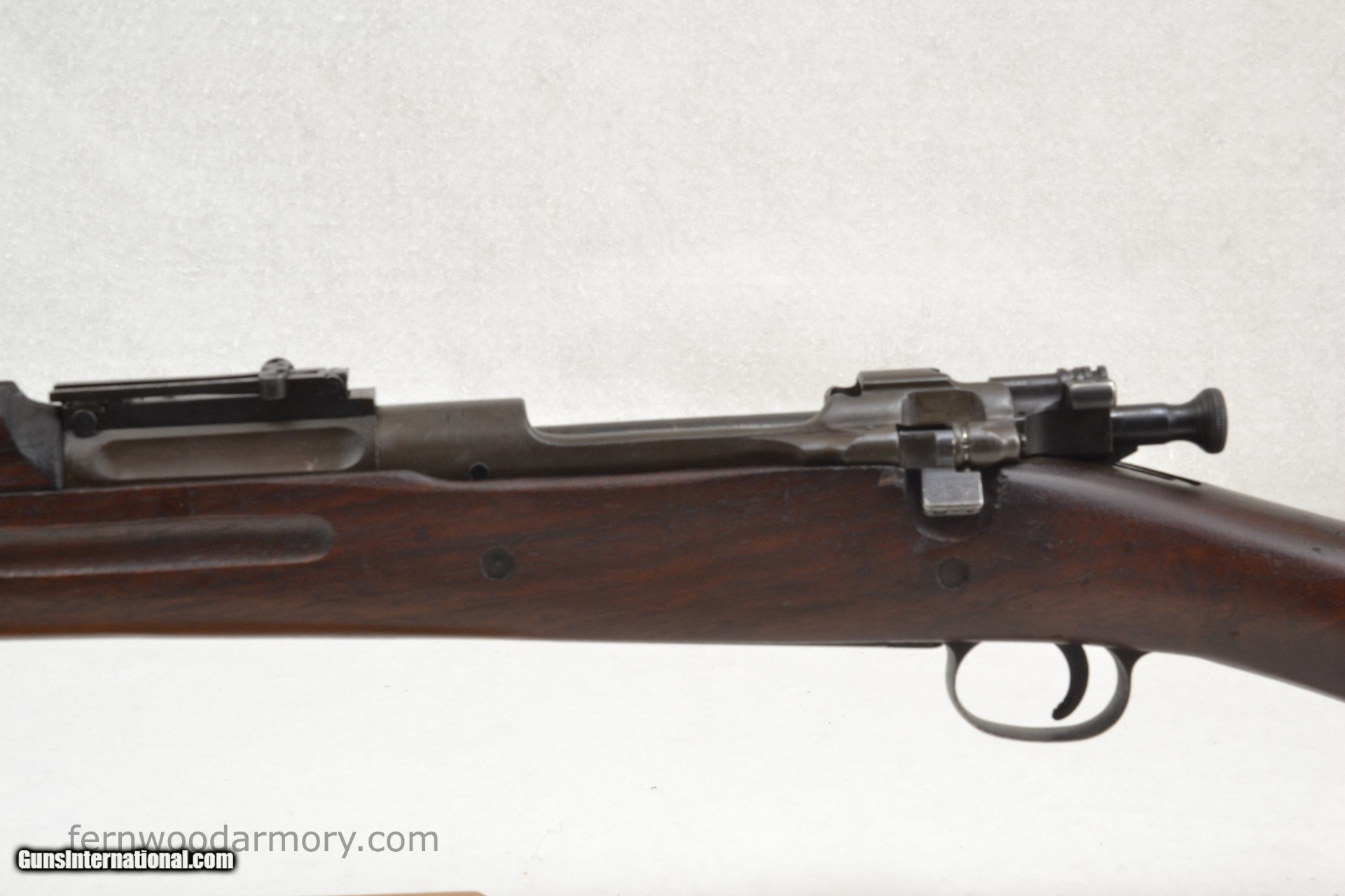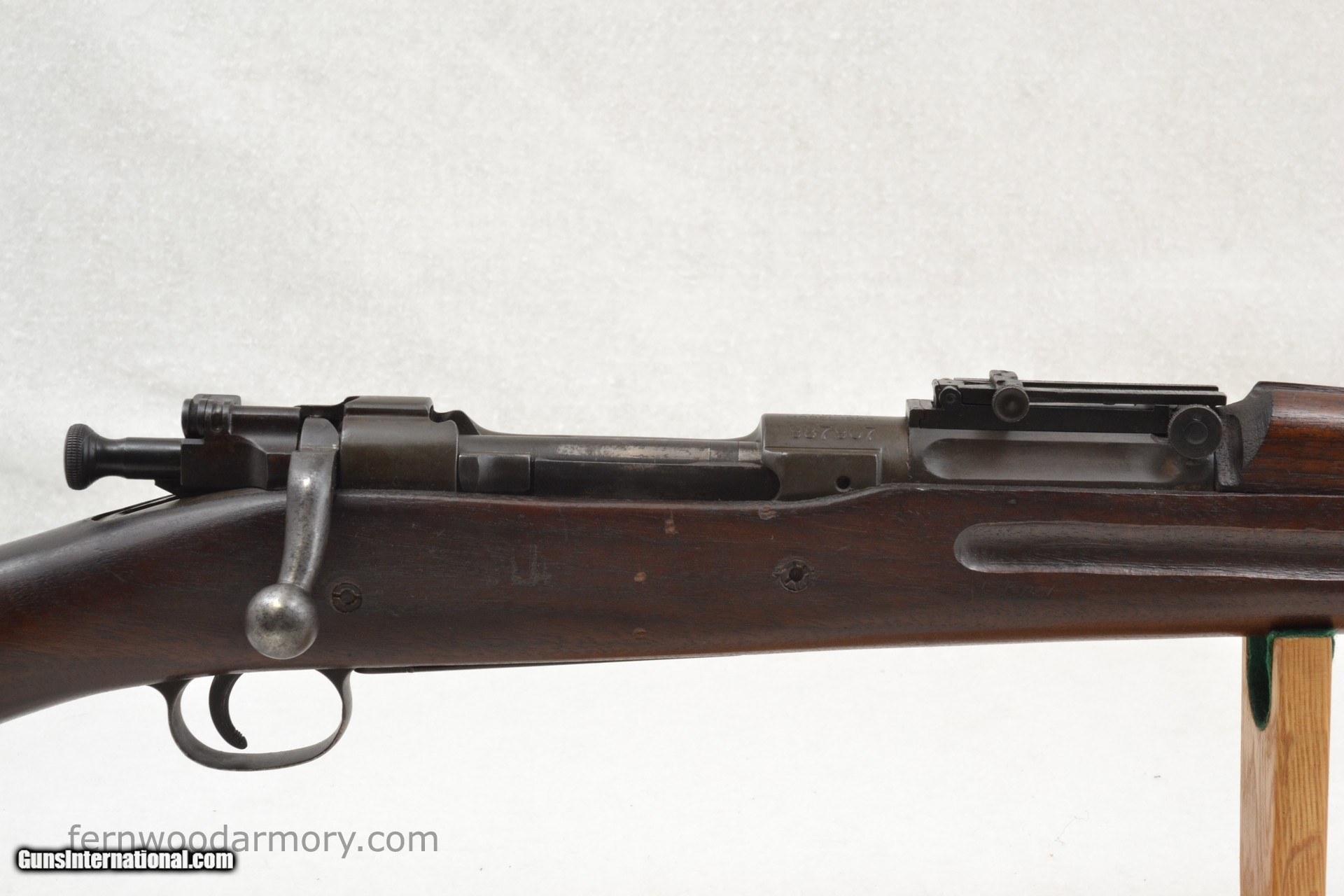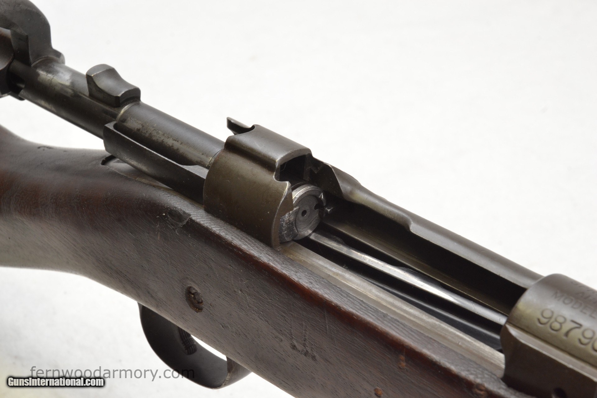 Description: Springfield Armory M1903, caliber .30-06. Serial number 987907 dates to 1918. This rifle has a WW2 issued High Standard barrel dated July 1944. This 1903 is in excellent used condition. Parkerized metal parts show no signs of pitting. The bolt finish shows wear. The serial number is etched into the bolt, though faint and difficult to see in photos. The walnut finger groove stock is excellent with just a few dings and scratches, no cracks. There are no arsenal markings or proofs on the stock, it could be a commercial replacement, we aren't sure. The forearm is a nice match to the stock. Most metal parts are unmarked with the exception of the bolt, marked "N.S." on the top of the handle. The barrel is marked "H S 7 44", with a flaming bomb proof. Bore is bright and shiny. The barrel gauge measurements are 1.5 at the muzzle and 1.5 at the throat. The gun has been test fired and functions perfectly. Free Shipping to FFL. C & R Eligible. See additional terms below. TERMS: We are an FFL dealer. Guns listed for sale on Guns International are also for sale in our online store. We may remove the listing here at any time. No Credit Card Fees Firearms ship to FFL dealers, and/or C & R license holders if applicable. Free ground shipping for lower 48 states. Contact us for quotes to Alaska and Hawaii. All firearms ship insured for full value with signature required. Return policy for used guns: 3 day inspection, starting when firearm arrives at FFL. Buyer is responsible for return shipping, insurance required. $35 restock fee. Questions: email us or call 888-319-4811 Mon-Fri 9-5 Eastern SOLD Curio/Relic: Yes Rifle Caliber: .30-06 Springfield Manufacturer: Springfield Armory Model: 1903 Serial Number: 987907 Barrel Length: 24 Inches Bore Condition: Excellent Action: Bolt Manufacture Date: 1918 |