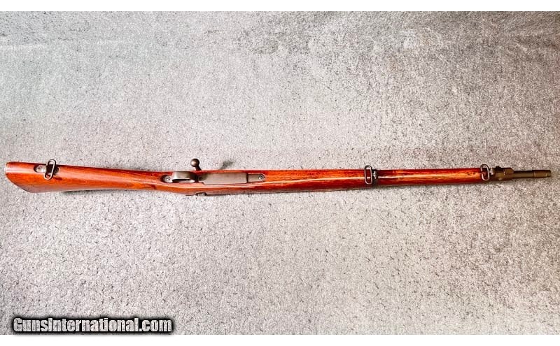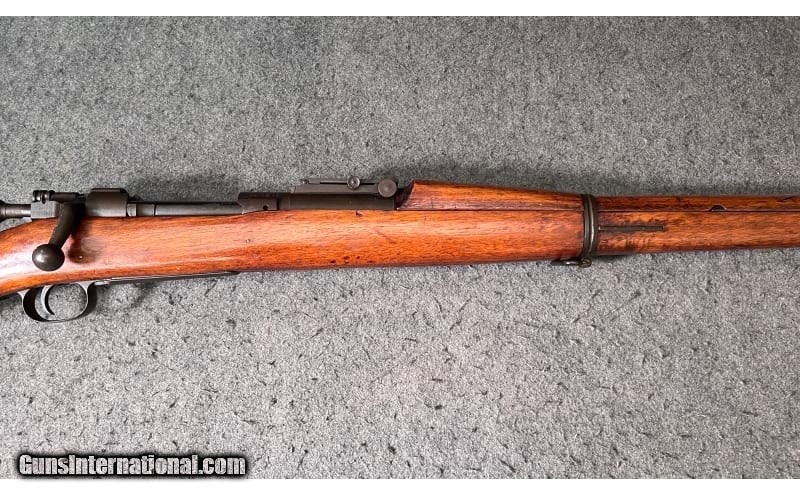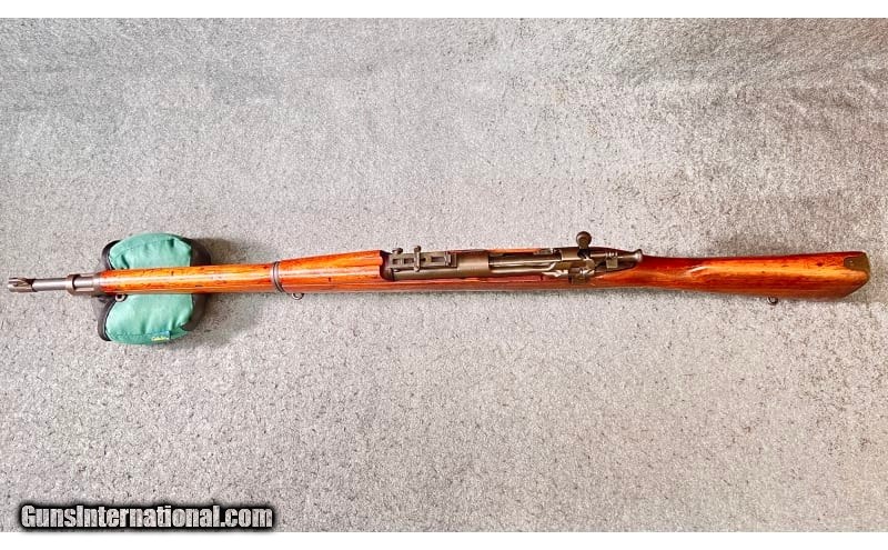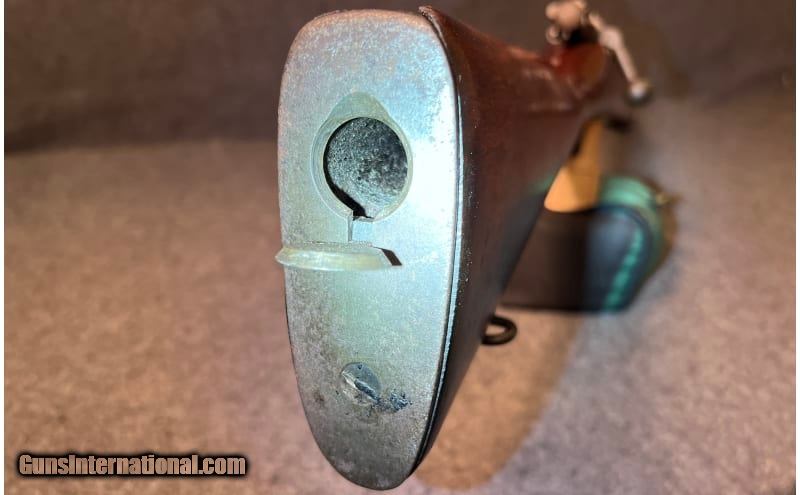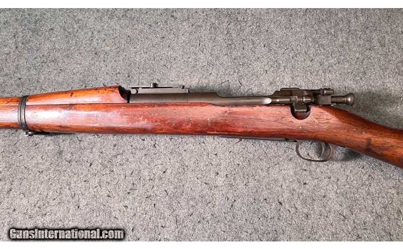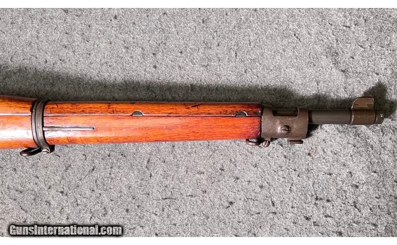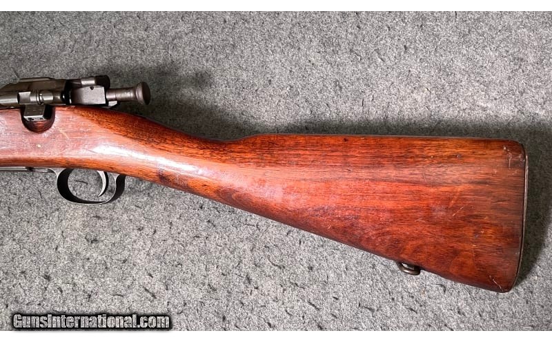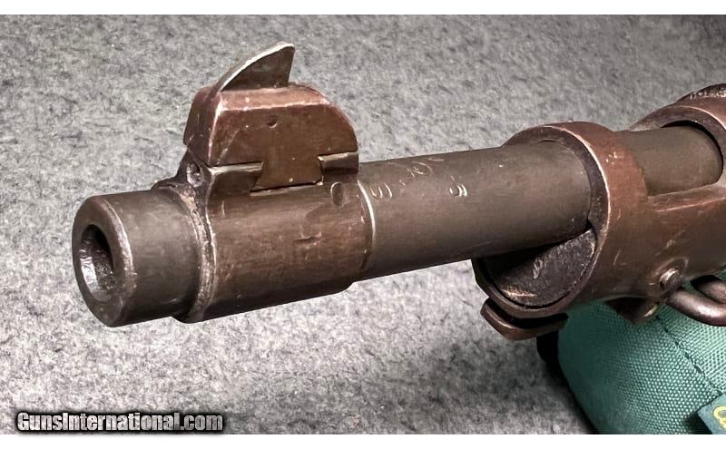 Description: This 1918 bolt action rifle is a Springfield Armory Model 1903 chambered in .30 Caliber. It has a fixed dovetailed serrated ramp front sight, an adjustable "ladder" rear sight, a steel butt plate with a trap door, and sling loops top, middle and bottom. The top of the receiver is marked "U.S. / SPRINGFIELD / ARMORY / MODEL 1903 / 939219". The top of the barrel is marked "S A / flaming bomb / 9 – 42". The safety is marked "SAFE READY" and the magazine cutoff is marked "ON OFF". The barrel band is marked "U". The bayonet lug is marked "H". The bottom of the bolt handle is marked "R" and with two punch marks. The action functions correctly. The Model 1903 Springfield is an American five-round magazine-fed, bolt-action service repeating rifle, used primarily during the first half of the 20th century. The 1903 was first used in combat during the Philippine–American War, and it was officially adopted by the United States as the standard infantry rifle on June 19, 1903, where it saw service in World War I, and was replaced by the faster-firing semi-automatic eight-round M1 Garand starting in 1936. However, the 1903 remained in service as a standard issue infantry rifle during World War II, since the U.S. entered the war without sufficient M1 rifles to arm all troops. It also remained in service as a sniper rifle during World War II, the Korean War, and the Vietnam War. It remains popular as a civilian firearm, historical collector's piece, a competitive shooting rifle, and as a military drill rifle. According to the serial number it appears that this US Springfield Armory 1903 was Made in 1918. .30-06 Springfield SOLD Curio/Relic: Yes Metal Condition: The metal is in very good condition Wood Condition: "Wood stock is in very good condition, shows very minimal marks and dings, and is not cracked or chipped Barrels: "24 inch barrel, stamped with SA, flaming bomb, 9-42 Triggers: Smooth curved trigger Stock Dimensions: "13 inch LOP, overall length 43½ inches Butt Pad: Steel butt plate with door Weight: 8 lbs 9 oz Sights: "Fixed dovetailed serrated ramp front sight, adjustable ""ladder"" rear sight Item Location: Wichita, KS |