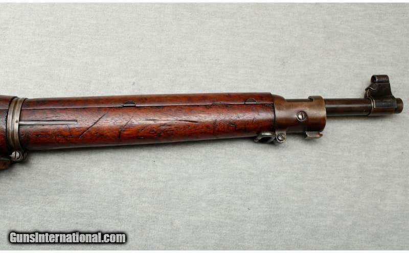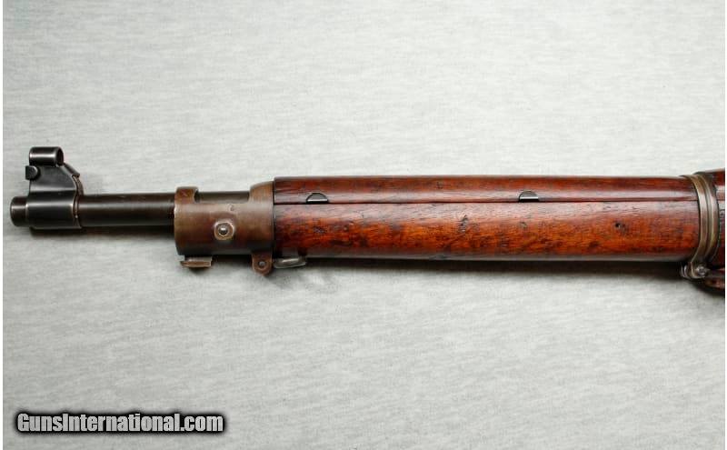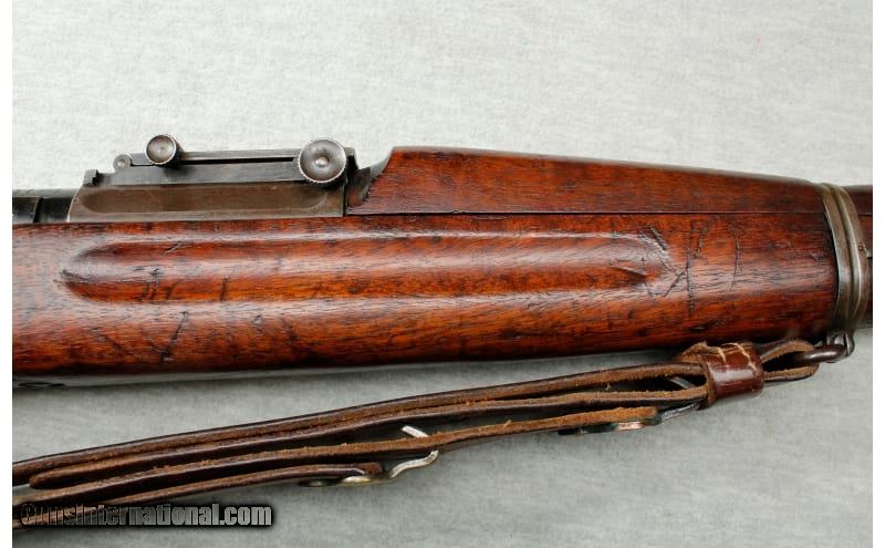 Description: Manufactured in 1918. "SA/(flaming bomb)/12-18/A" marked barrel. Mark I Pedersen device sear, cut-off and stock with clearance cut retained. Includes a 1918 dated M1907 brown leather sling, and an oiler in the butt compartment. Arsenal refurbished, with some freckling and brown patina on the balance. Stock is good as refinished, with numerous scattered scratches, dents and chips. Mechanically excellent. .30-06 Springfield SOLD Curio/Relic: Yes Metal Condition: good Wood Condition: good Bore Condition: Slight Darkening - Light to moderate pitting Barrels: 24" barrel Stock Dimensions: 13 Fore End: smooth walnut Butt Pad: metal Weight: 9 pounds Sights: factory sights Item Location: La Vista, NE |