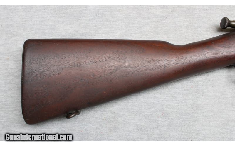 Description: This Springfield Armory U.S. Model 1903 Mark 1 is a right-hand bolt-action U.S. Military rifle in .30-06 Springfield. It has a 24-inch barrel. A blade front sight and an adjustable tangent rear sight. The butt stock is a smooth grip hardwood straight grip with a storage compartment. The forearm is a smooth grip two-piece hardwood. Serial Number 1108630. Barrel is arsenal stamped and dated 09-19. The M1903 Mark I variant was made between 1918 and 1920. They were modified with an ejection port on the left side of the receiver for specific use with the Pedersen device. .30-06 Springfield SOLD Curio/Relic: Yes Metal Condition: Very good Wood Condition: Very good Bore Condition: Bright with slight frost and strong rifling Barrels: 24 Inches Triggers: Factory Stock Dimensions: LOP 13 Inches Fore End: Smooth walnut Butt Pad: Textured steel with storage door Sights: A blade front sight and an adjustable tangent rear sight Item Location: La Vista, NE |