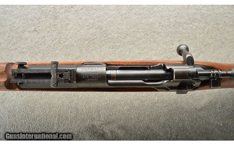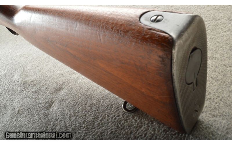Description: US Model 1903 Springfield Mark 1 bolt action rifle. In good surplus condition marked from Springfield Armory, with an original Springfield 30-06 barrel, marked S A over (flaming bomb) over 3-20. The Mark 1 was introduced toward the end of WW1 and features the small ejection port on the left side of the receiver to work with the Pedersen Device IE: .30 cal pistol cartridge semi-automatic insert. .30-06 Springfield SOLD Curio/Relic: Yes Chambers: 1 Metal Condition: Retains most of its finish. Wood Condition: Good surplus. Bore Condition: Good. Barrels: 1 Triggers: 1 Stock Dimensions: 13" LOP. Fore End: Two piece wood . Butt Pad: Metal. Weight: 9 LBS Sights: Rear adjustable with a fixed front blade. Item Location: Owatonna, MN |