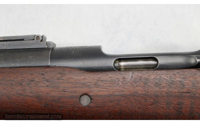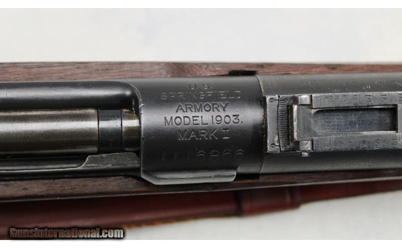 Description: U.S. Springfield 1903 Mark I rifle chambered in 30-06. This rifle being a Mark I has been modified to accept the Pedersen Device, but retains the ability to fire normally without it. The barrel is marked H.S. and dated 5-44. The stock does not show proof marks or cartouches, but is stamped with the same serial number as the receiver. The metal finish is very good with some signs of wear, but free of rust or damage and has its original finish. NO SALES TAX ON FIREARMS SOLD IN WEST VIRGINIA. .30-06 Springfield SOLD Curio/Relic: Yes Chambers: 30-06 SPRINGFIELD Metal Condition: GOOD Wood Condition: GOOD Bore Condition: EXCELLENT Barrels: 24 Item Location: Morgantown, WV |