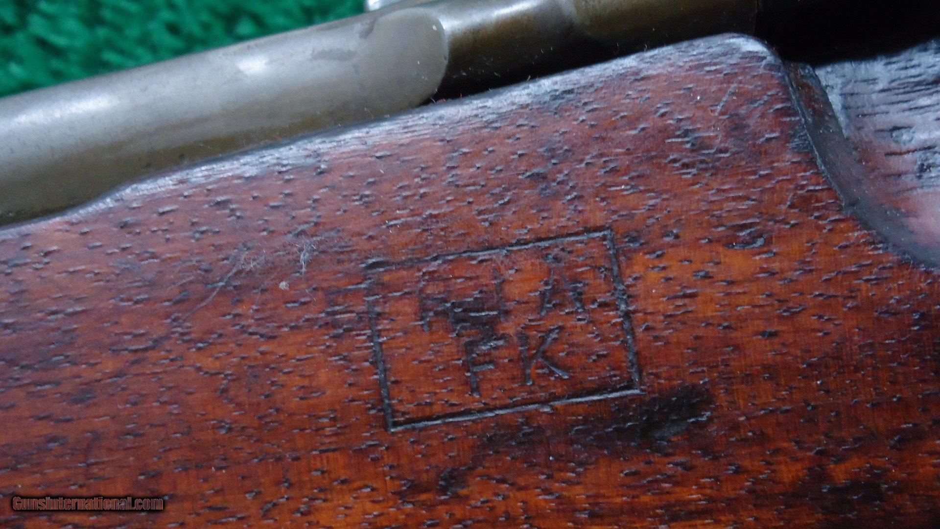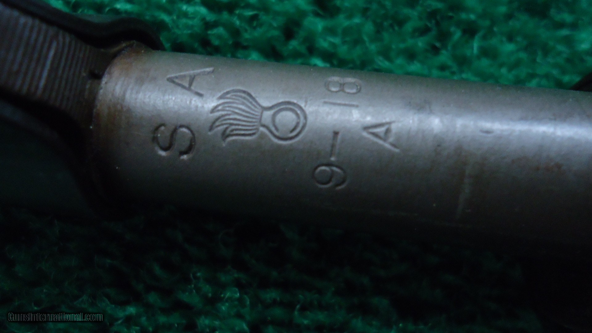 Description: 24 inch barrel chambered in 30-06 caliber bolt action rifle. "SA 9-19" marked barrel with flaming bomb. Serial number is in the Double Heat Treated receiver range that makes this one safe to shoot. Excellent bore. Original sights. RIA over FK in a square cartouche on left side of stock. Wood is in very good condition with very few handling mars. Metal surfaces retain most all of the arsenal applied finish as well. Cleaning kit is in the butt. Original Sling rings and a bayonet lug. This is an excellent example of a WW1 military rifle that would look good in any collection. Leroy Merz Antique Firearms specializes in antique and vintage Winchesters and other fine American firearms. Since 1965 Mr. Merz has taken part in the world of firearms and has been a contributor to many well known reference books. We have hundreds of additional guns in every price range at our home online. Search for Merz Antiques in google. SOLD Curio/Relic: Yes Rifle Caliber: .30-06 Springfield |