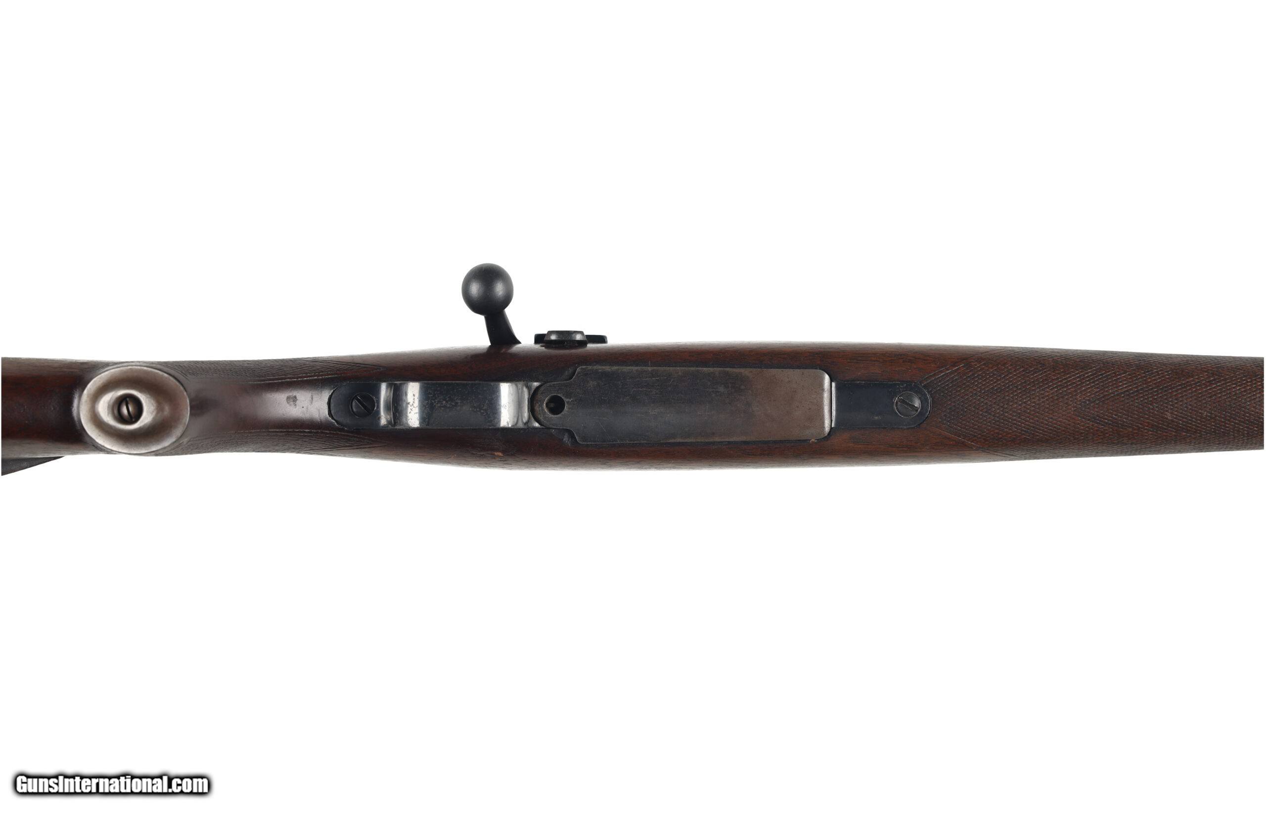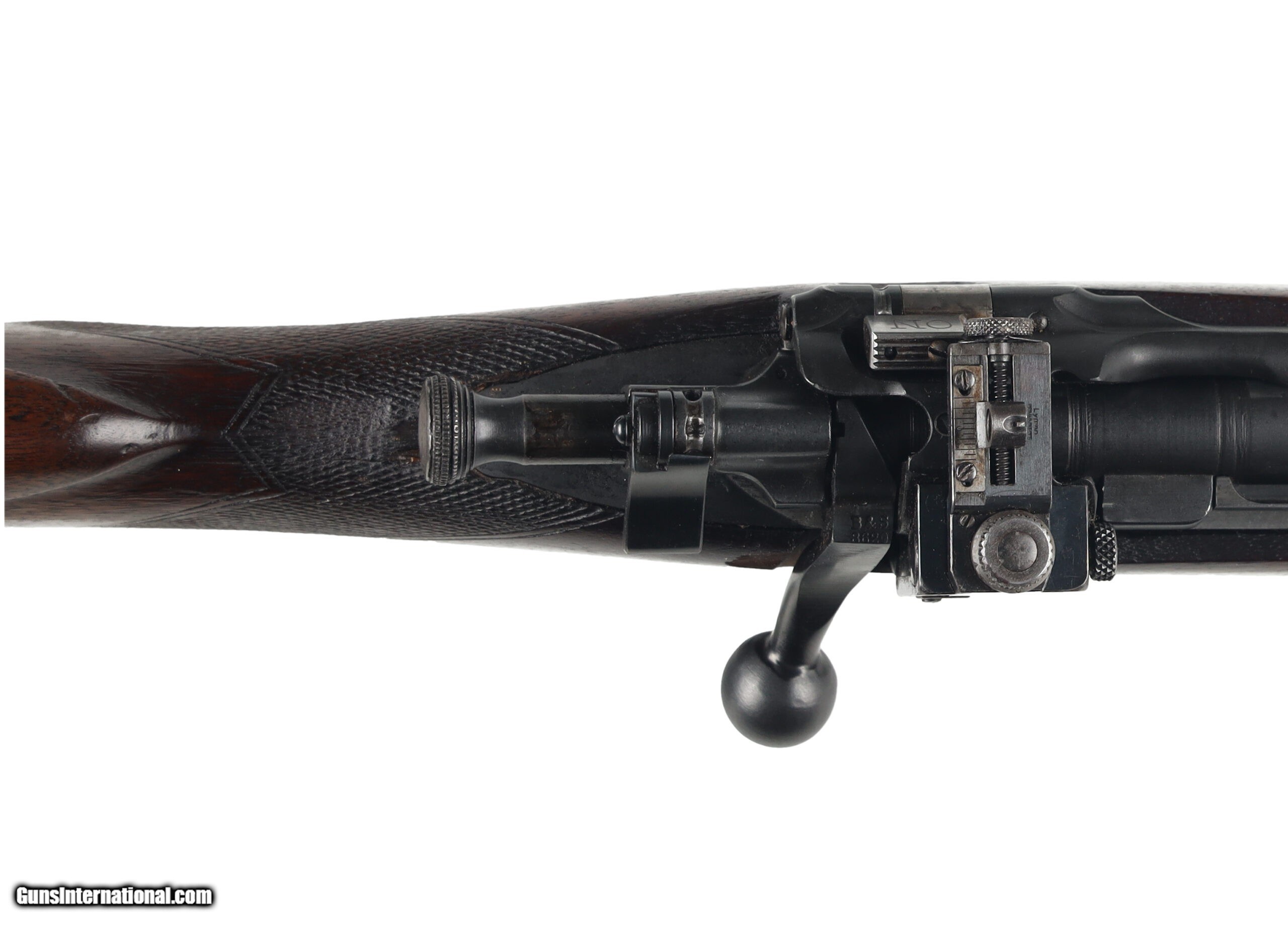 Description: This sporterised 1903 Springfield rifle is in good mechanical condition, with smooth function to the action and strong rifling in the bore. Both receiver bridges have been drilled for scope mounts and the barrel has also been drilled for a Unertl base. The stock however, has a formerly repaired crack forming behind the tang, and there is a wood screw hidden under the slide of the Lyman receiver sight. Manufactured in: USA Hand: Right Hand Metal Finish: Original Barrel Length: 24" Barrel Condition: Good Stock Finish: Restocked Stock Condition: Cracked Type of Butt: Checkered Steel Plate Grip: Pistol Forend: Checkered Schnabel Manufacturer: Springfield Model: 1903 Custom Caliber Info: 30-06 Condition: Preowned Metal Condition: Very Good Action: Bolt Action Triggers: Single Fore End: Checkered Schnabel LOP: 13 1/2 Finish: Original Weight: 7.7 lbs Case: NONE Price: $1,200.00 Contact Seller |