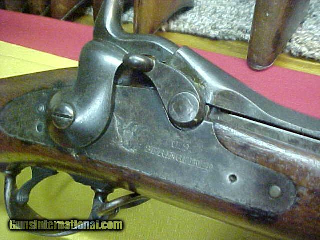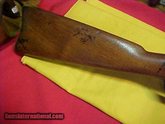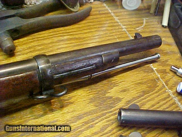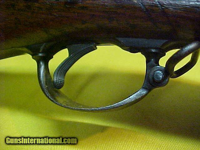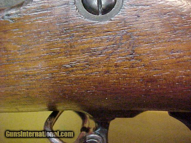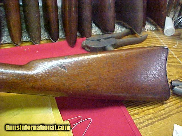 Description: #1411 Springfield 1884 “Trapdoor Rifle”, 45/70 with Fine bright bore (8+ on a scale of 10) and tight gas seal at the breech block, 328XXX (1887 manufacture). VG++ wood with minor staining and a partial dim cartouche. Cleaning rod is bright metal and looks to be eithercleaned of is a correct style reproduction. It has all the correct features for the 1884 model including the Buffington rear sight. These rugged and very reliable Trapdoor Springfields were the mainstay military long arm from the end of the Civil War up to the mid-1890s when they were finally phased out by the 1892 Springfield-Krag bolt action repeater. Even then, they were used as secondary defense weapons in the Spanish-American War and even used as training weapons as late as World War 1. To this day, they are still great shooting and very accurate rifles with a very hard-hitting black-powder round. They very rarely have mechanical problems, and on the rare chance that they do break some small part in the action, most parts are very easily obtained from several parts dealers. Consequently, they make a fine rifle for the beginning shooter of Big-Bore black powder competitions. $845 SOLD Antique: Yes |