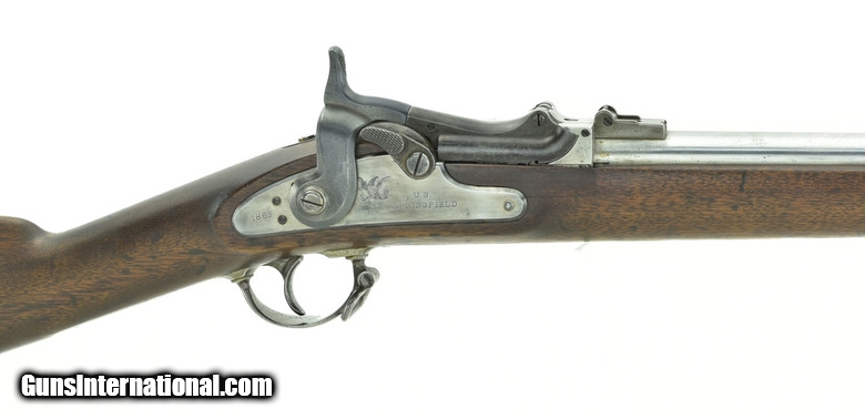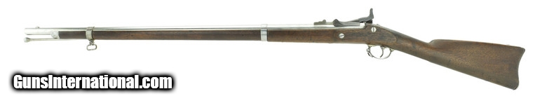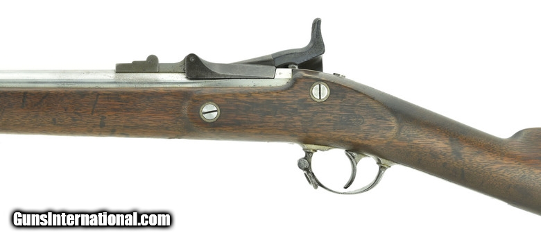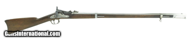 Description: 1865 First Allin Conversion 2-Band Springfield Trapdoor .58 RF caliber rifle. First Allin Conversion 1865 2-band Springfield Trapdoor rifle, that looks to have been converted to a cadet model. About 270 out of 5000 First Allin Conversation rifles were cutdown and made into cadet rifles. Barrel is armory bright, bore has areas of pitting. Lock plate is dated 1863. Breech block and hammer are still in original black. Wood is great and has two cartouche stamps one is “ESA” and the other is a faint “SWP”, this would have been added after the alteration from the 3-band to 2-band. Barrel is 36” to the breech face. This is a very nice and rare rifle that shows evidence of being altered at Springfield Armory! Hard to find. SOLD Antique: Yes |