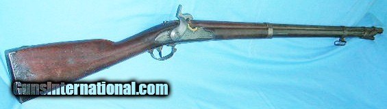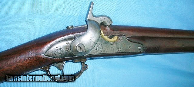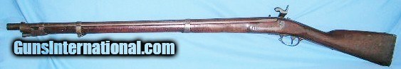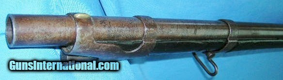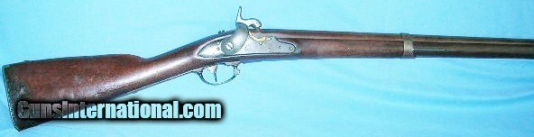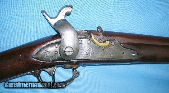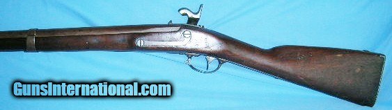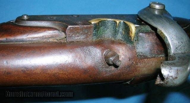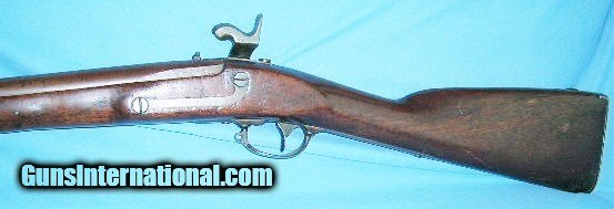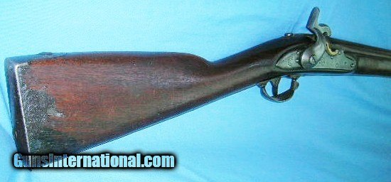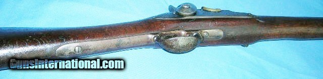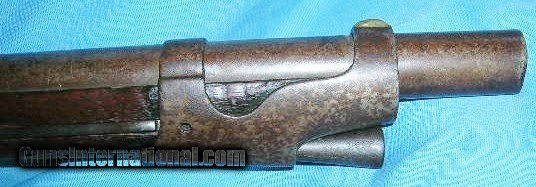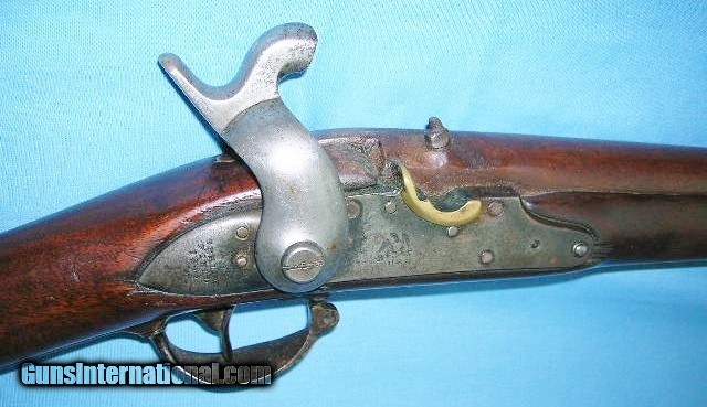 Description: ANTIQUE MODEL 1840 FLINTLOCK MUSKET CONVERTED TO PERCUSSION 1849-1851 MEXICAN & CIVIL WAR USE. SHORTENED 33" BARREL, .69 CALIBER RIFLED BORE, PARTIAL "VP" PROOF STILL VISABLE. HAMMER & LOCKPLATE HAVE AGED TO A GRAY PATINA, THE FRONT SIGHT BLADE AND PART OF THE BRASS PAN SHOW A LIGHT OCHRE COLOR WHILE THE REMAINING METAL SURFACES ARE A GRAY-BROWN COLOR WITH STAINS AND SMALL SPOTS OF LIGHT PITTING. PROPERLY MARKED LOCKPLATE HAS 1843 DATE. BUTTPLATE WITH "U.S." STAMP. ORIGINAL ALTERED WALNUT "ARTILLARY" TYPE STOCK RATES ABOUT GOOD, FEW MINOR SMALL TIGHT CRACKS, CHIPS, DINGS & HANDLING MARKS TYPICAL OF A MILITARY SERVICE WEAPON. FAINT REMNANTS OF CARTOUCHE ON LEFT STOCK FLAT. INTERESTING WEAPON OVERALL THAT LIKELY SAW SERVICE IN THE MEXICAN or CIVIL WARS, AS PICTURED. LOCK IS FULLY FUNCTIONAL WITH 2 CLICK HAMMER. $50.00 S&H DIRECT TO BUYER EAST OF THE BIG RIVER $55.00 BEYOND. INSURANCE AT POSTAL RATES IF WANTED. SEE ALL "ESTATE ANTIQUES" LISTINGS FOR MORE GOOD STUFF AT SENSIBLE PRICES FROM OLD TIME COLLECTIONS. SOLD Antique: Yes Manufacturer: SPRINGFIELD Model: 1840 Barrel Length: 33 Caliber Info: .69 Bore: GOOD Condition: GOOD AS PICTURED Metal Condition: AGED Wood Condition: AS PICTURED Bore Condition: VISIBLE RIFLING Barrel Type: ROUND Action: WORKING Stock: WALNUT Finish: AGED |