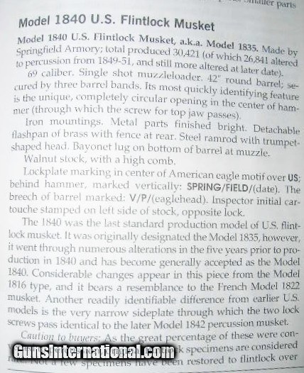 * Antique 1840 US SPRINGFIELD FLINTLOCK PERCUSSION MUSKET CONVERSION