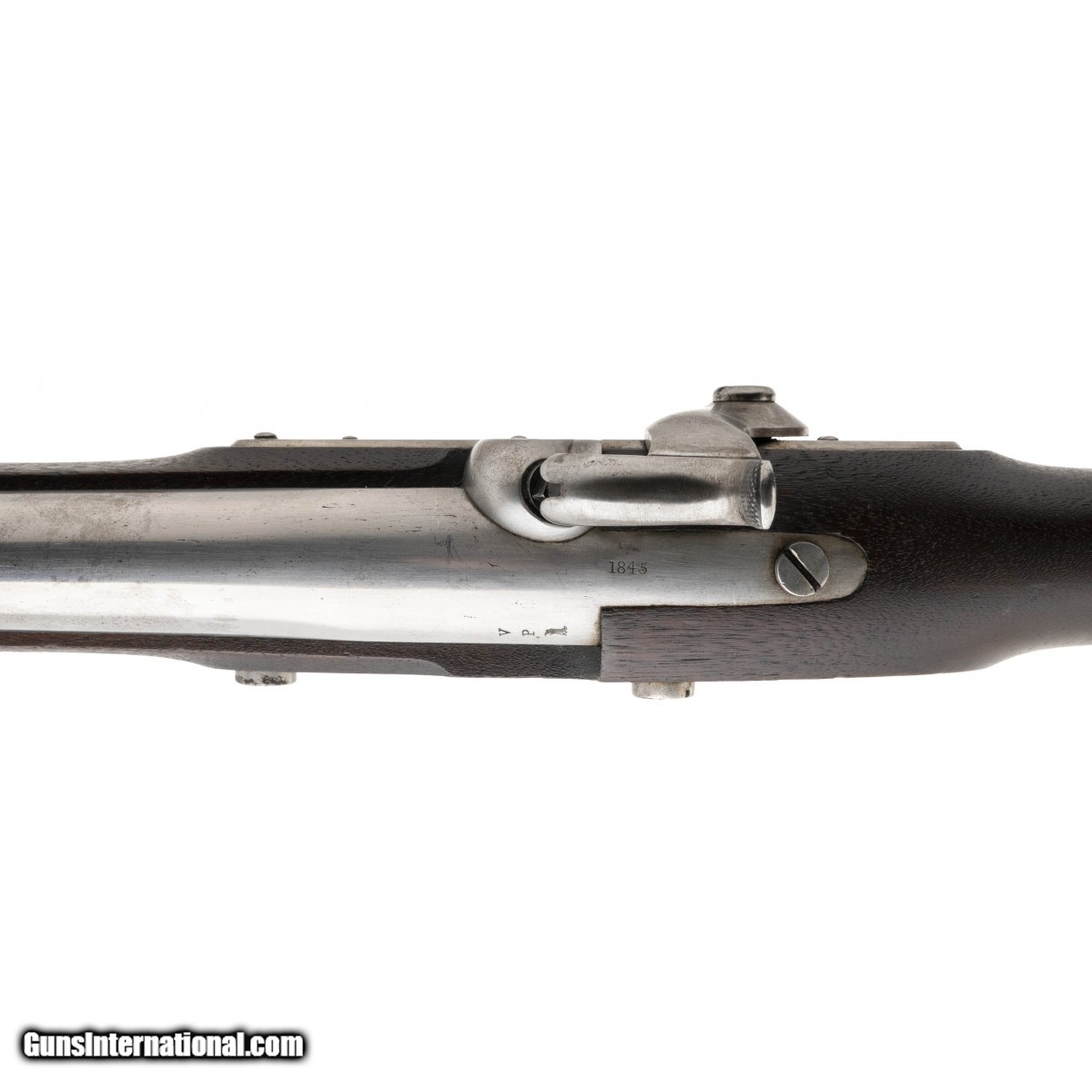 Description: " Gorgeous U.S. Springfield Model 1842 in excellent condition. Metal is in original Armory Bright finish, lock and barrel are dated 1845. Stock is excellent with areas of raised grain and handsome cartouches noted. Left side of barrel is marked ""NJ"". Hard musket to improve on. SOLD Antique: Yes |