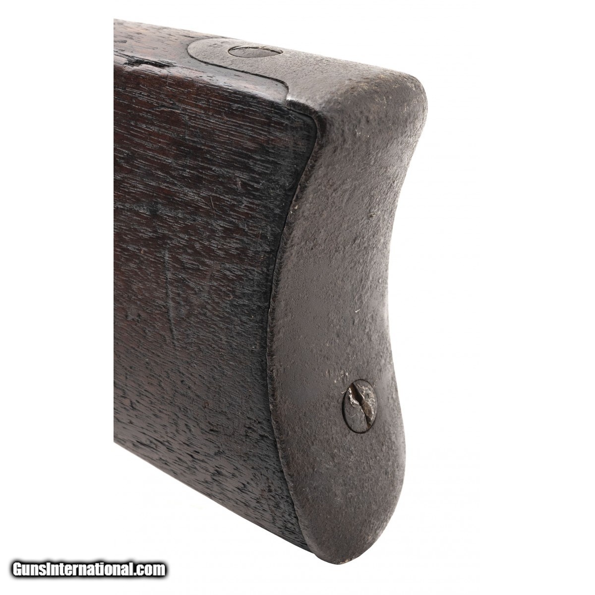 Description: " NSN, circa 1859, .58 caliber, 40"" round barrel. Barrel and other iron parts are a dark grey patina with scattered pin-prick oxidation visible. Lock plate is marked ""US/SPRINGFIELD, ""Eagle Motif"" on tape primer lid compartment. Rear of lock plate has ""1859"". Walnut stock has expected gouges, nicks and scratches. Wood loss is visible between hammer and barrel tang, this indicates a lot of firing. The bore shows faint rifling visible, validating this rifles use, possibly during the early battles of the Civil War! SOLD Antique: Yes |