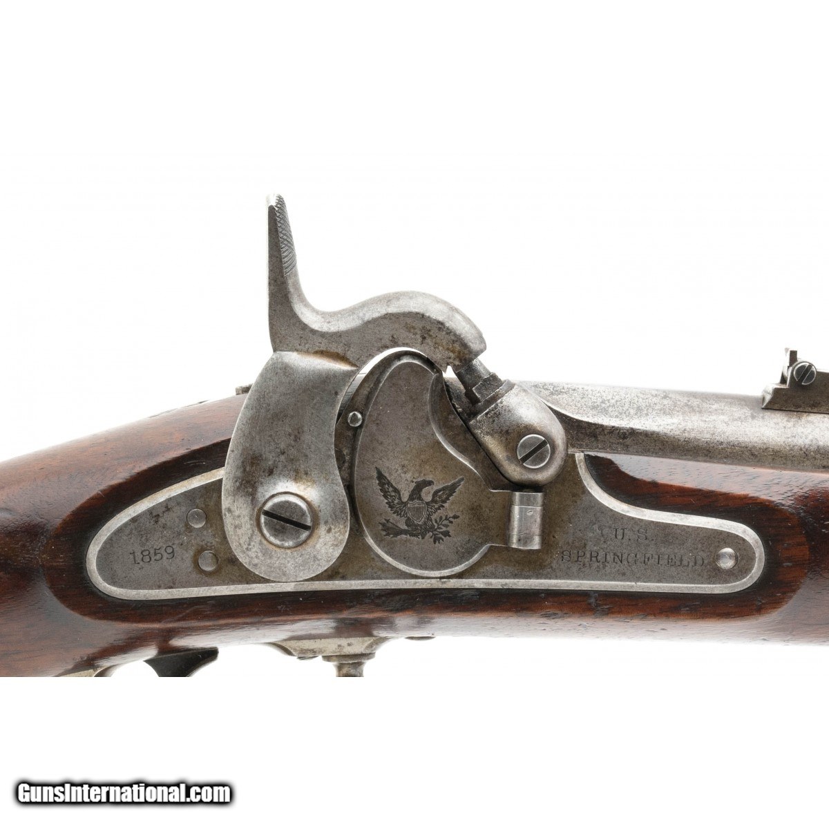 NSN, made in 1859, .58 caliber, 40"" round proofed barrel. First martial long arm to fire the .58 Minie ball with the Maynard tape primer system. Barrel and other iron furniture are a smooth light grey patina, lock plate is dated 1859. Stock is in very good plus condition with minor nicks, Action functions correctly, Bore is bright with some frosting visible in the grooves.