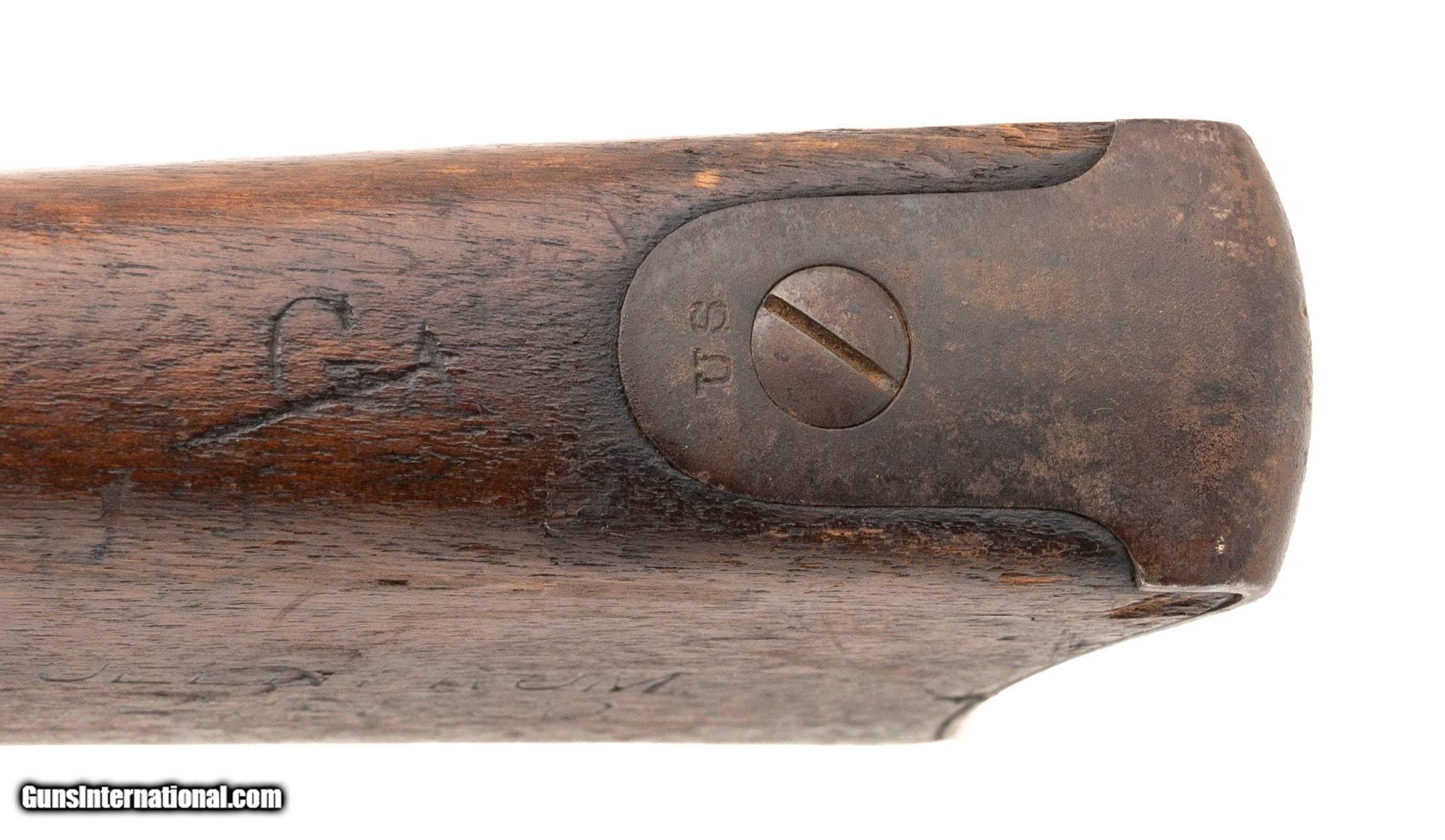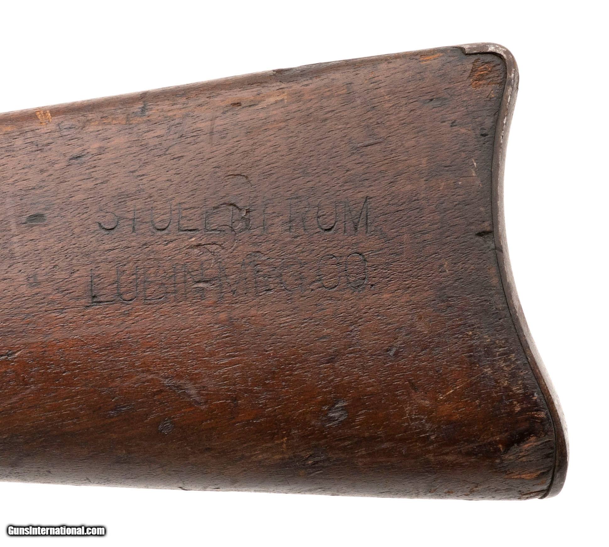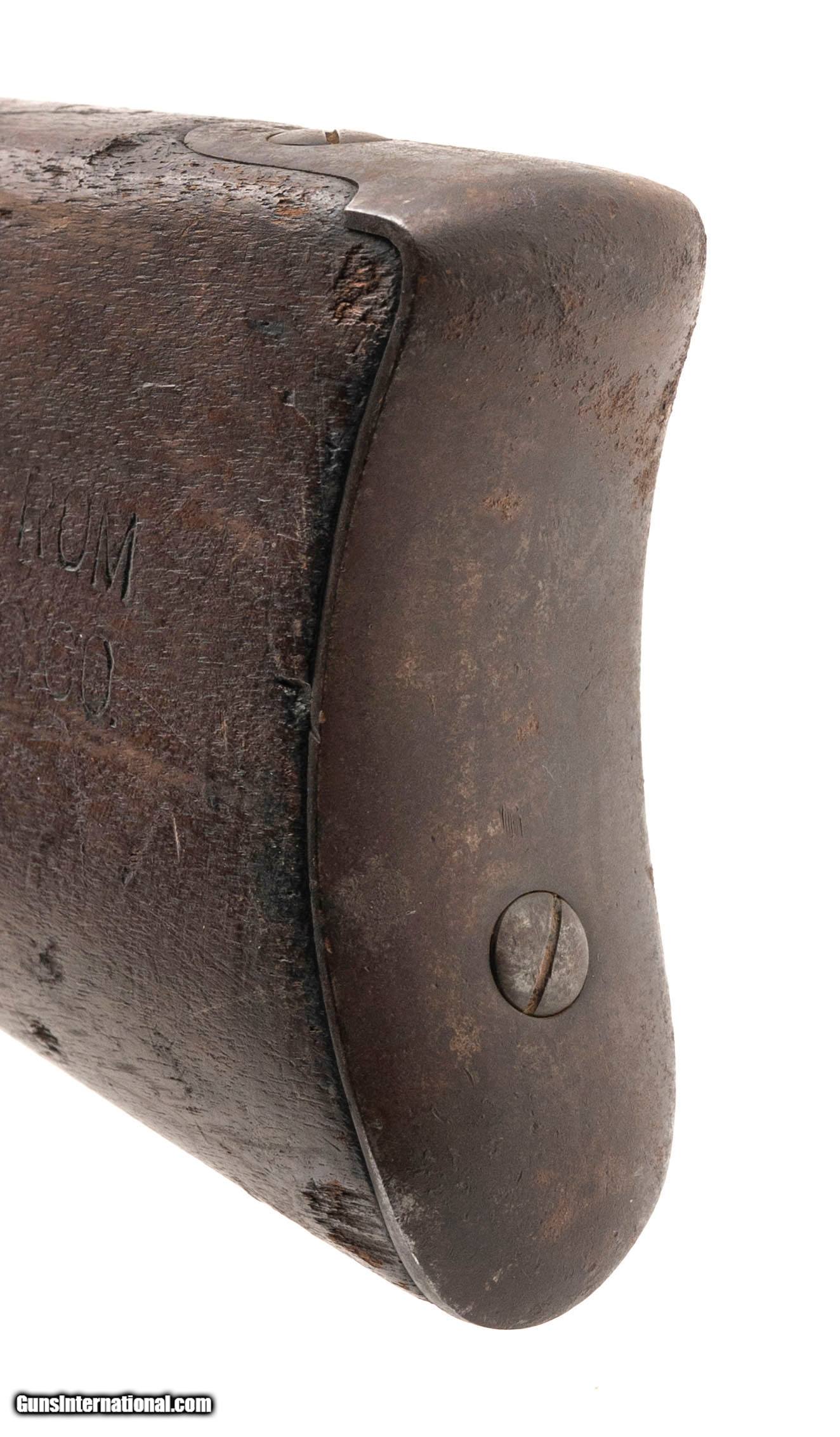 "Serial No. 431435, made in 1889, .45-70, 32 ½" round barrel. Barrel finish has aged to a smooth brown/grey patina with faint traces of original blue. Breech block and lock plate show scattered surface oxidation; mottled case coloring is still visible in areas. Stock shows honest nicks, dings, and scratches consistent with field use. Action functions correctly. Originally developed after the Civil War, the Model 1884 was the final major iteration of the U.S. “trapdoor" single-shot rifle series. It featured the Buffington rear sight and continued in service into the Spanish-American War era with National Guard and reserve units.
