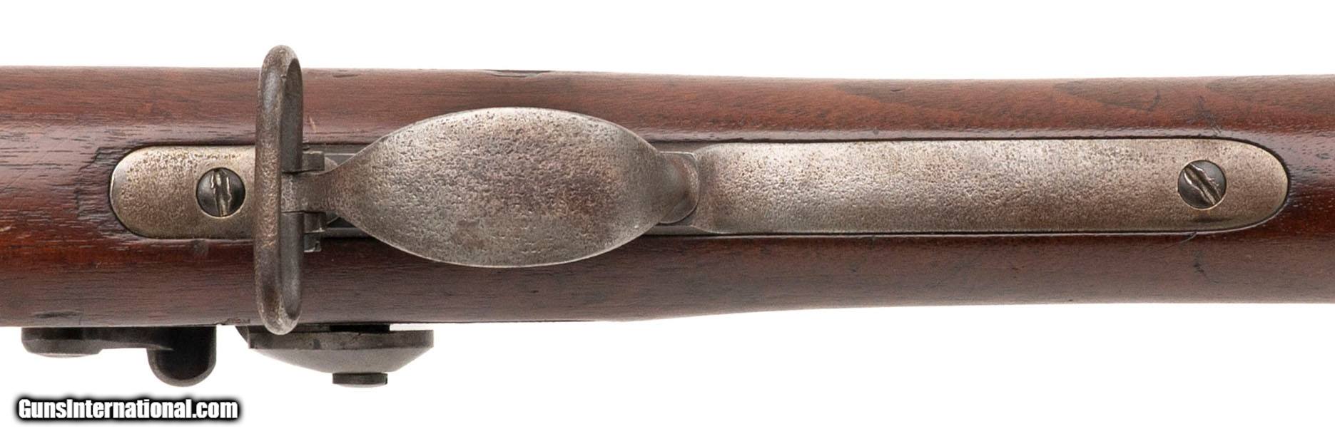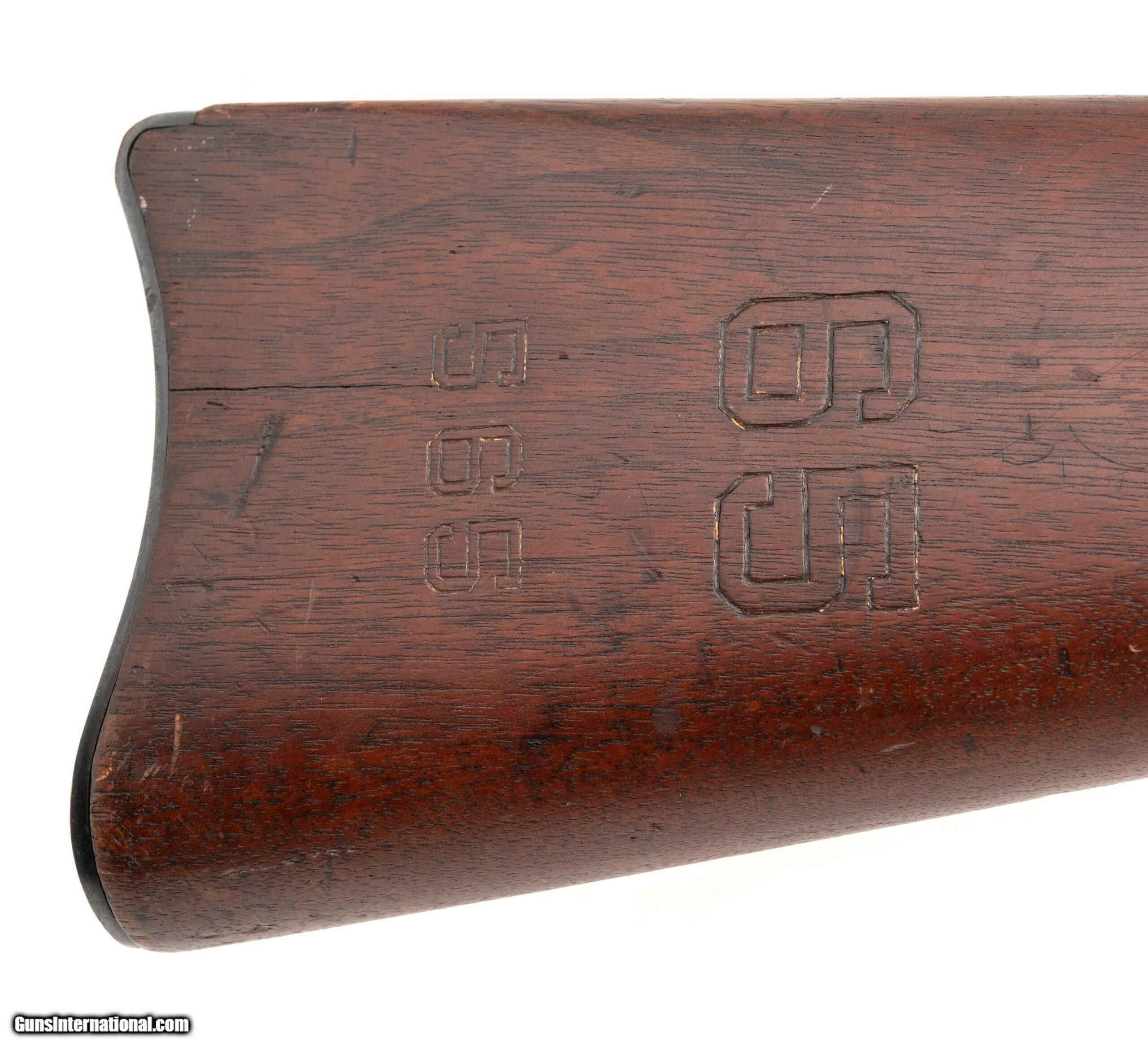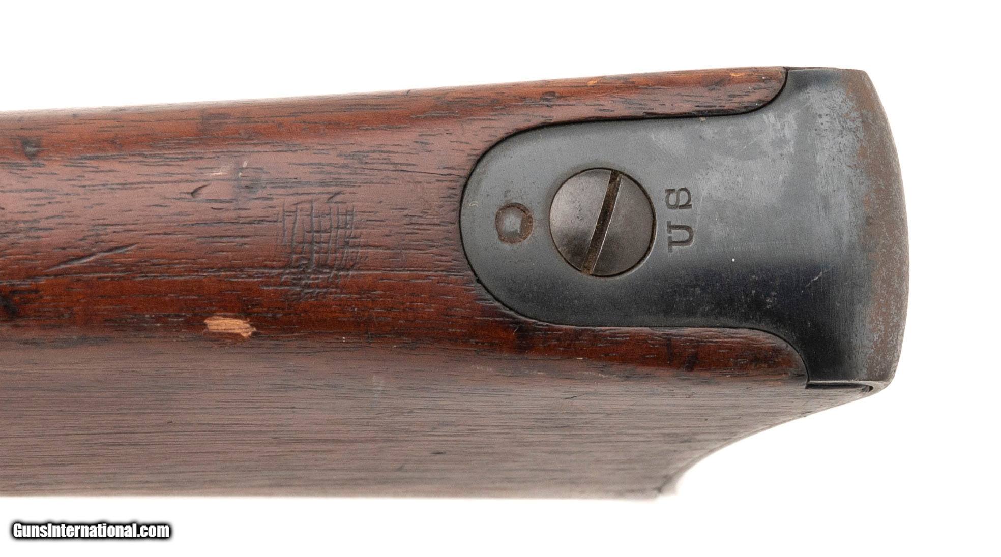 "Serial No. 520537, manufactured mid-1891, chambered in .45-70 Government, with a 32 ½" round barrel. This late-production Model 1888 features a consistent light grey patina across all metal components. Factory markings on the barrel, breechblock, and lock plate remain clear and sharp. The stock is in very good condition, with minimal handling impressions noted and a crisply stamped 1891 cartouche on the left side. The stock also bears an additional rack marking: ""65/565. Mechanically, the action is tight and functions properly, retaining the robust reliability typical of Springfield’s final Trapdoor iteration. Equipped with the distinctive integral ramrod bayonet, the Model 1888 represents the last refinement of the Trapdoor series.