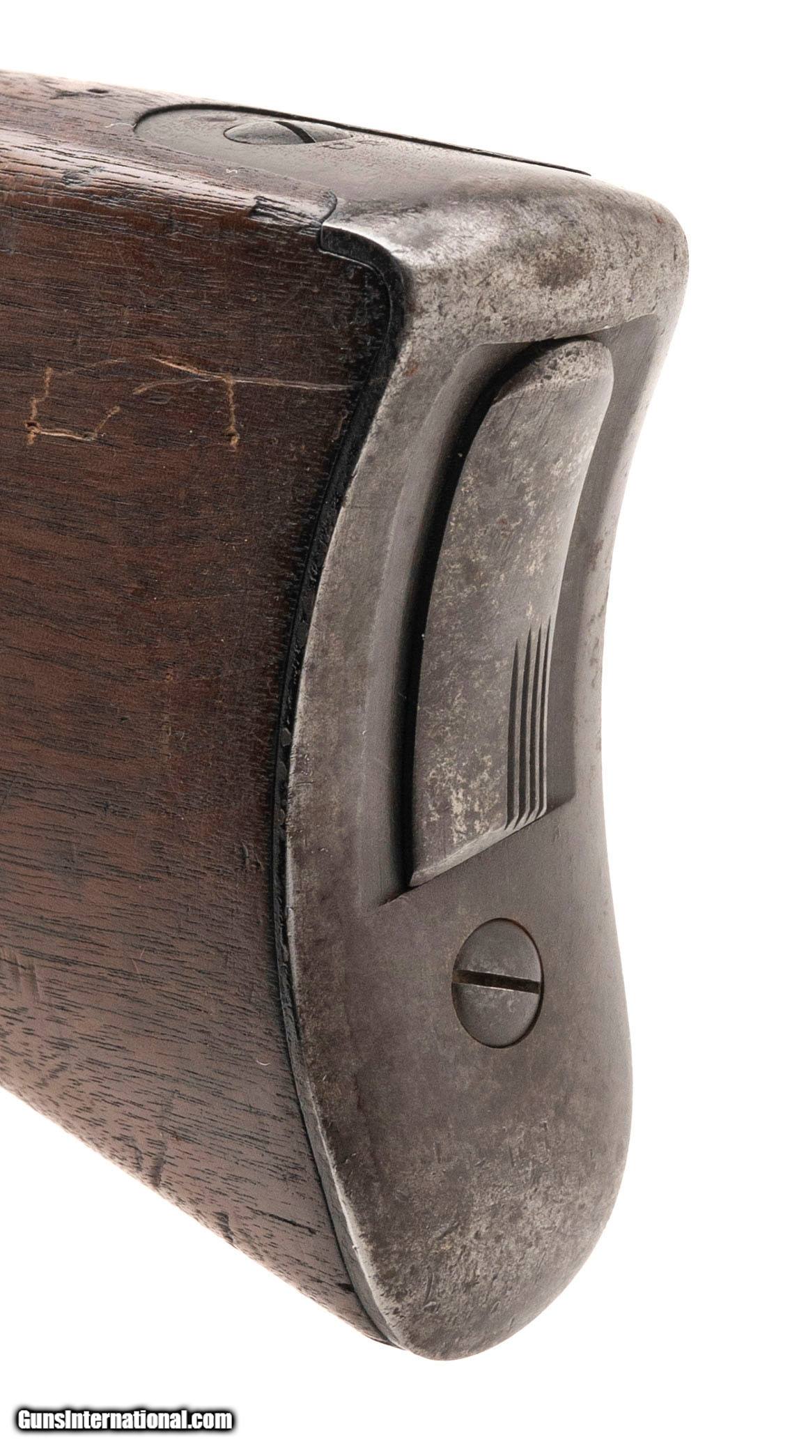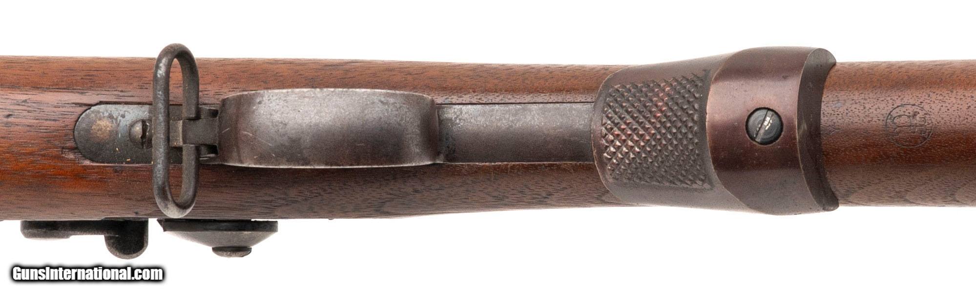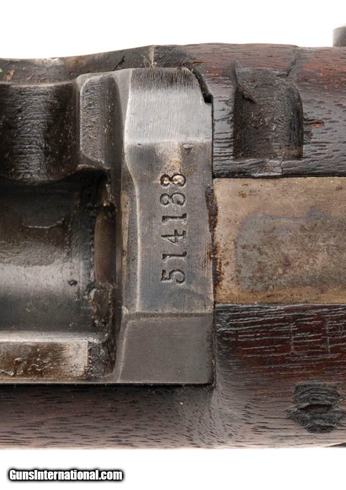 "Serial No. 514133, manufactured in 1891, chambered in .45-70 Government, with a 32 ½" round barrel. This rifle features the final iteration of the Springfield “trapdoor" series, incorporating the distinctive integral ramrod bayonet—a dual-purpose design aimed at simplifying field gear for infantry troops. The barrel has developed a smooth brown patina from age, while the breech and lock plate retain traces of original blue with vibrant case coloring visible within the breech. The rifle is equipped with a detachable pistol grip and original front sight protector. The walnut stock remains in very good condition, bearing a crisp 1891 inspection cartouche on the left wrist. Action is mechanically sound and functions correctly. This is a well-preserved example of a transitional U.S. military rifle that bridged the gap between single-shot arms and the advent of repeating service rifles.