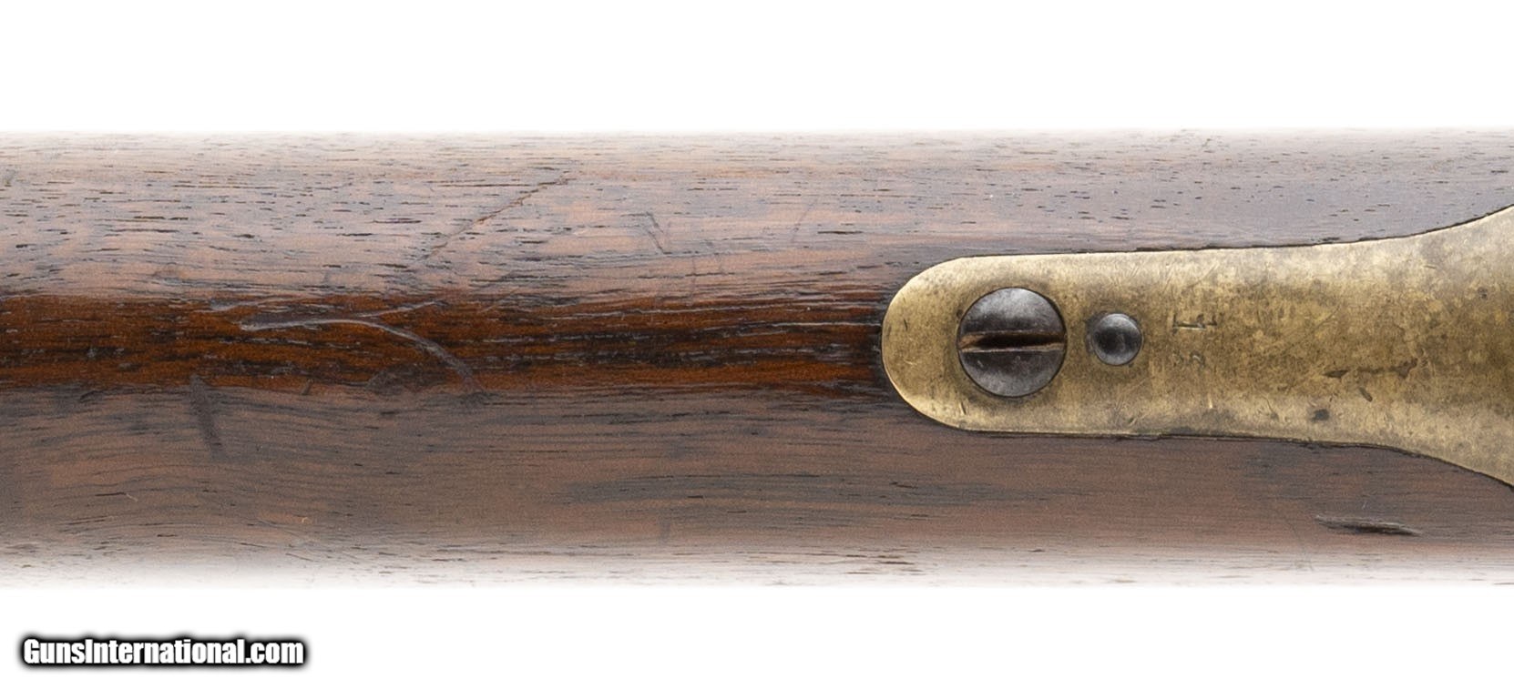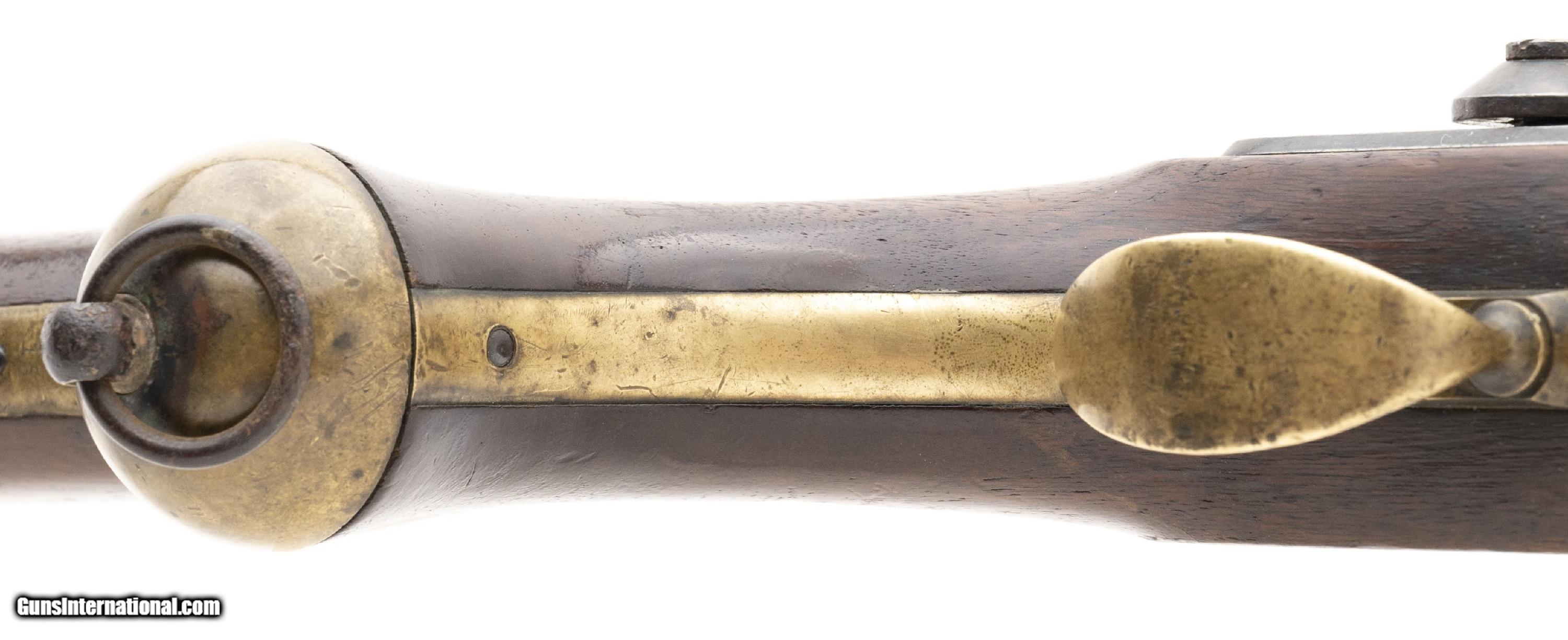 Description: "Dated 1855. 58 caliber with a 12" barrel" Metal has a dark gray patina. Wood is very good. Brass is nicely patinated. This gun is all original with the exception of the door with the eagle over the Maynard tape primer is a very cleverly aged replacement. Bore still has rifling where over half of these guns were bored out to smooth bore. Very nice example of a Springfield 1855 Pistol Carbine. (DALLAS LOCATION) Antique: Yes Price: $5,950.00 Contact Seller |