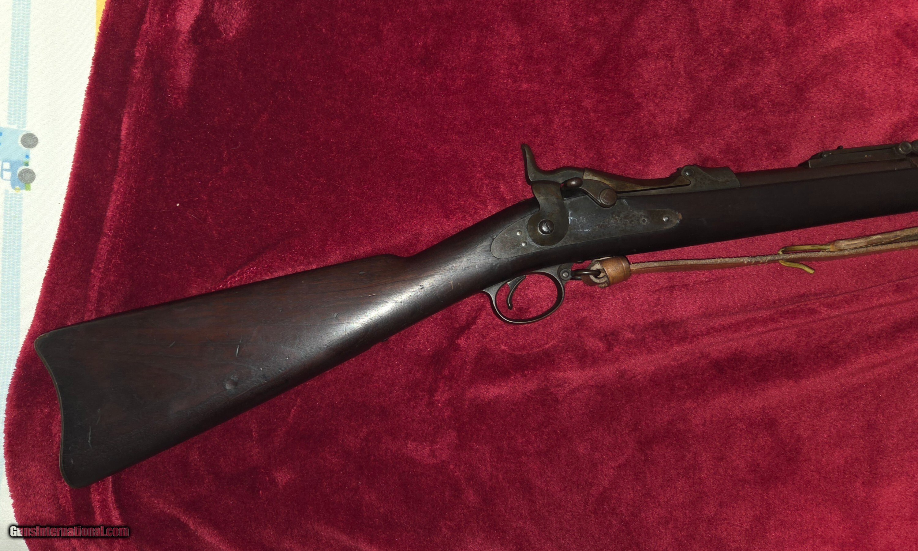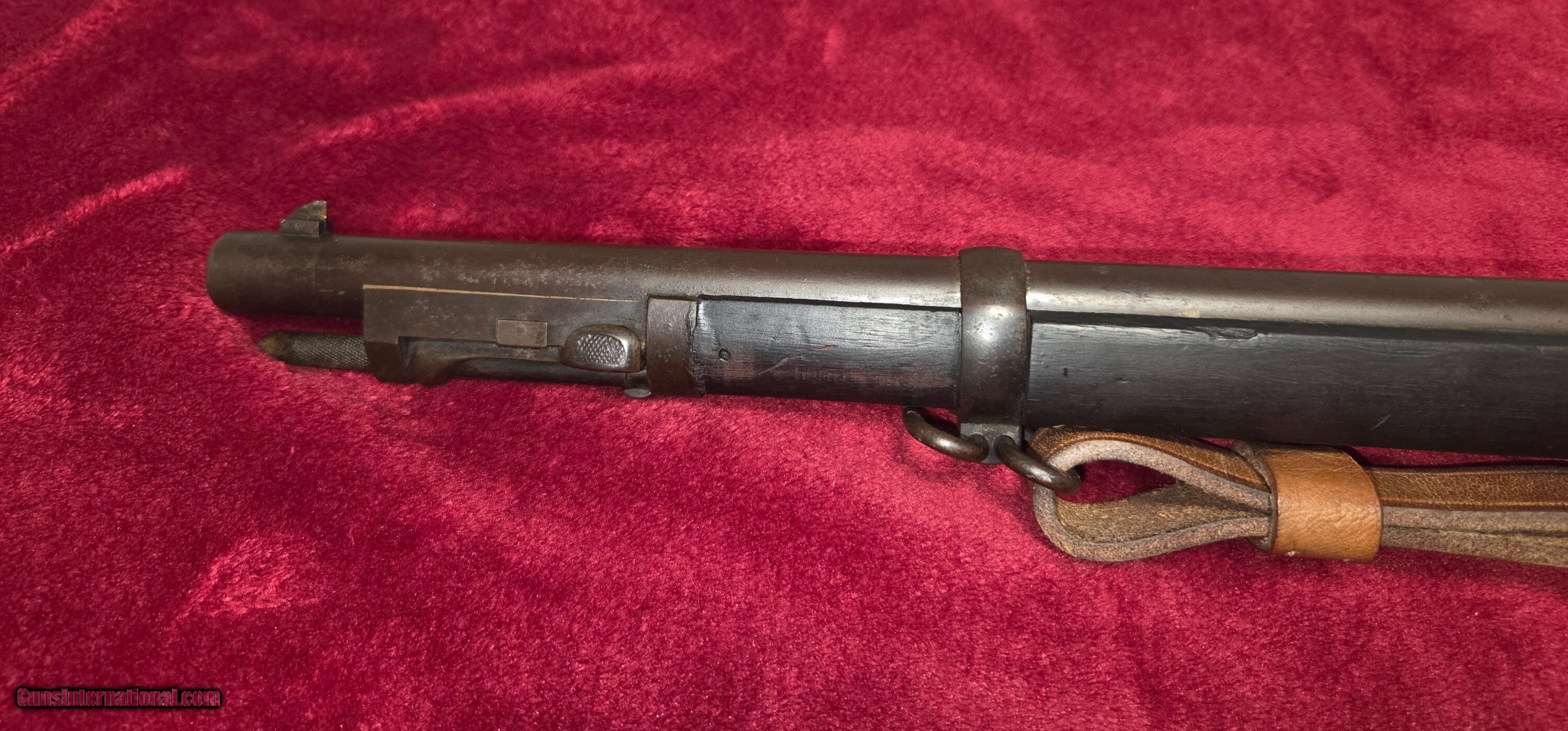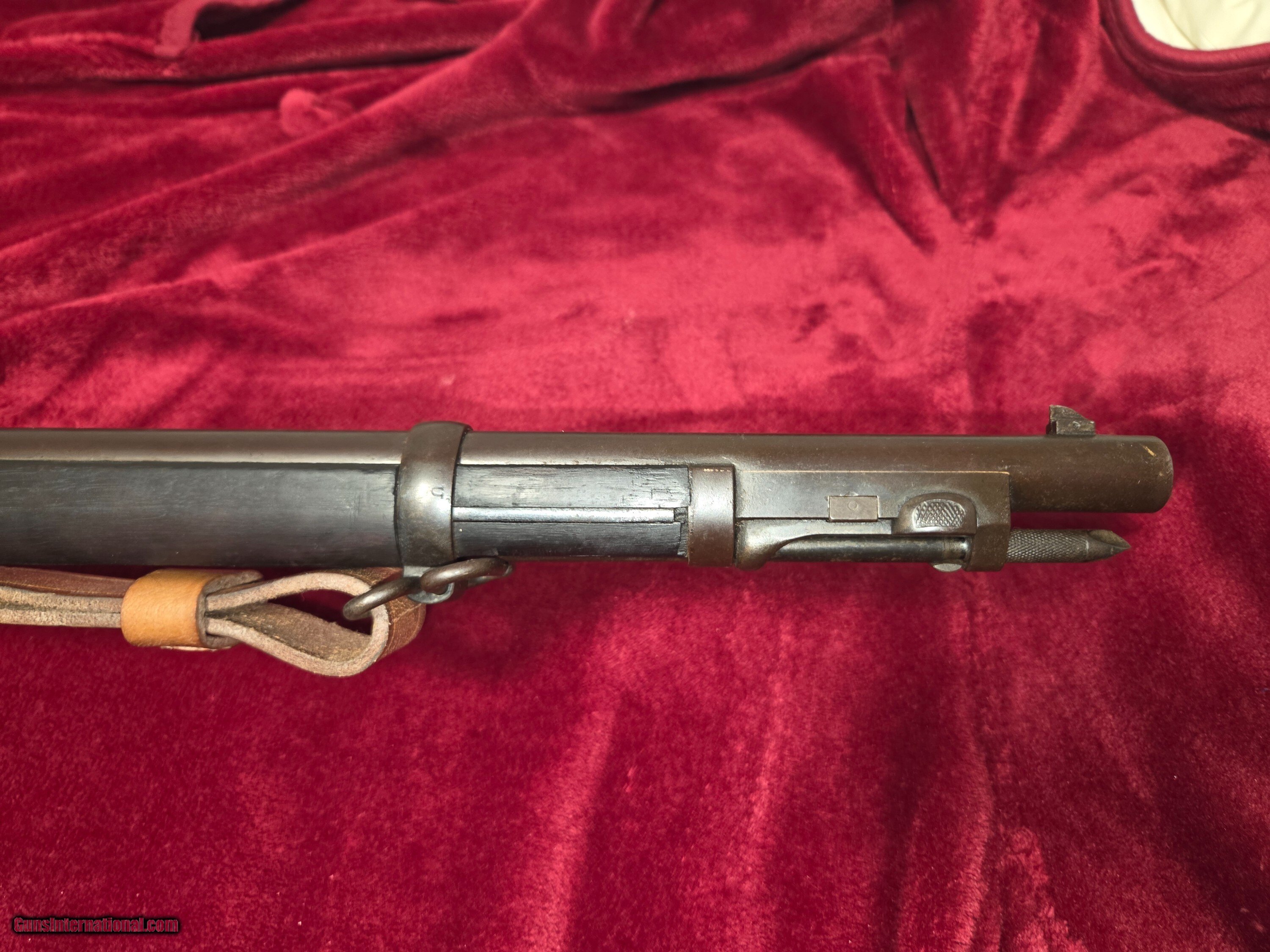 Description: For sale is an 1888 Ram Rod Bayonet Rifle. The rifle is in VG condition with a fine stock with no cracks or damage, a bright and sharp bore and no rust or pitting. All metal surfaces have turned plumb with age with dried grease from orginal storage still present. The ram rod bayonet works and locks in both positions. Antique: Yes Rifle Caliber: .45-70 Government Manufacturer: Springfield Model: 1888 Condition: VG Metal Condition: VG Wood Condition: VG Bore Condition: Excellent Price: $900.00 Shipping: $65.00 Buy Now Contact Seller |
