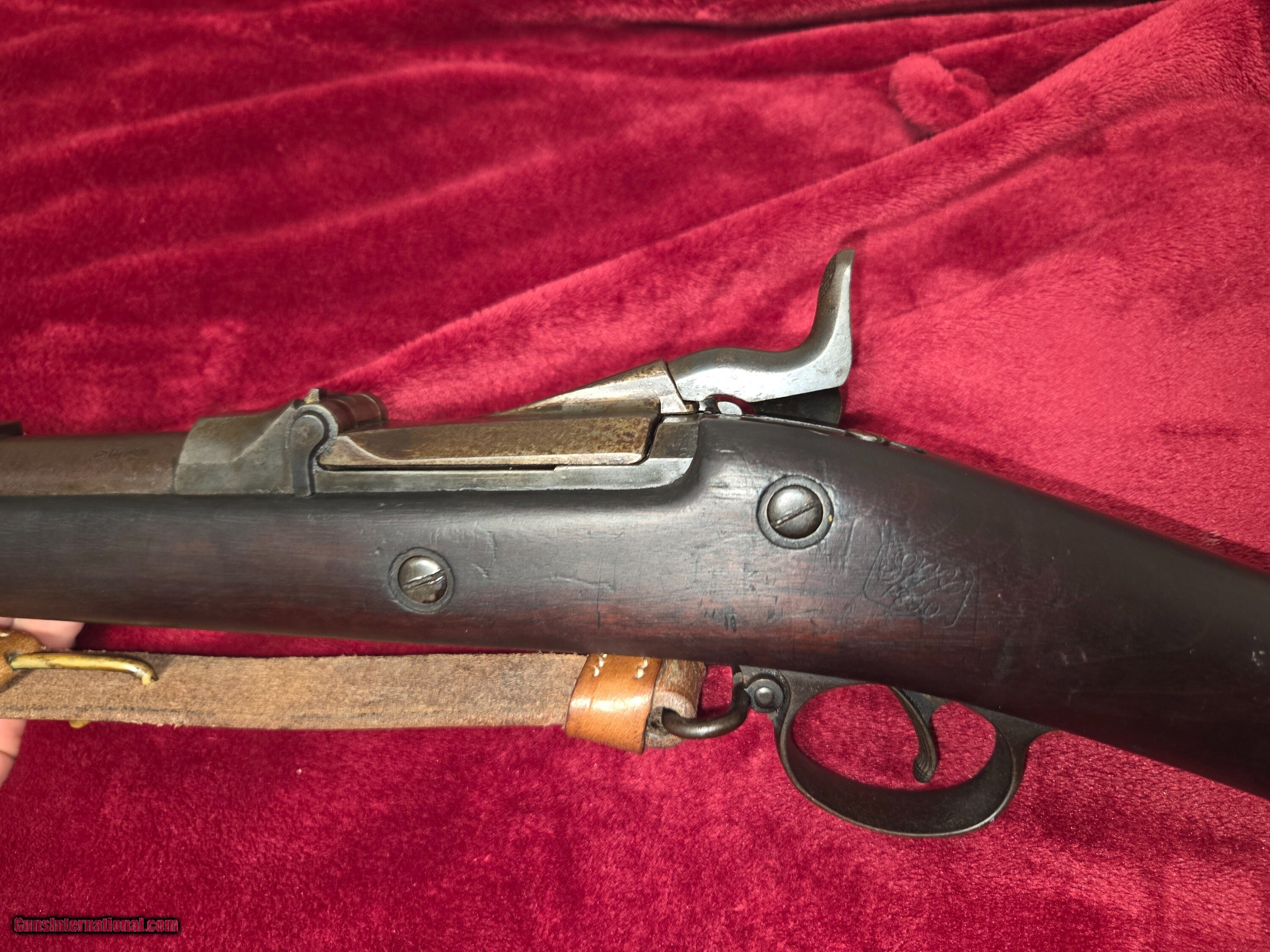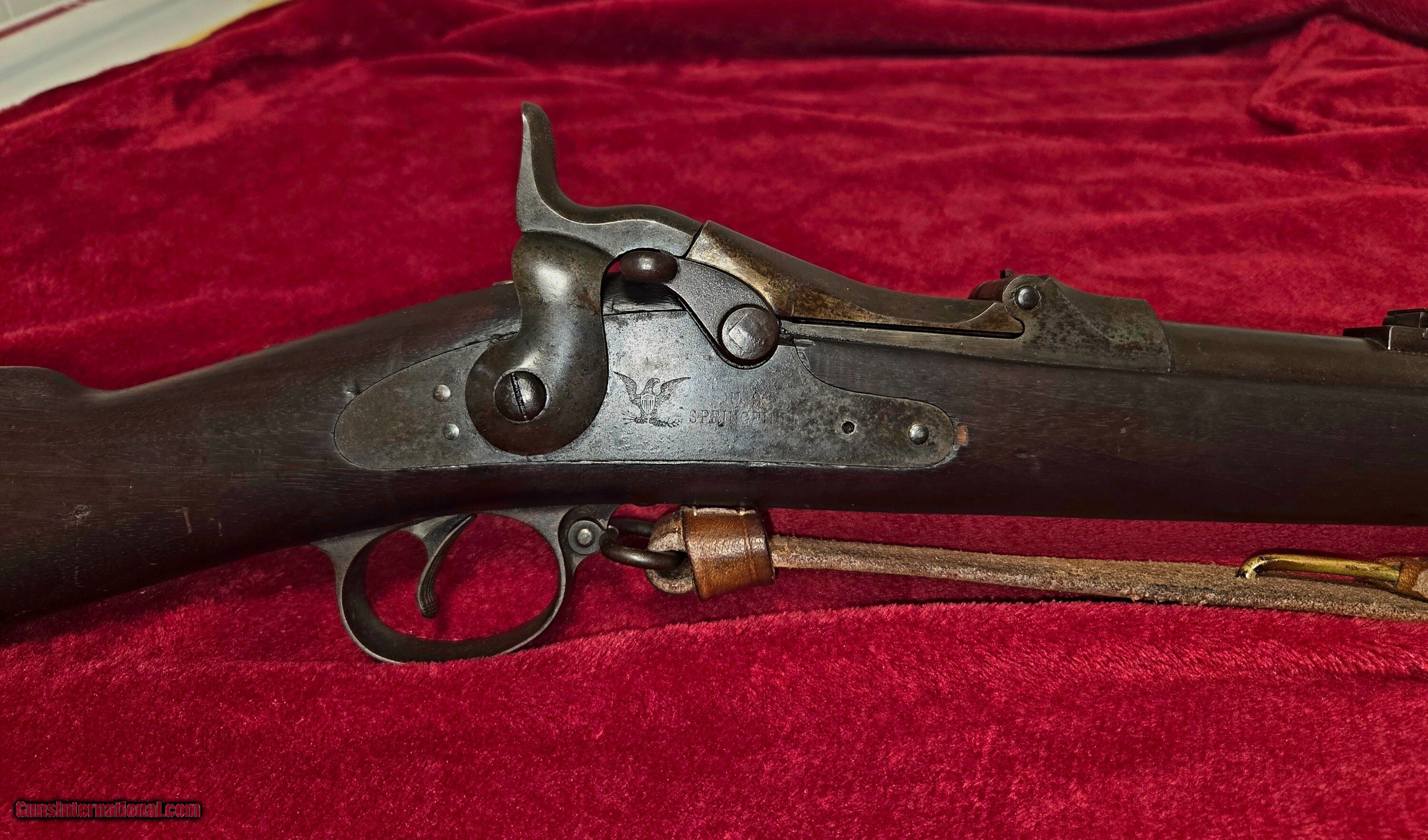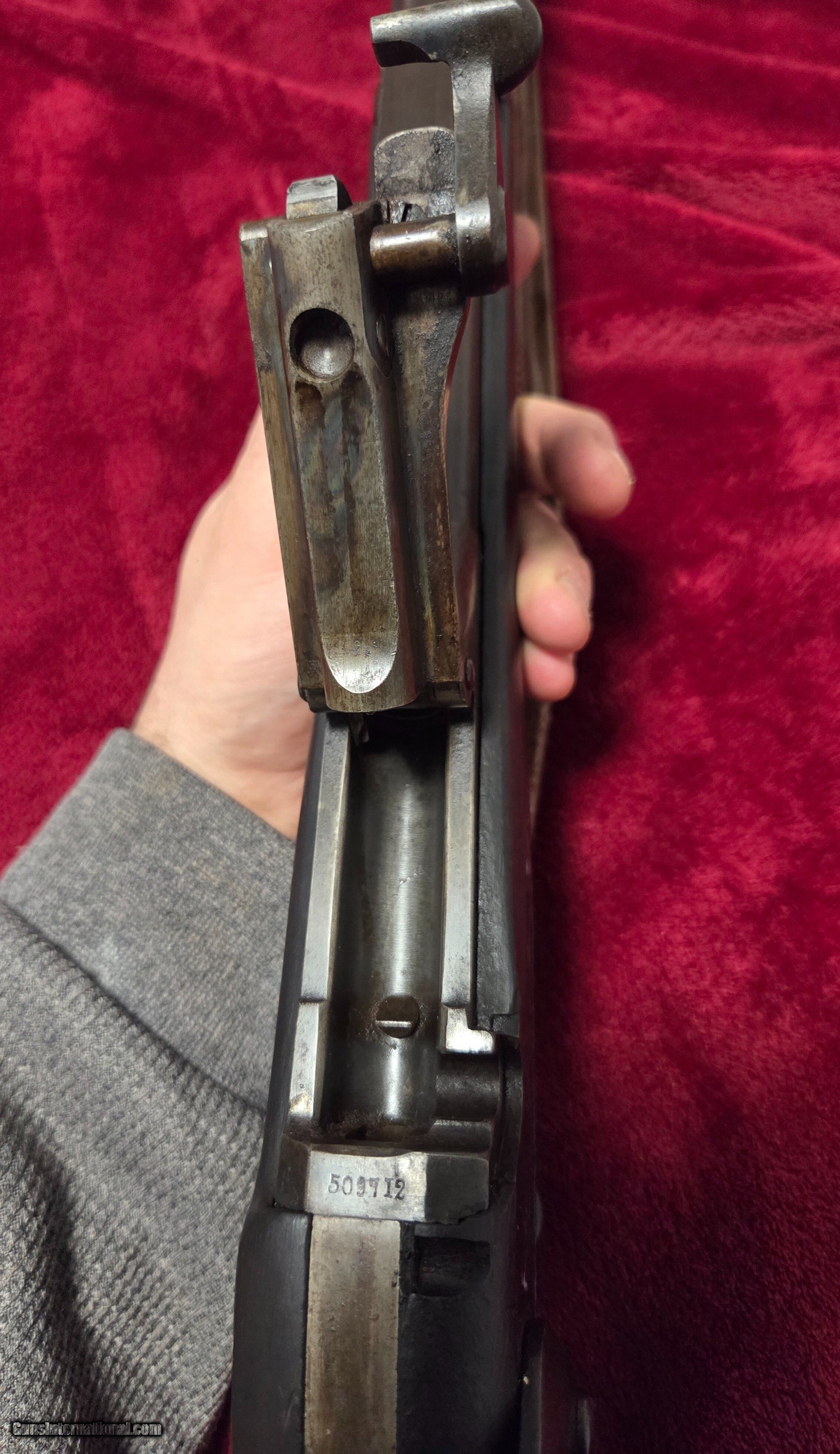 Description: For sale is an 1888 Ram Rod Bayonet Rifle. The rifle is in VG condition with a fine stock with no cracks or damage, a bright and sharp bore and no rust or pitting. All metal surfaces have turned plumb with age with dried grease from orginal storage still present. The ram rod bayonet works and locks in both positions. Antique: Yes Rifle Caliber: .45-70 Government Manufacturer: Springfield Model: 1888 Condition: VG Metal Condition: VG Wood Condition: VG Bore Condition: Excellent Price: $900.00 Shipping: $65.00 Buy Now Contact Seller |