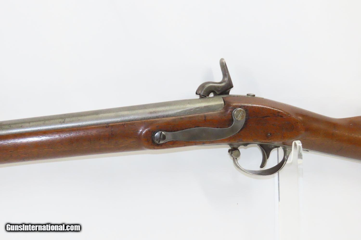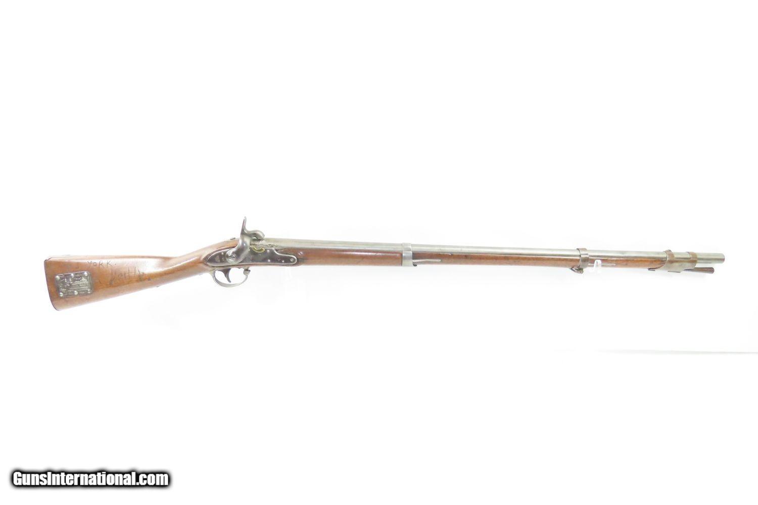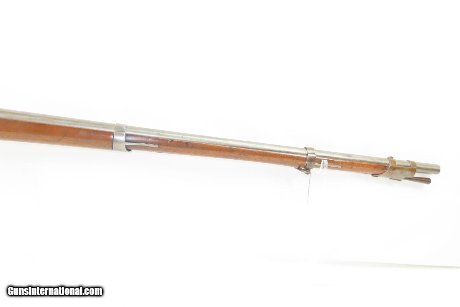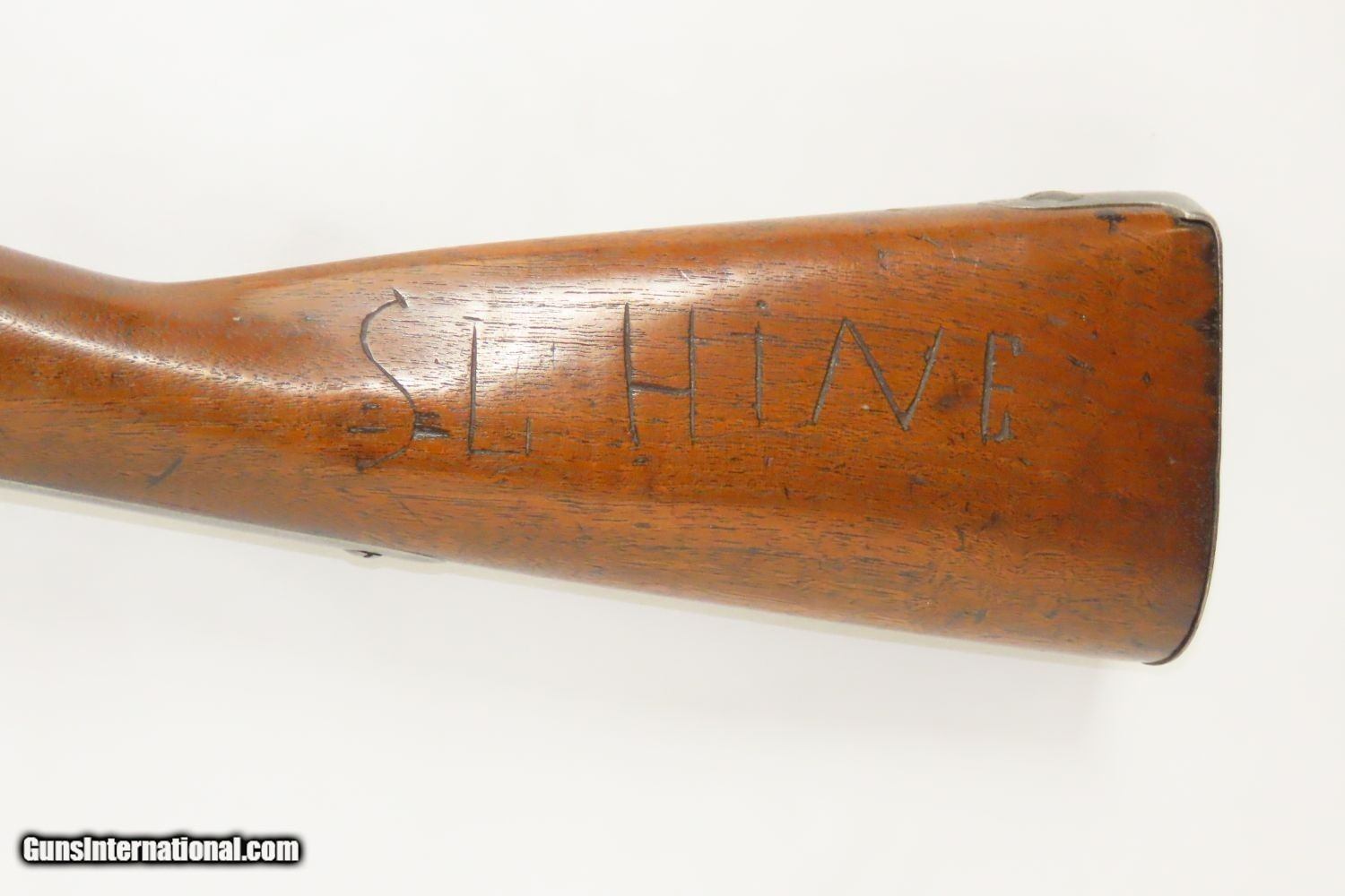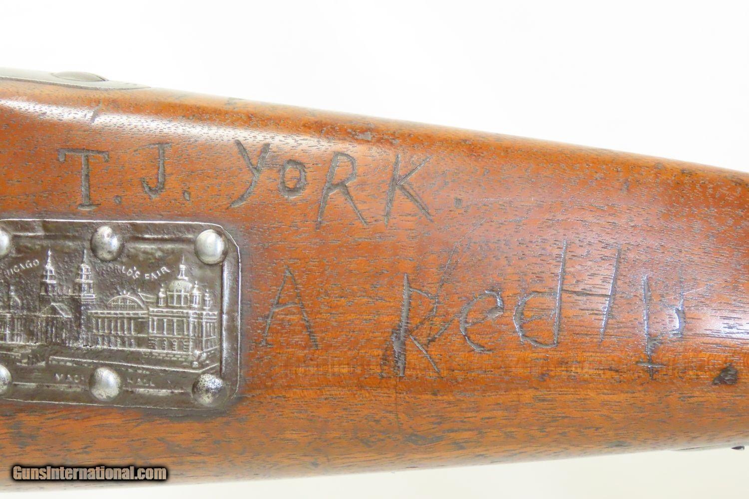 Description: Antique U.S. SPRINGFIELD ARMORY M1816 Percussion “CONE” Conversion Musket With CHICAGO WORLD’S FAIR Plaque & Graffiti Here we present an antique Springfield U.S. Model 1816 Conversion Musket, manufactured at the armory at Springfield, Massachusetts, circa 1836. This one has an interesting old placard regarding the Chicago World’s Fair depicting Machinery Hall of 1893, as well as various names carved into the stock. Both sides of the butt stock are hand carved with “SL HINE” on the left and “T.J. YORK” and “A ReeHb” on the right. There is a very good chance that these were not simply prior owners but various users of this musket though it is difficult to be sure without full names, but matches to last names and initials can be made in the roles from the Civil War. The advent of the Model 1842 Musket made the M1816 obsolete, but not unserviceable. Eventually, most made their way to storehouses and armories. Beginning in 1848, when more than 700,000 of all types of flintlock muskets were reported in storage, the most serviceable were converted to percussion ignition. Three types of alteration were performed. All alterations involved grinding the flash pan down and replacing the hammer. This Model 1816 flintlock musket has been converted to percussion using the Belgian Style Alteration method, more commonly known as the “Cone Type” conversion. All external lock parts were removed with the screw hole plugged, the pan ground flush with lock plate (leaving the remnants intact) and the small existing cavity in the pan filled with brass to give it a level or squared off profile along the top. The vent hole of the barrel was plugged with a nipple screwed into the threaded receptacle at the top of the barrel, set off center towards the lock side. Then, adding the distinctive arsenal, military hammer. The overall condition is very good. The action is strong. Good smooth bore. The walnut stock is solid overall. There is an old chip missing just in front of the trigger guard though which you can see the ramrod. “US” stamped lock and buttplate. The lock is dated “1835” while the barrel reads “1836”. Here is a wonderful musket with some interesting features! Own the original! This is a legitimate antique and not a reproduction. Barrel is 36-1/2 inches. Caliber: .69 Percussion Overall condition as seen in photos. Very Fast. Very Safe. FREE SHIPPING WORLDWIDE. Delivered directly to your door by express mail! Guaranteed AUTHENTIC & Includes CERTIFICATE OF AUTHENTICITY. ancestryguns $1785 #210857 SOLD Antique: Yes |