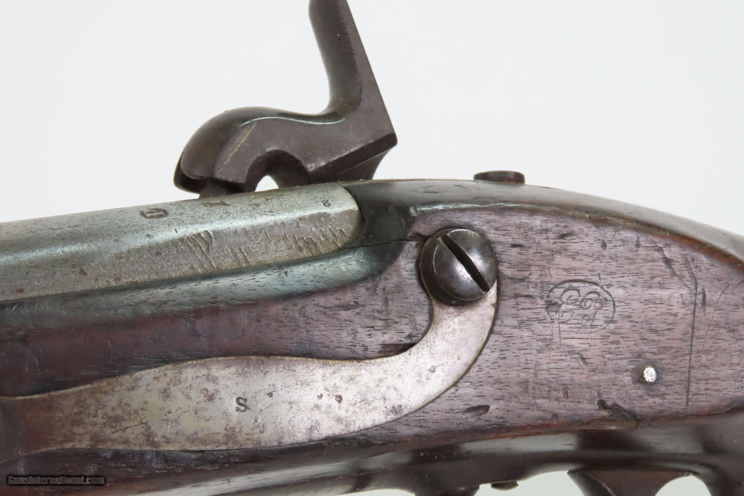 Description: Antique U.S. SPRINGFIELD ARMORY M1816 Percussion Conv. Musket CIVIL WAR ERA Flintlock to Percussion U.S. Military LONGARM Here we present an antique Springfield U.S. Model 1816 Conversion Musket, manufactured at the armory at Springfield, Massachusetts, circa 1834. This musket would have started out life as a smoothbore flintlock and likely converted around the start of the American Civil War. The War of 1812 revealed many weaknesses in American muskets. In an attempt to improve both the design and manufacture of the musket, the Model 1812 musket was created. The Model 1816 made further improvements and replaced the Model 1812. Harpers Ferry became America’s second national armory after the site was personally selected by George Washington, with the Springfield Armory being the first. The advent of the Model 1842 Musket made the M1816 obsolete, but not unserviceable. Eventually, most made their way to storehouses and armories. Beginning in 1848, when more than 700,000 of all types of flintlock muskets were reported in storage, the most serviceable were converted to percussion ignition. Three types of alteration were performed. All alterations involved grinding the flash pan down and replacing the hammer. The “French Style” conversion added a drum and nipple to the flashhole. The “Belgian Style” involved plugging the vent hole with a weld and tapping a nipple directly into the barrel. This is the type of conversion that was only done at Harper's Ferry and Springfield and is sometimes referred to as an “Armory” or “Cone” conversion. The last type of conversion was used late in the renovation process, beginning about 1852, and involved adding a bolster to the breech of the barrel, so it is termed the “Bolster Style” of conversion. The overall condition is good. Mixed brown and gray patina. The stock shows use but remains solid. Cartouche present behind the trigger guard tang and on the left stock flat. The bore is dark but good. Markings are legible. Robust action. Front swing swivel is absent. Own the original! This is a legitimate antique and not a reproduction. Barrel is 42 inches. Caliber: .67 Percussion Overall condition as seen in photos. Very Fast. Very Safe. FREE SHIPPING WORLDWIDE. Delivered directly to your door by express mail! Guaranteed AUTHENTIC & Includes CERTIFICATE OF AUTHENTICITY. ancestryguns $2050 #256022 Antique: Yes Price: $2,050.00 Buy Now Pay with ![]() Contact Seller |