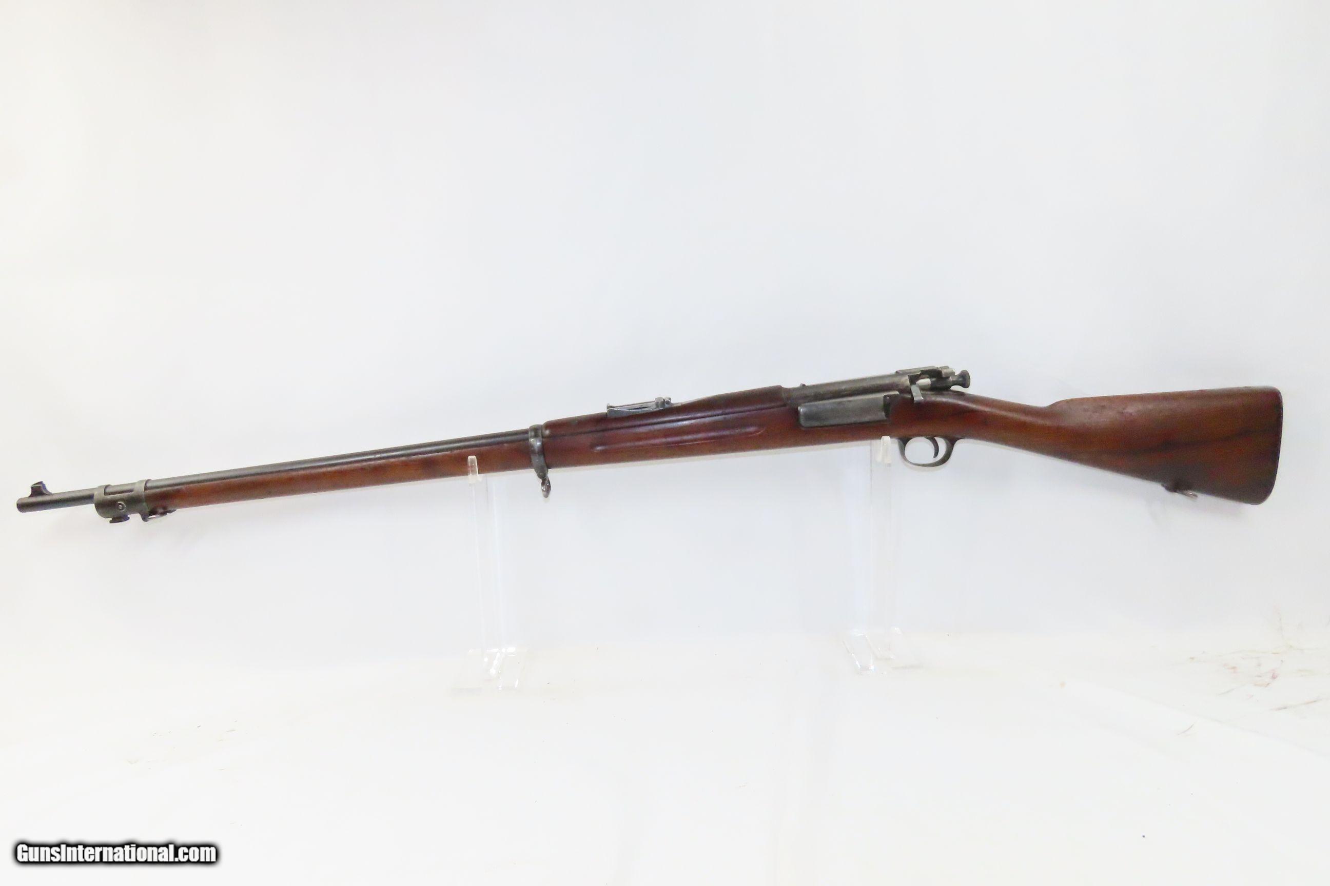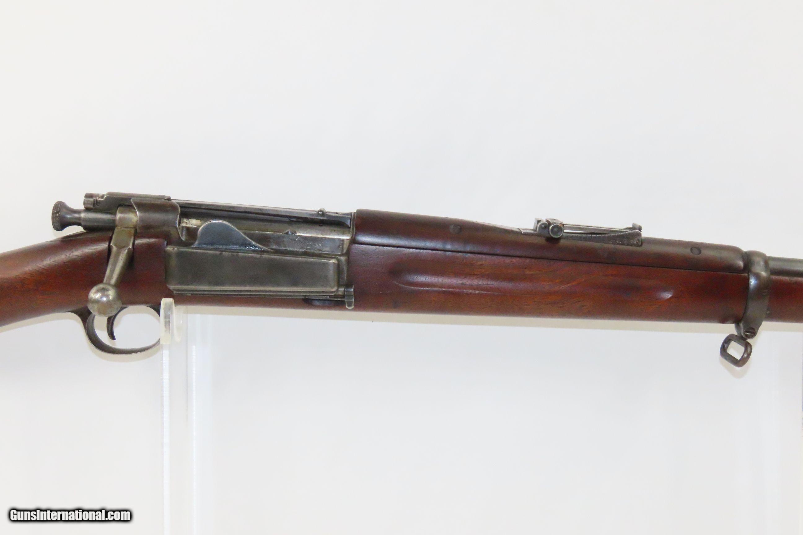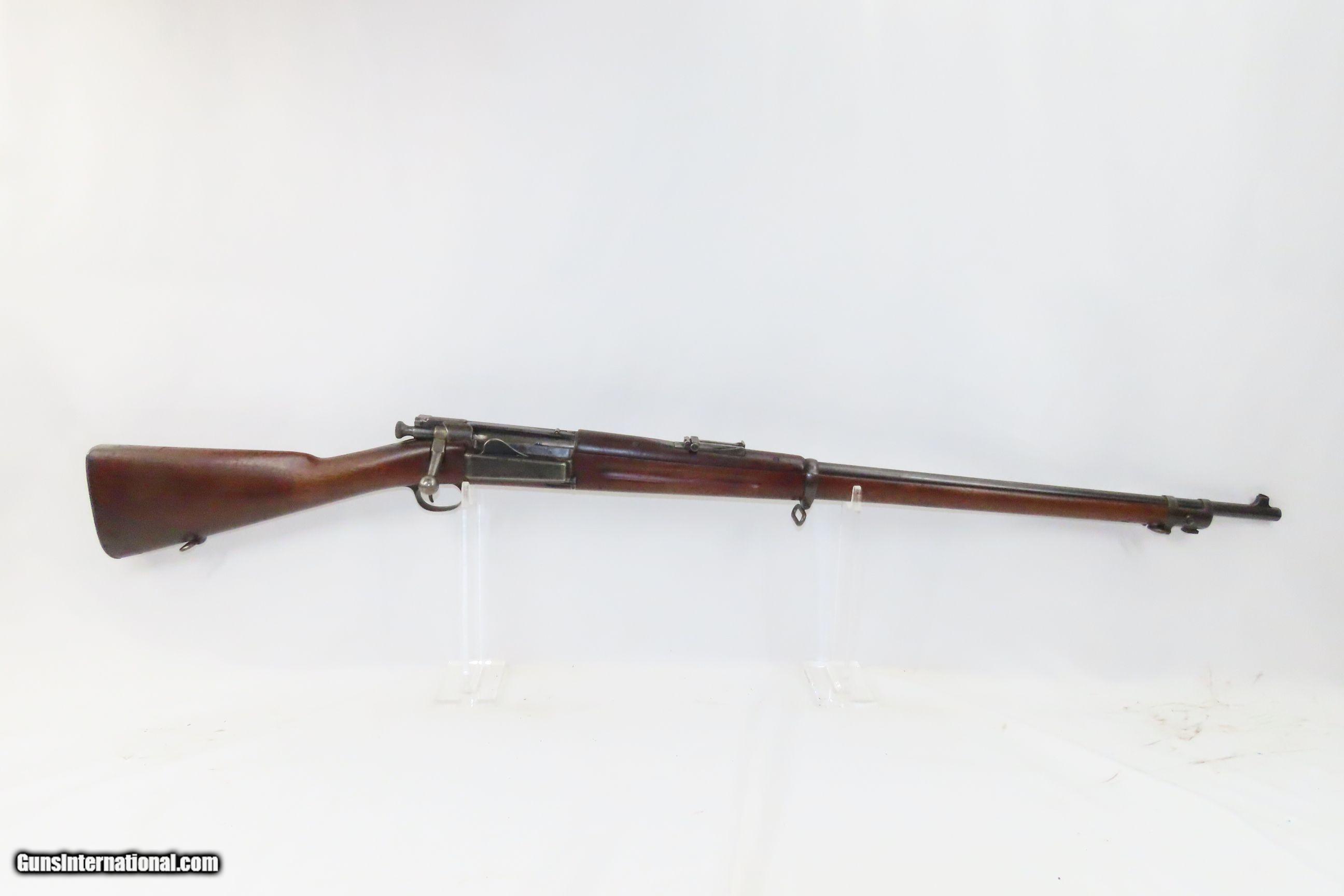 Description: Antique U.S. SPRINGFIELD ARMORY M1898 KRAG .30-40 ARMY Military RIFLE Used in the PHILIPPINE-AMERICAN War Here we present an antique U.S. Springfield Krag-Jorgensen Bolt Action Rifle, made just before the turn of the 20th Century in 1898. Named after its inventors, Norwegian Royal Artillery Officer Ole Hermann Johannes Krag and civilian Erik Jorgensen, the Krag-Jorgensen rifle was the first small caliber smokeless powder repeating long arm to be adopted by the U.S. Army. Around 500,000 “Krags” in .30 Army (.30-40) caliber were produced at the Springfield Armory in Massachusetts from 1894 to 1904. The Krag–Jørgensen rifle in .30 Army was used in the Boxer Rebellion, the Spanish–American War and the Philippine–American War. A few carbines were used by United States cavalry units fighting Apache in New Mexico Territory and preventing poaching in Yellowstone National Park. Two-thousand rifles were taken to France by the United States Army 10th–19th railway engineers during World War I. This rifle also marked the beginning of the change from large caliber/low muzzle velocity ammo to smaller caliber/higher energy rounds for military applications. Fifty-three different models were tested and rejected before the Army’s 1892 adoption of the Krag-Jorgensen. The overall condition is near fine. Original finish. The action is excellent. The bore is shiny bright with sharp rifling. The walnut stock is in great shape with a faint cartouche on the left flat. Own the original! This is a legitimate antique and not a reproduction. Barrel is 30 inches. Caliber: .30-40 Krag (.30 ARMY) Overall condition as seen in photos. Very Fast. Very Safe. FREE SHIPPING WORLDWIDE. Delivered directly to your door by express mail! Guaranteed AUTHENTIC & Includes CERTIFICATE OF AUTHENTICITY. ancestryguns $1800 #230694 SOLD Antique: Yes |
