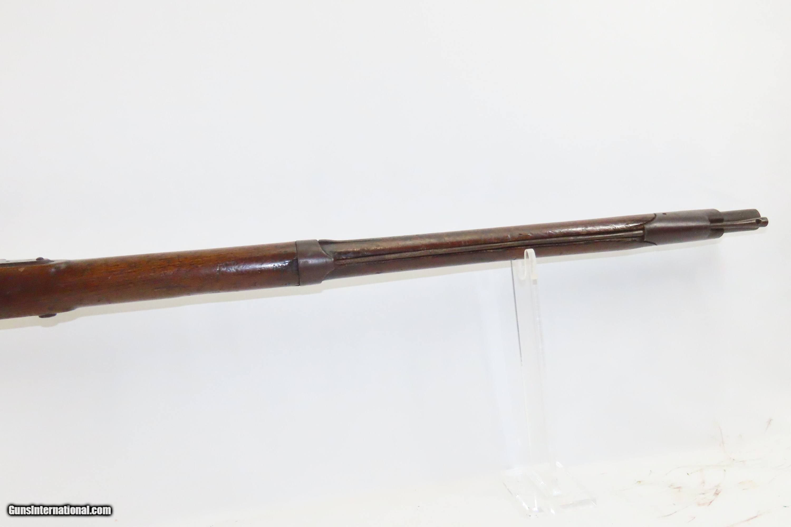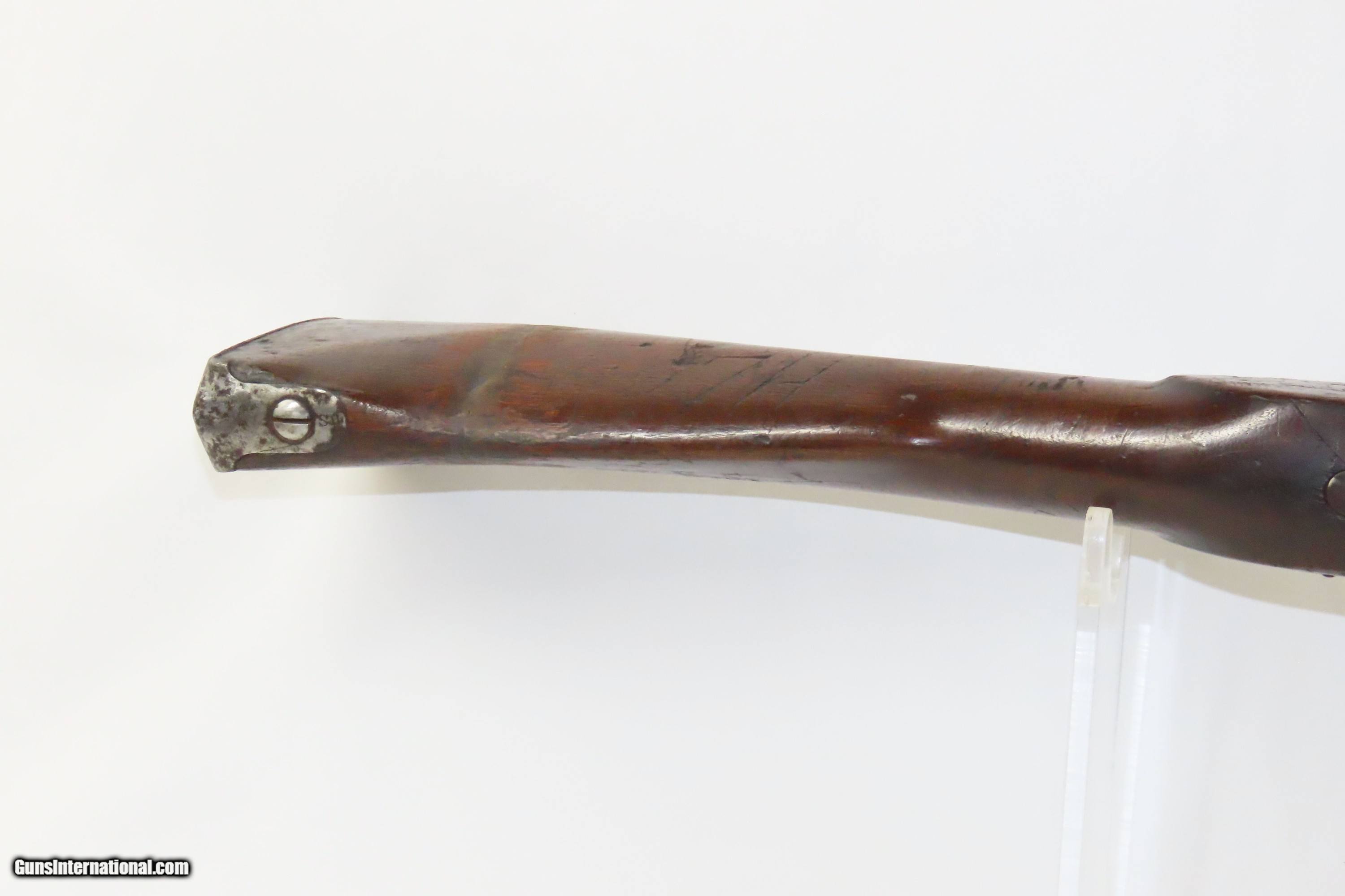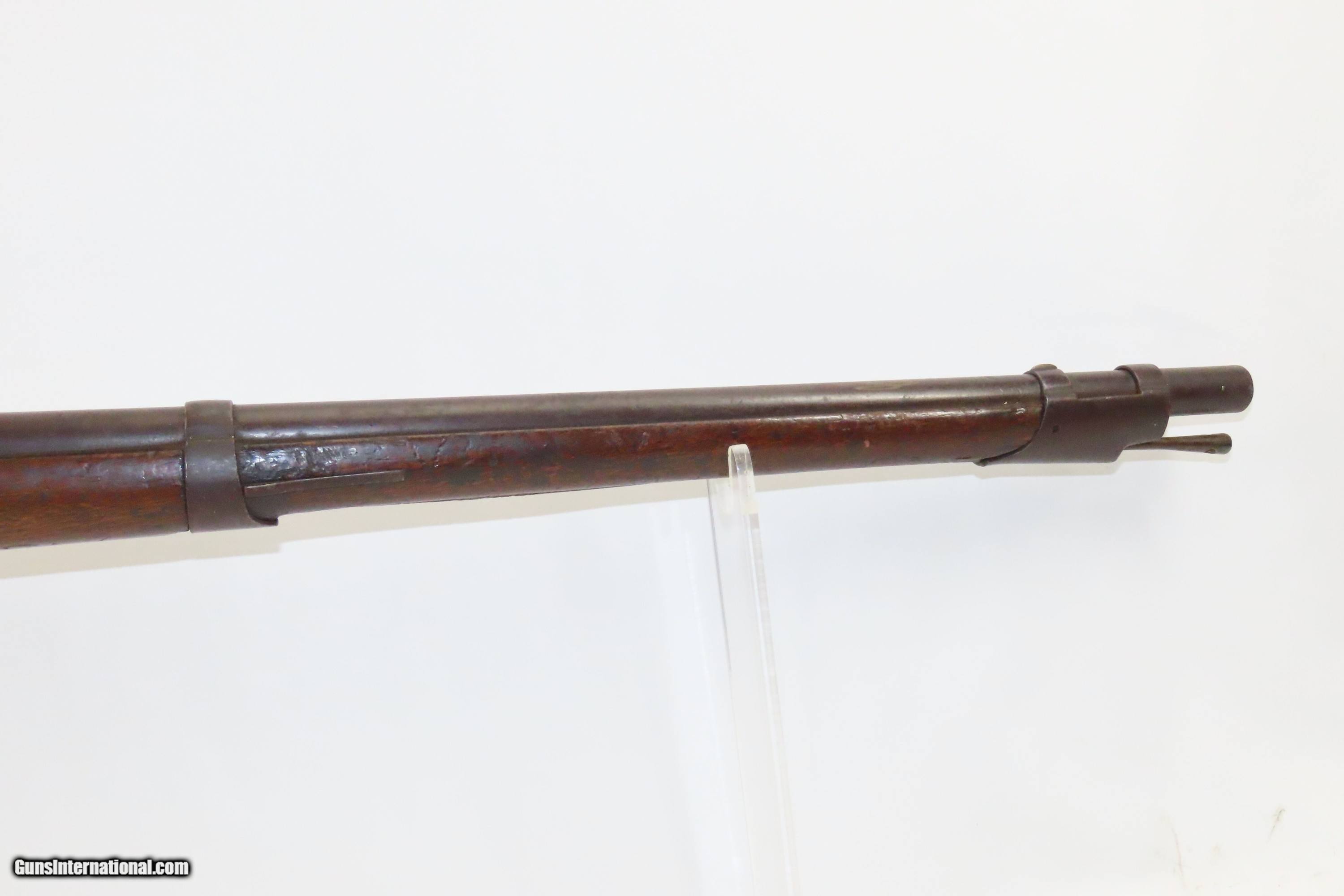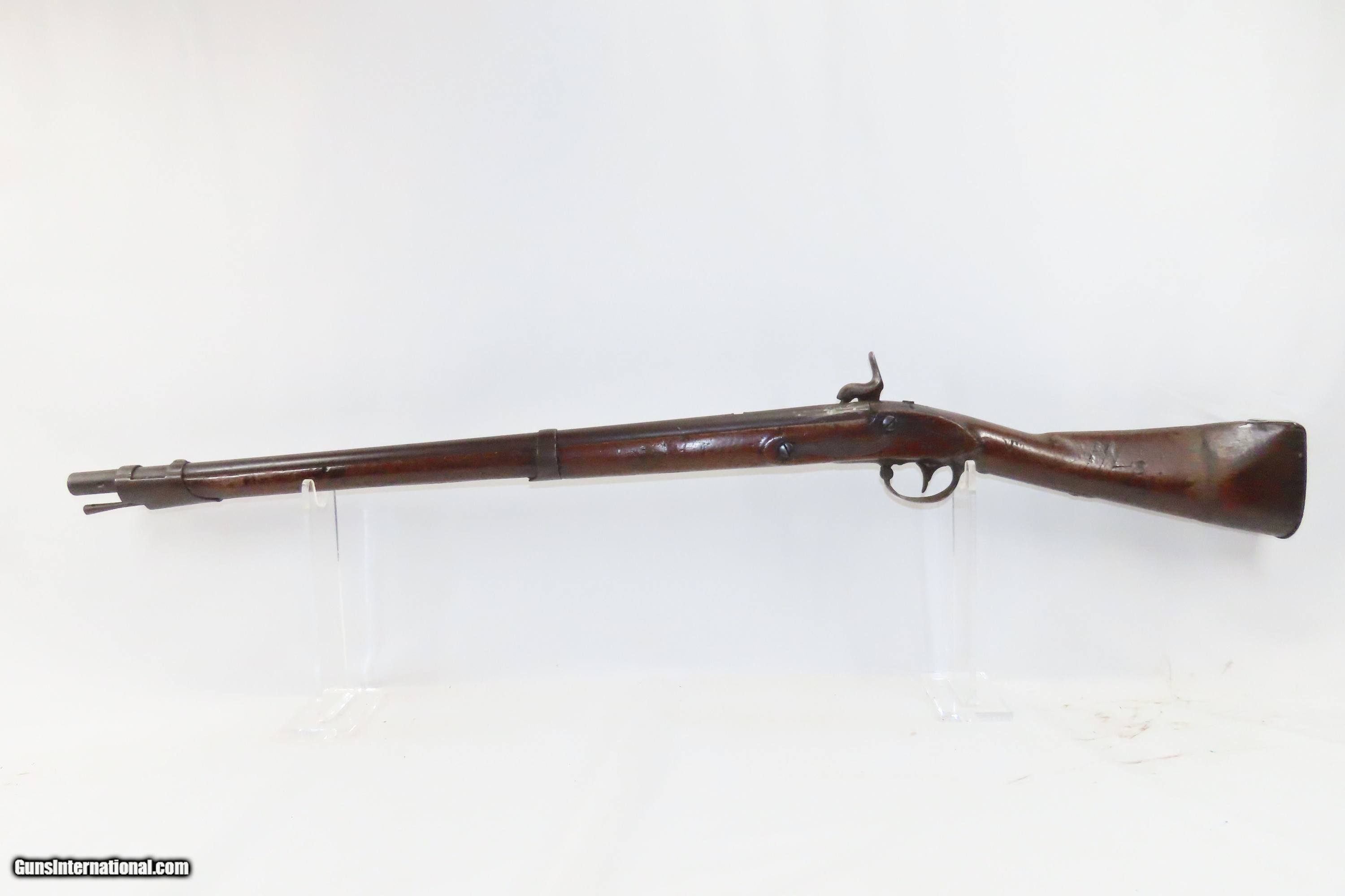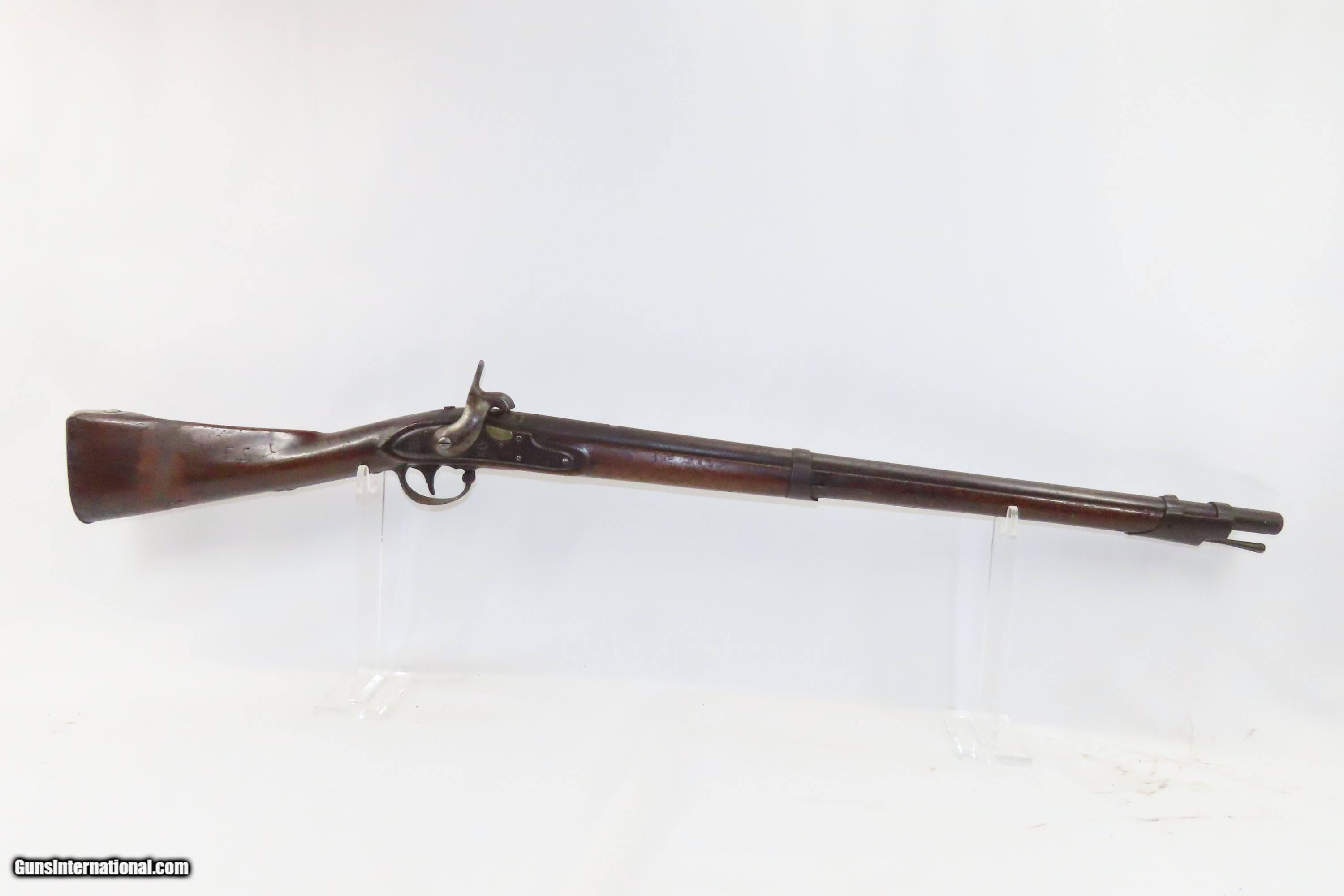 Description: Antique US SPRINGFIELD ARMORY Model 1816 Short Musket Converted Flintlock to Percussion US Military Weapon Here we present an antique Springfield U.S. Model 1816 Conversion Musket, manufactured at the armory at Springfield, Massachusetts, circa 1838. This musket would have started out life as a smoothbore flintlock and likely converted around the start of the American Civil War. The War of 1812 revealed many weaknesses in American muskets. In an attempt to improve both the design and manufacture of the musket, the Model 1812 musket was created. The Model 1816 made further improvements and replaced the Model 1812. Harpers Ferry became America’s second national armory after the site was personally selected by George Washington, with the Springfield Armory being the first. The U.S. Congress authorized the building of the new foundry in 1794, and by the following year, was producing hundreds of arms for the national army, which was primarily flintlock muskets and pistols. Inspired largely by the French Charleville Model 1777 musket, Harpers Ferry began producing the Model 1816. The M1816 was a smoothbore, muzzle loading weapon which used a .69 caliber musket ball. A trained shooter could fire between two and three rounds at a range of up to 200 yards per minute. The M1816 was in production at Springfield (325,000) and Harpers Ferry (350,000) between 1816 to 1844 with around 675,000 muskets produced during this run. It saw service during the Mexican-American War and was even pressed into service during the Civil War in both the updated percussion and the old flintlock format. In the 1850’s, many 1816’s, just as this one is, went through the conversion from flintlock to the more reliable percussion system. The advent of the Model 1842 Musket made the M1816 obsolete, but not unserviceable. Eventually, most made their way to storehouses and armories. Beginning in 1848, when more than 700,000 of all types of flintlock muskets were reported in storage, the most serviceable were converted to percussion ignition. Three types of alteration were performed. All alterations involved grinding the flash pan down and replacing the hammer. The "French Style" conversion added a drum and nipple to the flashhole. The "Belgian Style" involved plugging the vent hole with a weld and tapping a nipple directly into the barrel. This is the type of conversion that was only done at Harper's Ferry and Springfield and is sometimes referred to as an "Armory” or “Cone” conversion. The last type of conversion was used late in the renovation process, beginning about 1852, and involved adding a bolster to the breech of the barrel, so it is termed the "Bolster Style" of conversion. The overall condition is good. Shortened during the period of use. The action remains strong. The bore is smooth and patinated. The stock shows much use and maintains its inspection markings throughout. There is a stable crack on the left stock flat. There is a line of patch or filler all the way around the butt stock. Nothing moves or wobbles. Own the original! This is a legitimate antique and not a reproduction. Barrel is 29-1/4 inches. Caliber: .69 Percussion Overall condition as seen in photos. Very Fast. Very Safe. FREE SHIPPING WORLDWIDE. Delivered directly to your door by express mail! Guaranteed AUTHENTIC & Includes CERTIFICATE OF AUTHENTICITY. ancestryguns $1400 #230302 SOLD Antique: Yes |